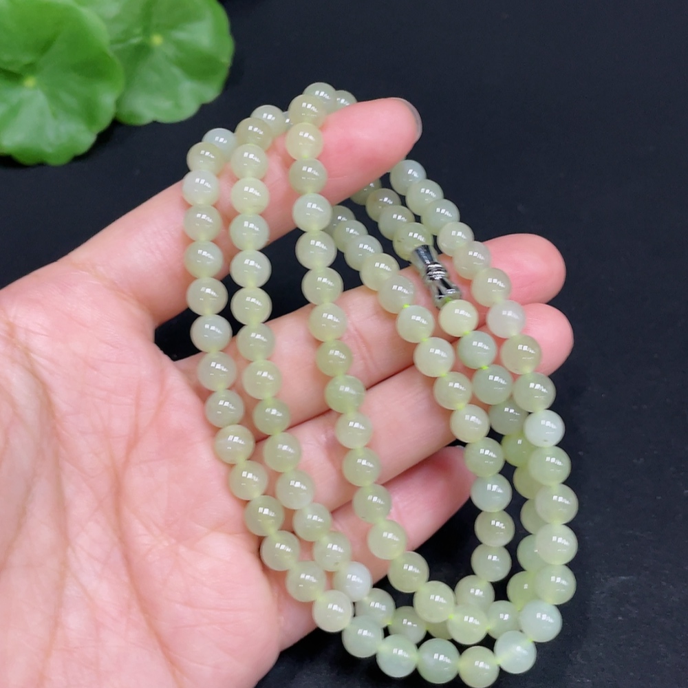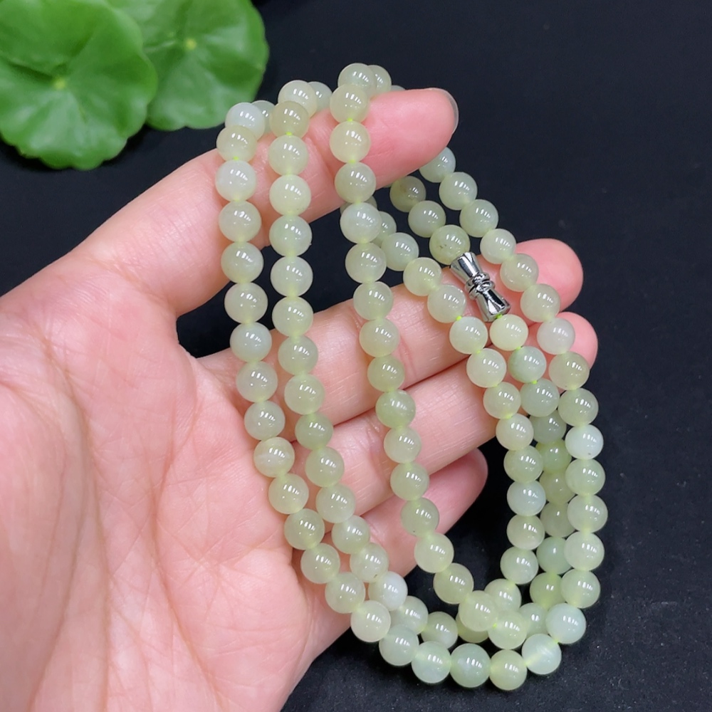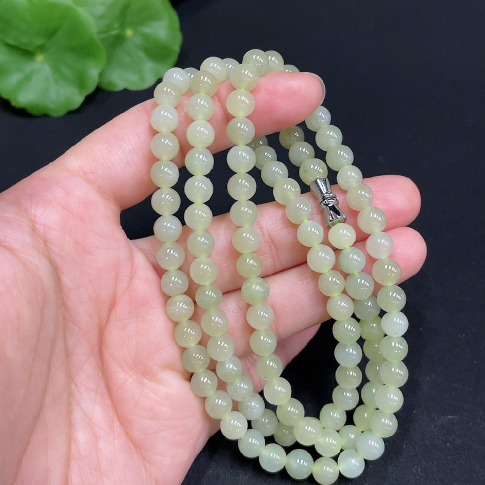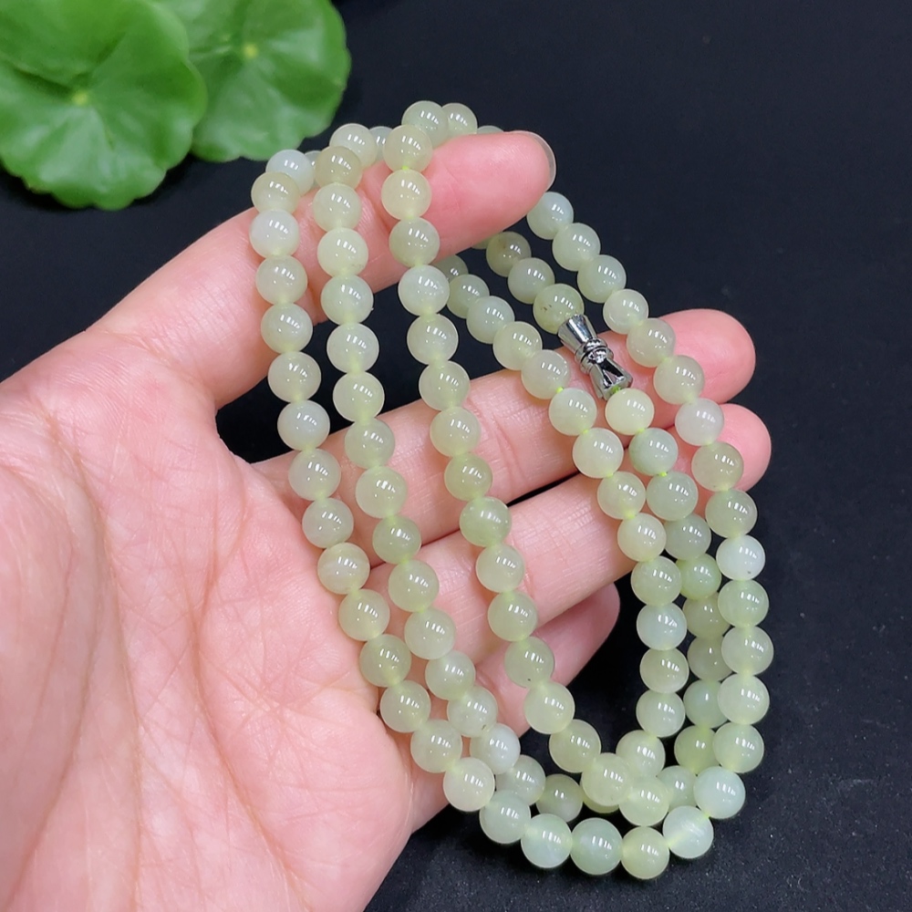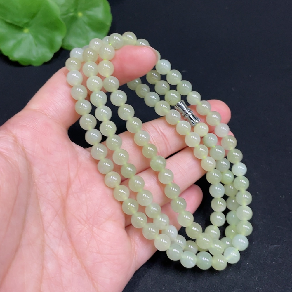 Hetian Jade Bead Necklace Approximately 5.9mm Total Weight About 35g