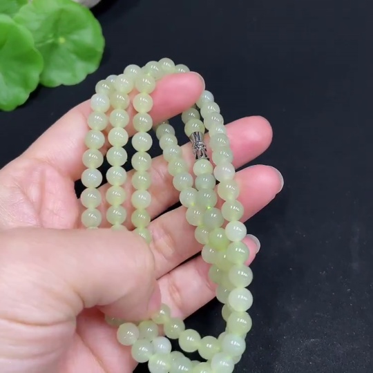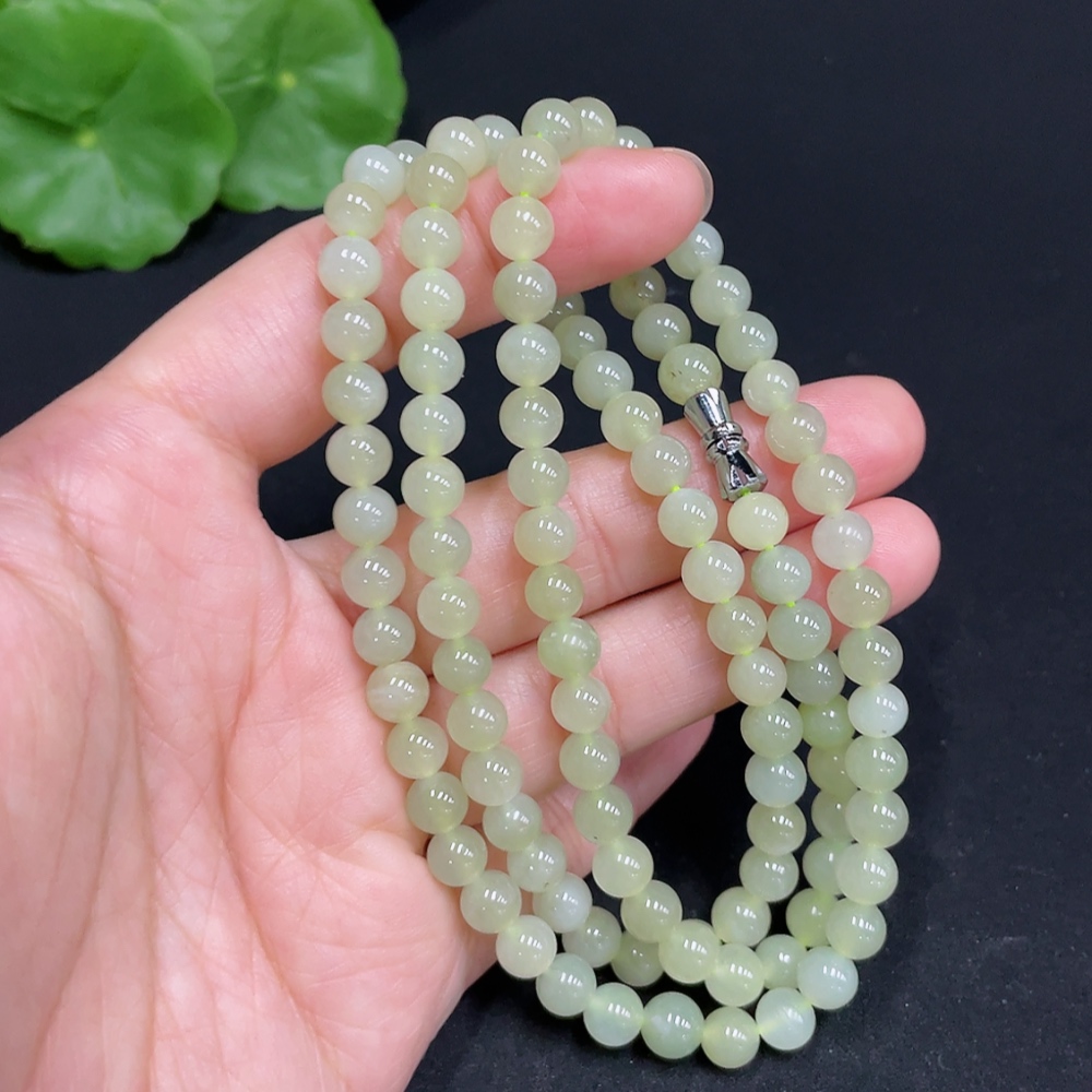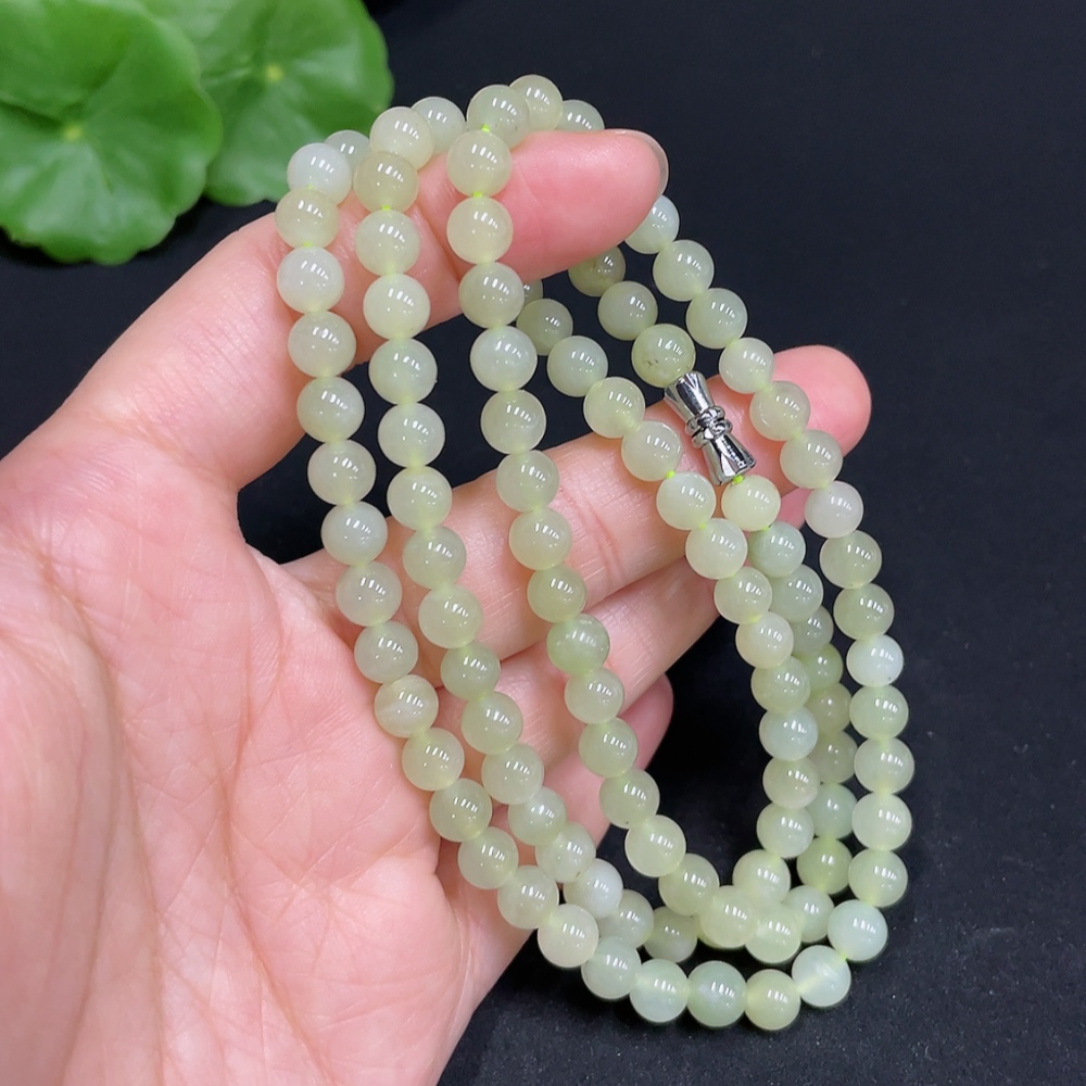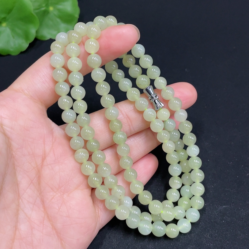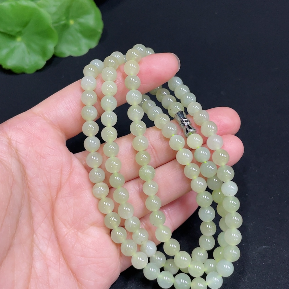 Hetian Jade Bead Necklace Approximately 5.9mm Total Weight About 35g