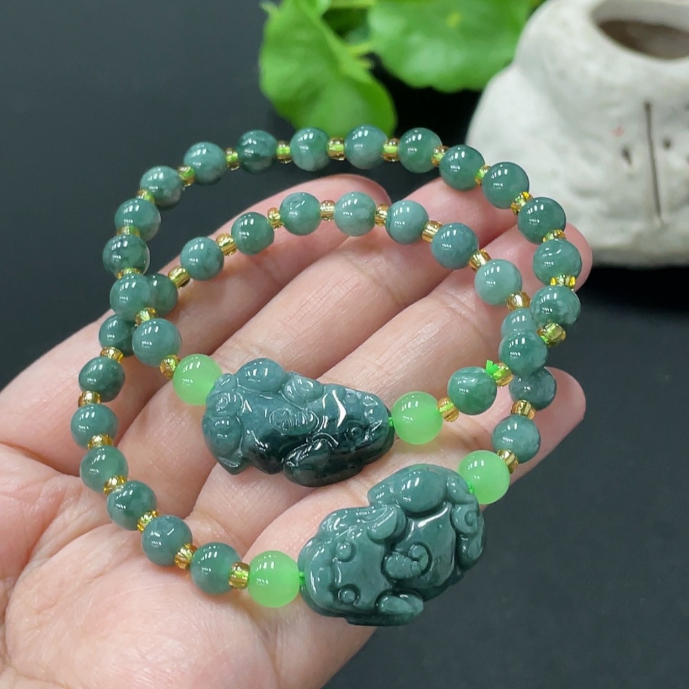 Jadeite Bracelet Sell as a Lot Imitation Beads Non-Gold