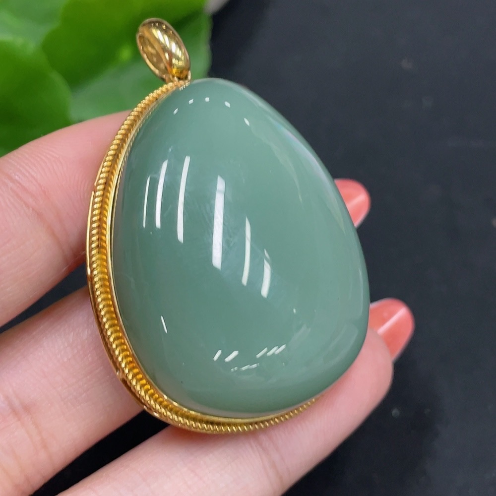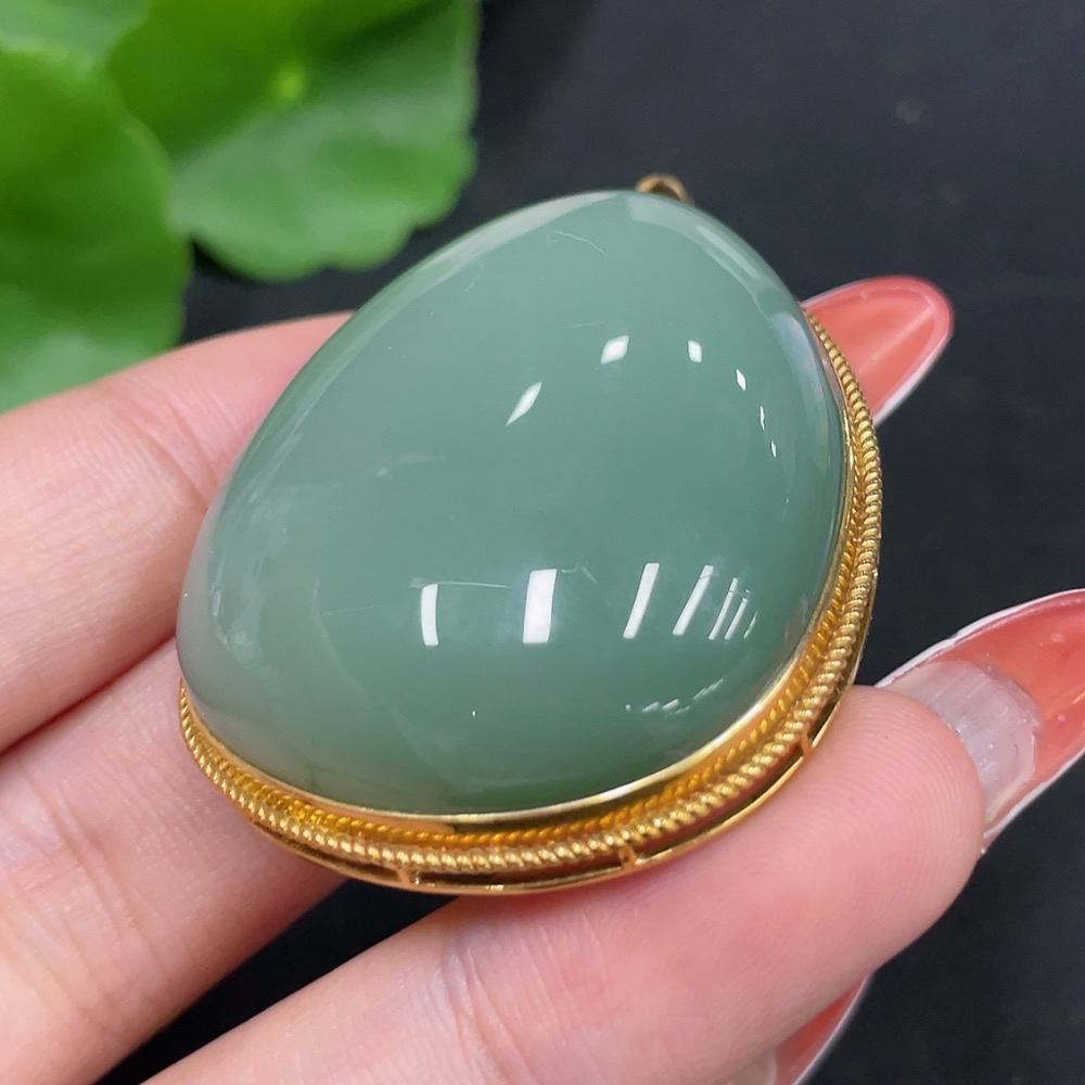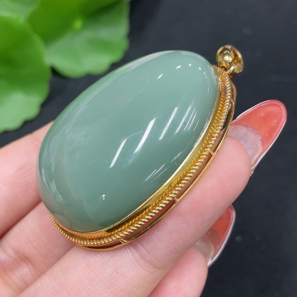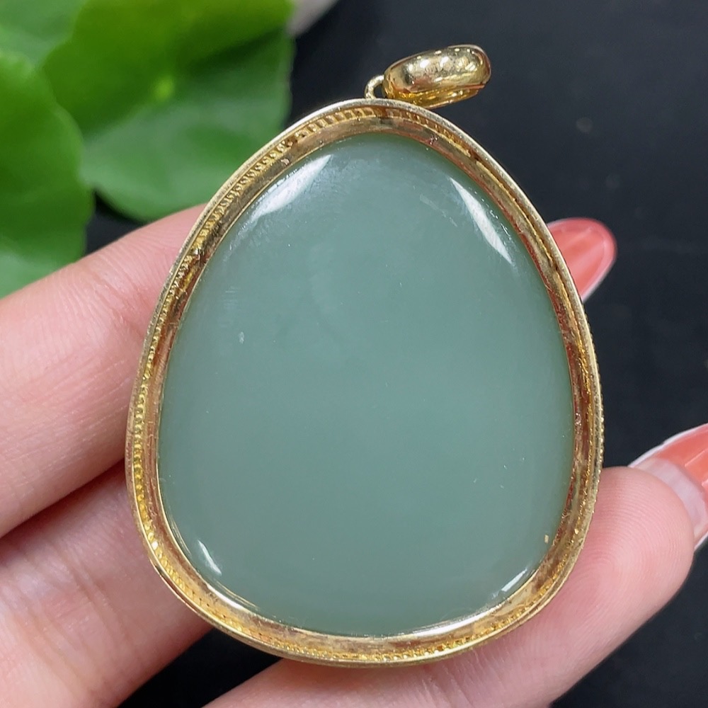 Hetian Jade Inlaid Pendant, 18k Gold, Total Weight Approx. 33.9g