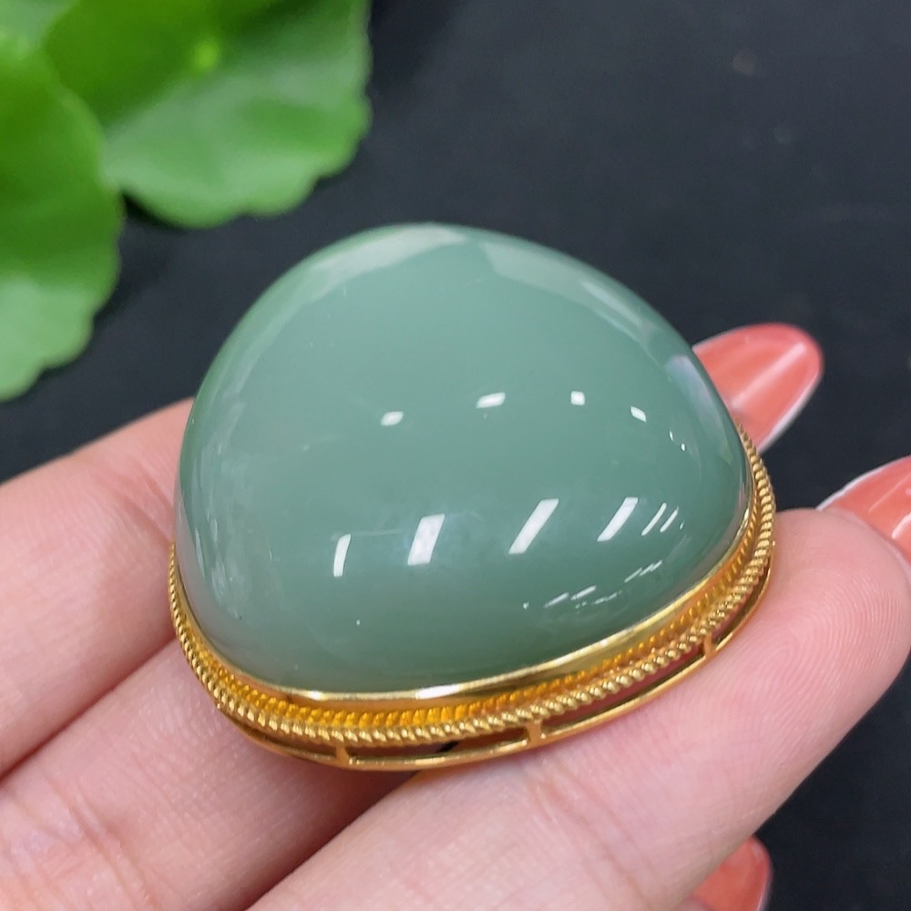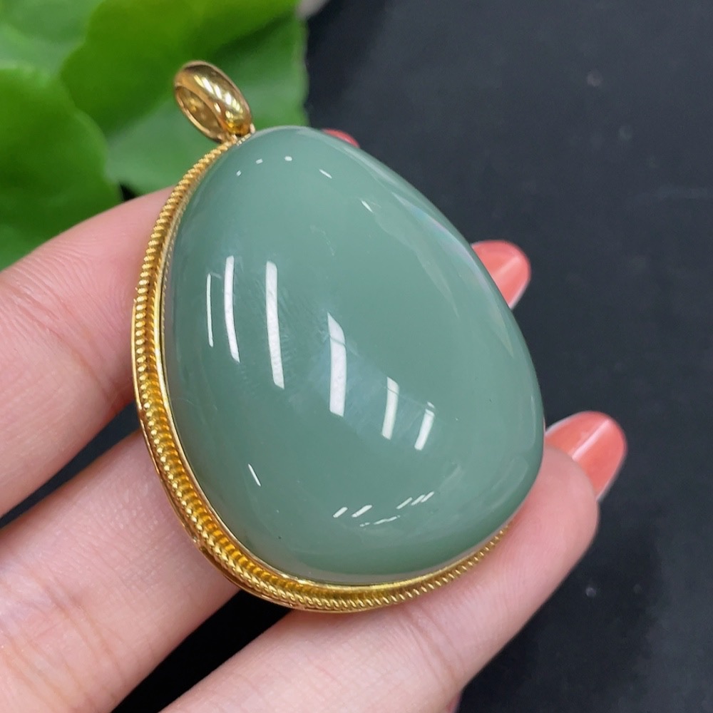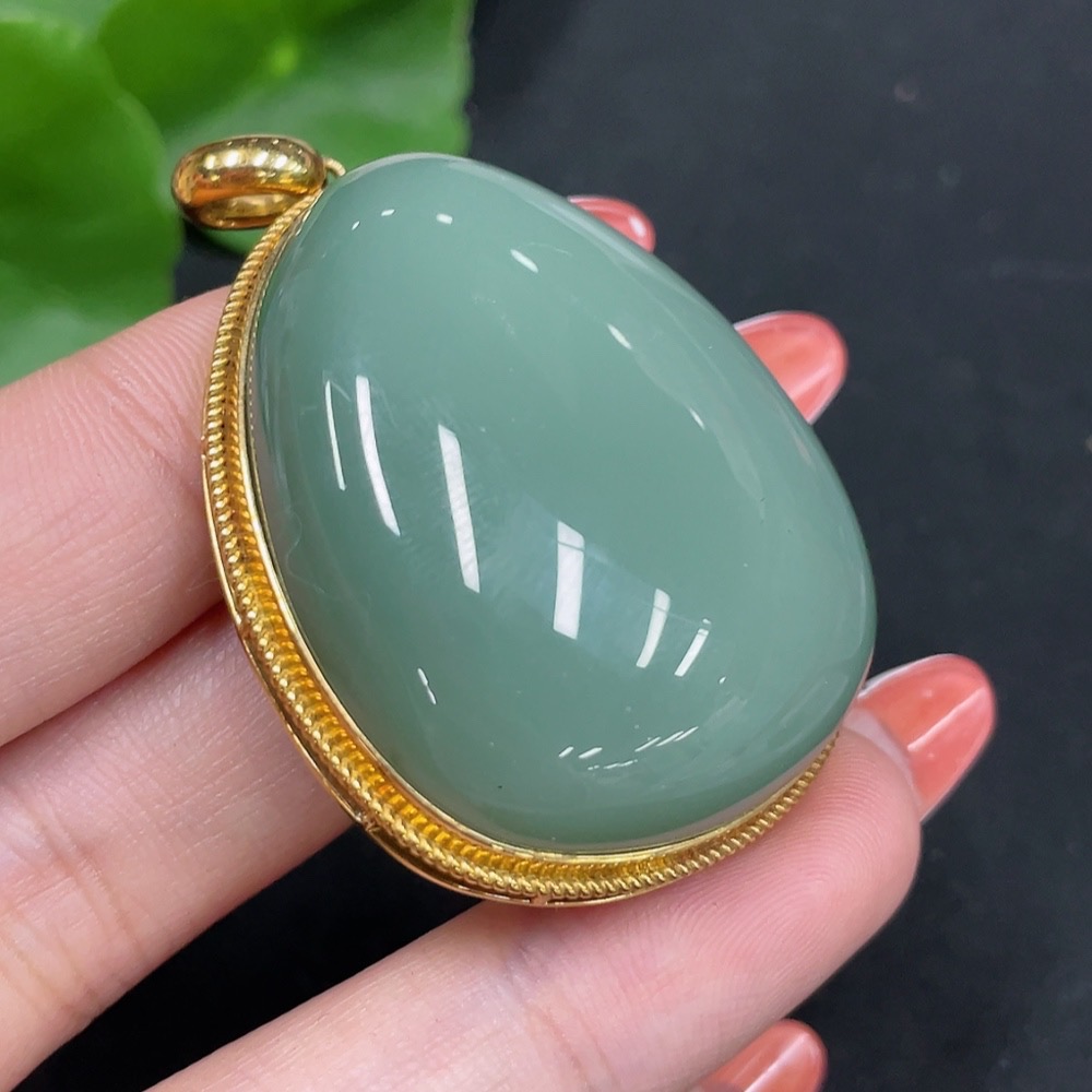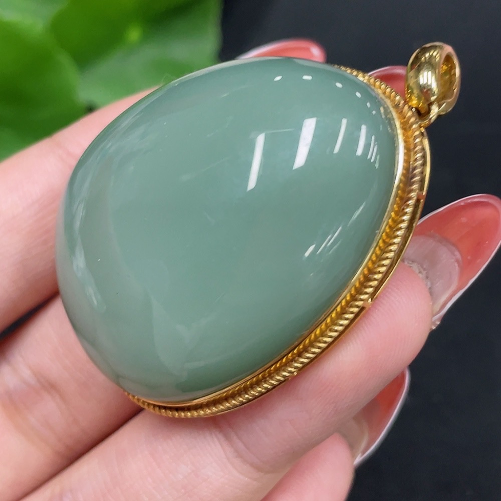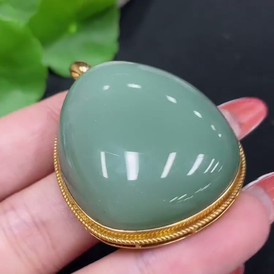 Hetian Jade Inlaid Pendant, 18k Gold, Total Weight Approx. 33.9g