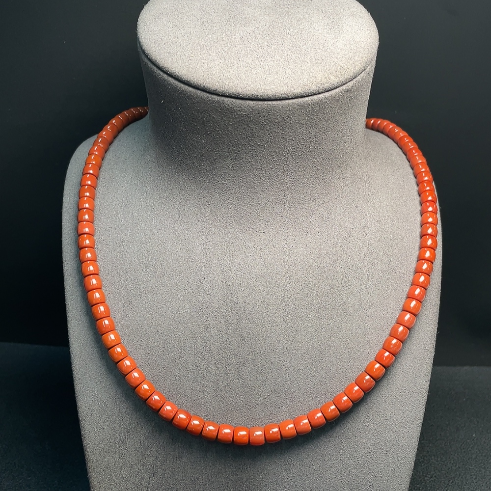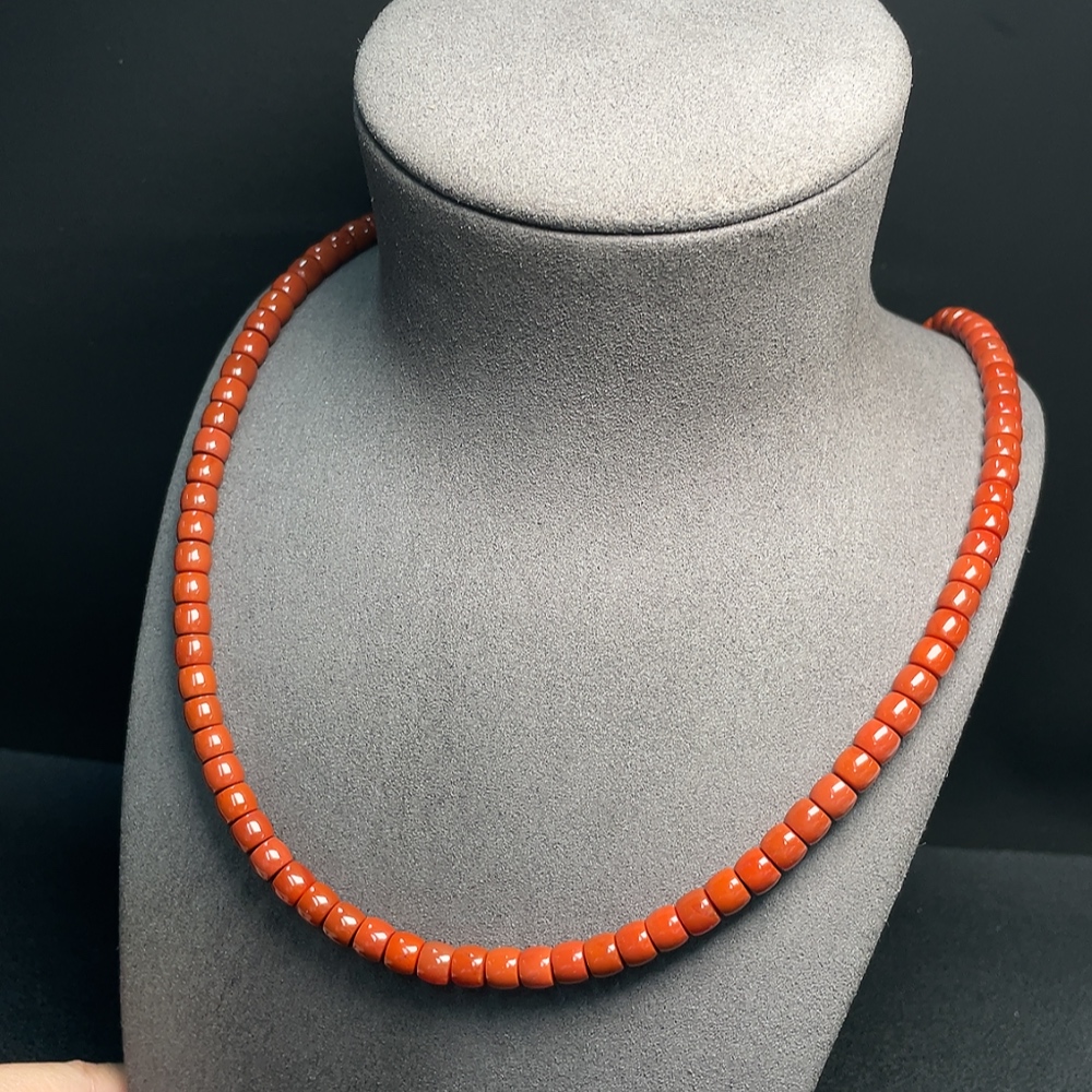 South Red Agate Bead Strand with Visible Organic Matter, Total Weight Approximately 57.95g, 7mm Size, Non-Gold