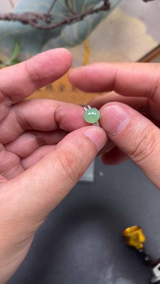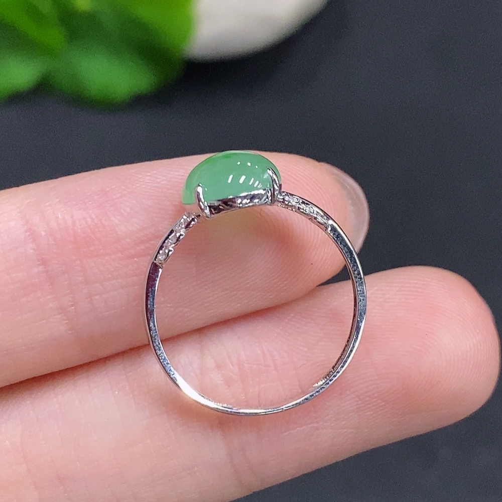 Jadeite Cabochon Ring 18k Gold Total Weight Approx. 1.2g Size 11
