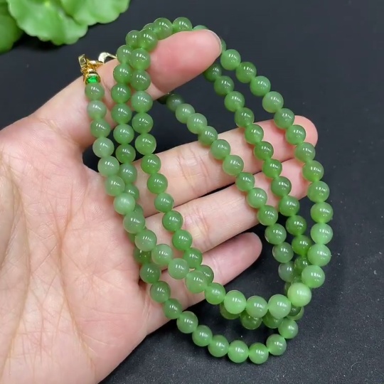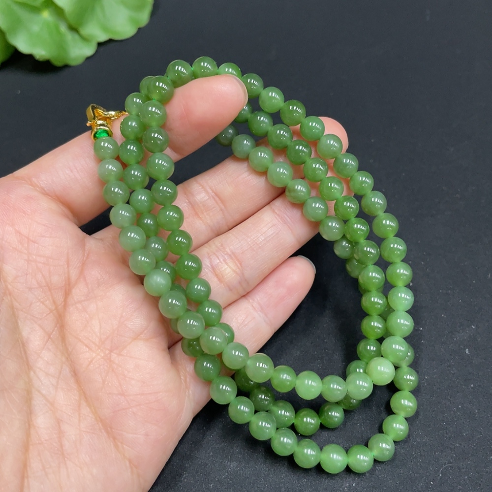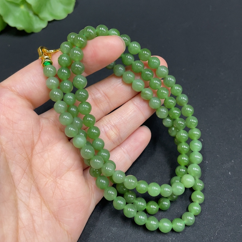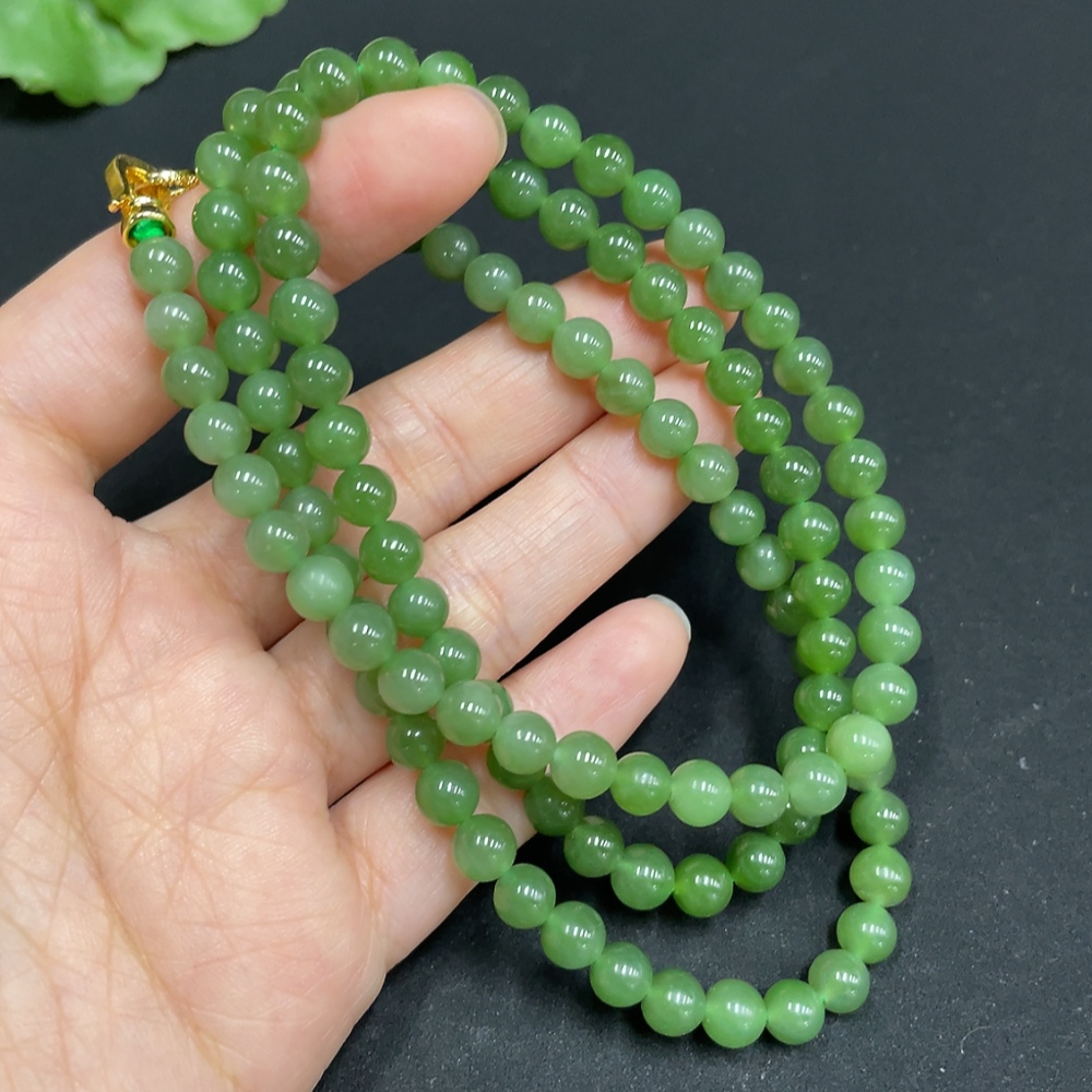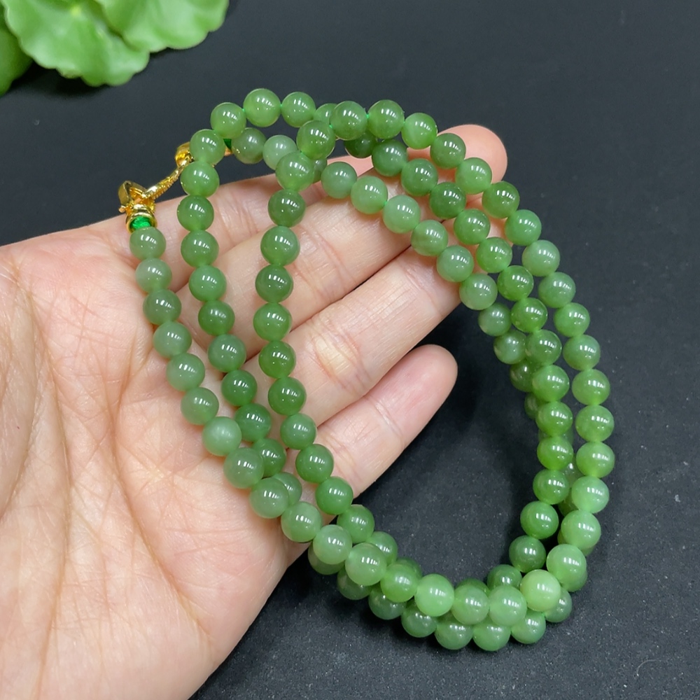 Hetian Jade Beaded Necklace, approx. 5.7mm, non-gold inlaid, total weight approx. 34.2g