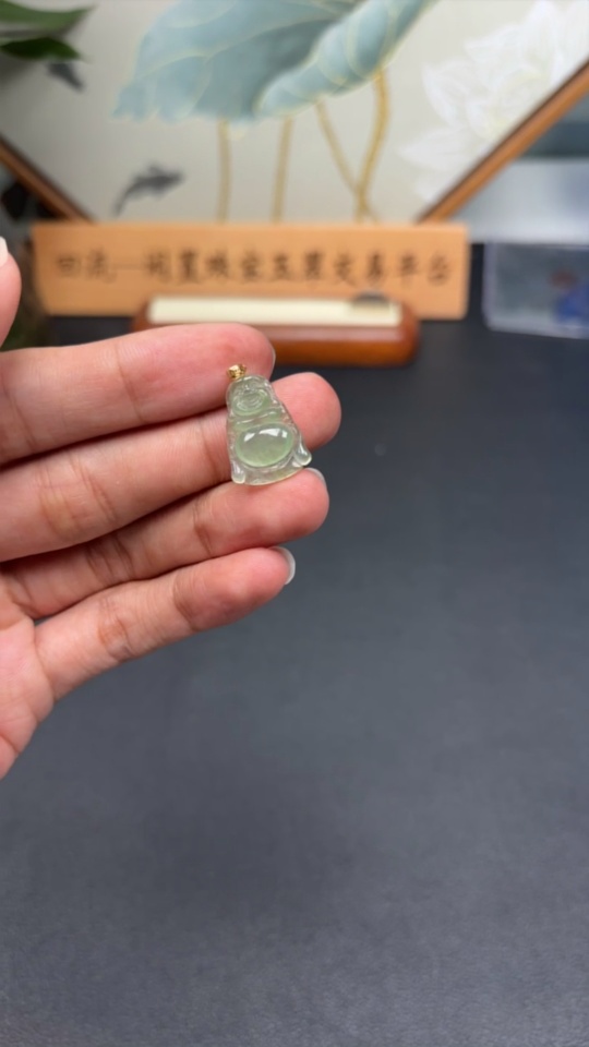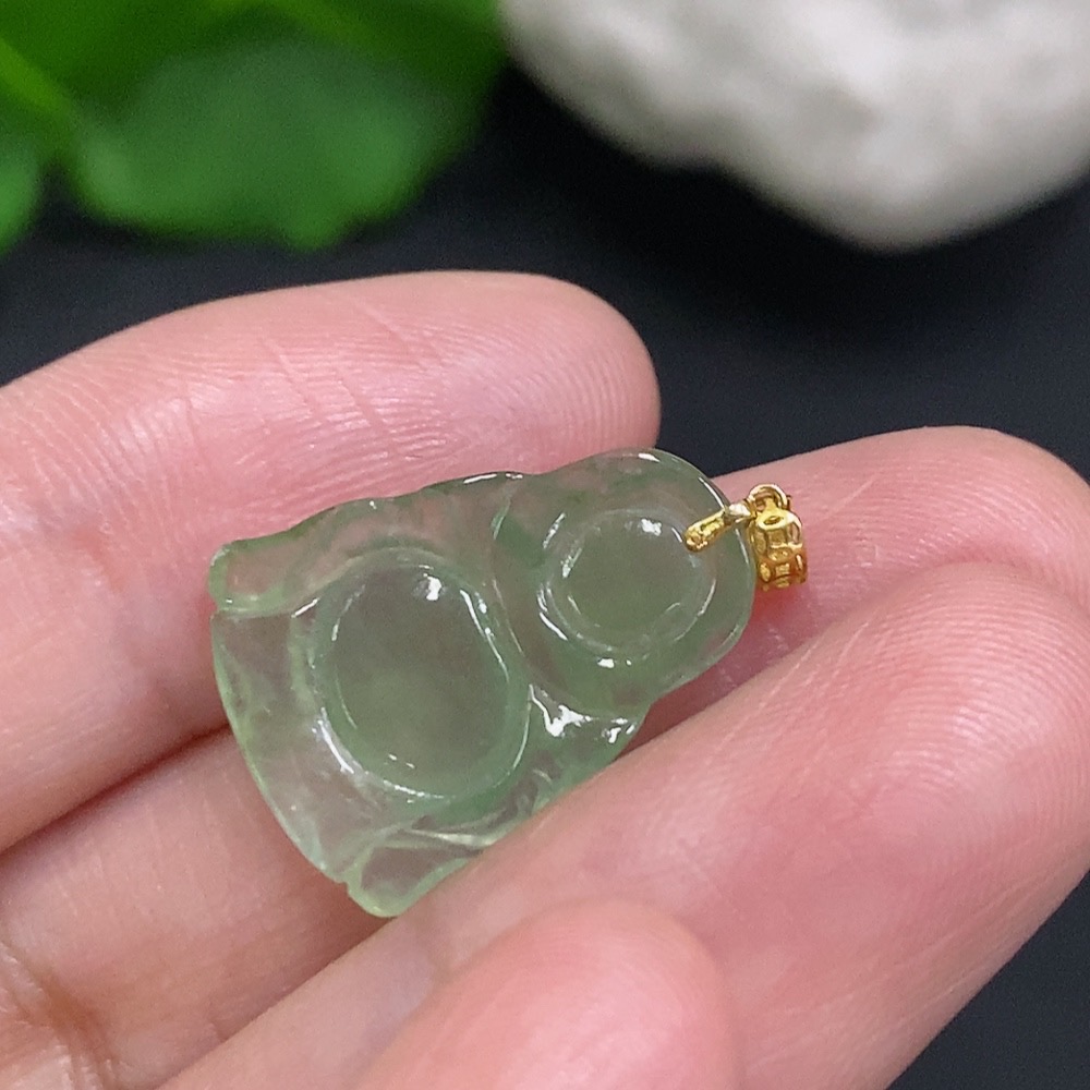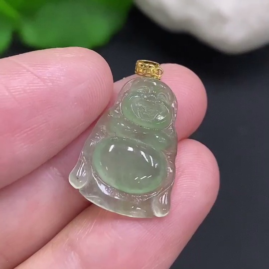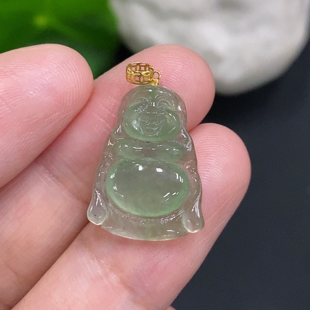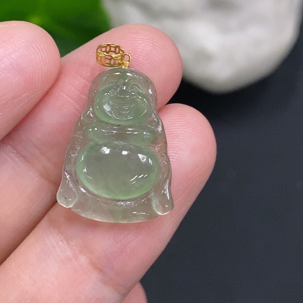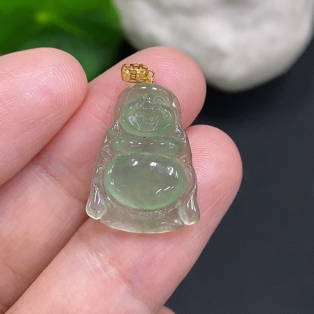 Jadeite Buddha Pendant with 18k Gold Clasp, Total Weight Approximately 1.3g