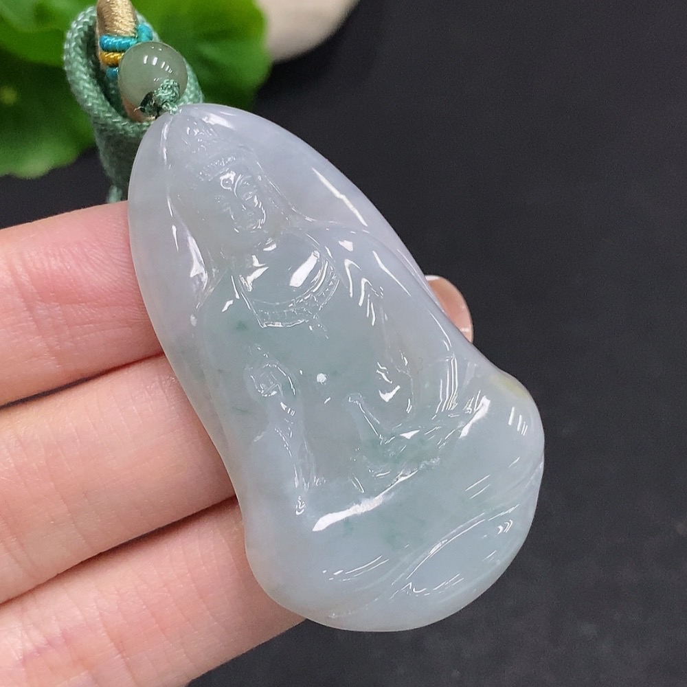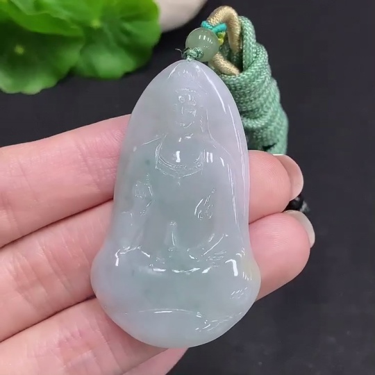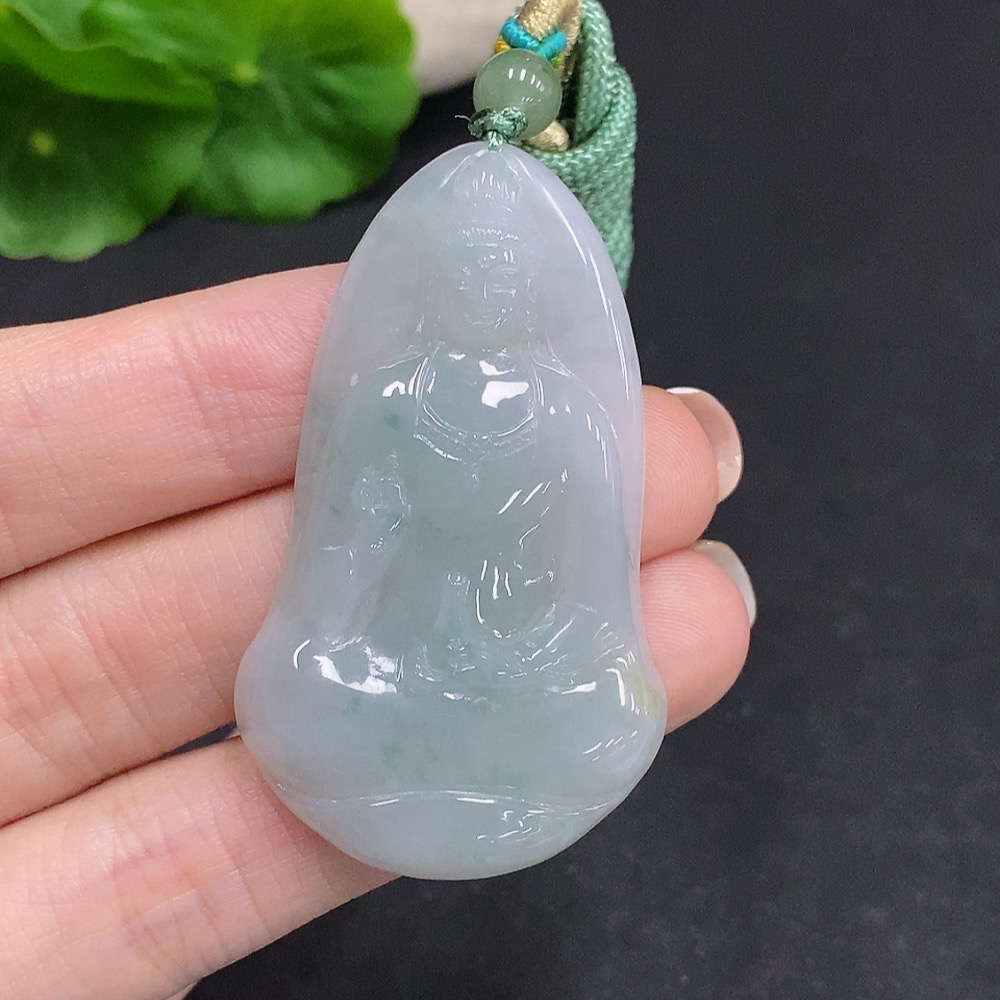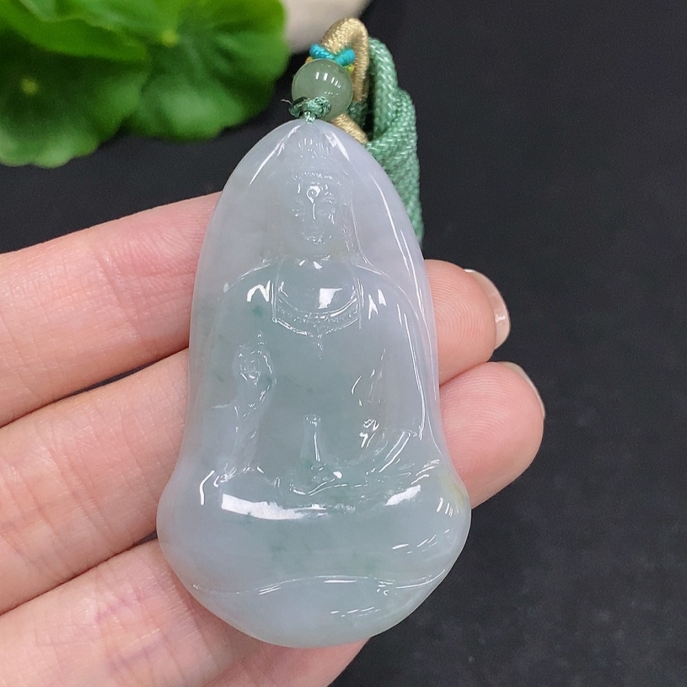 Jadeite Guanyin Pendant with Cord, Total Weight Approx. 18g