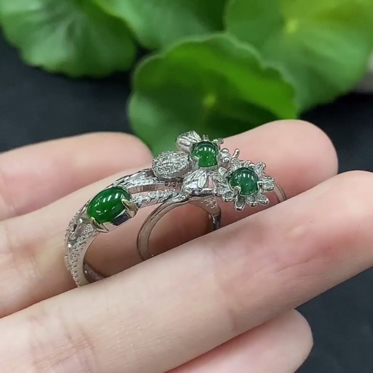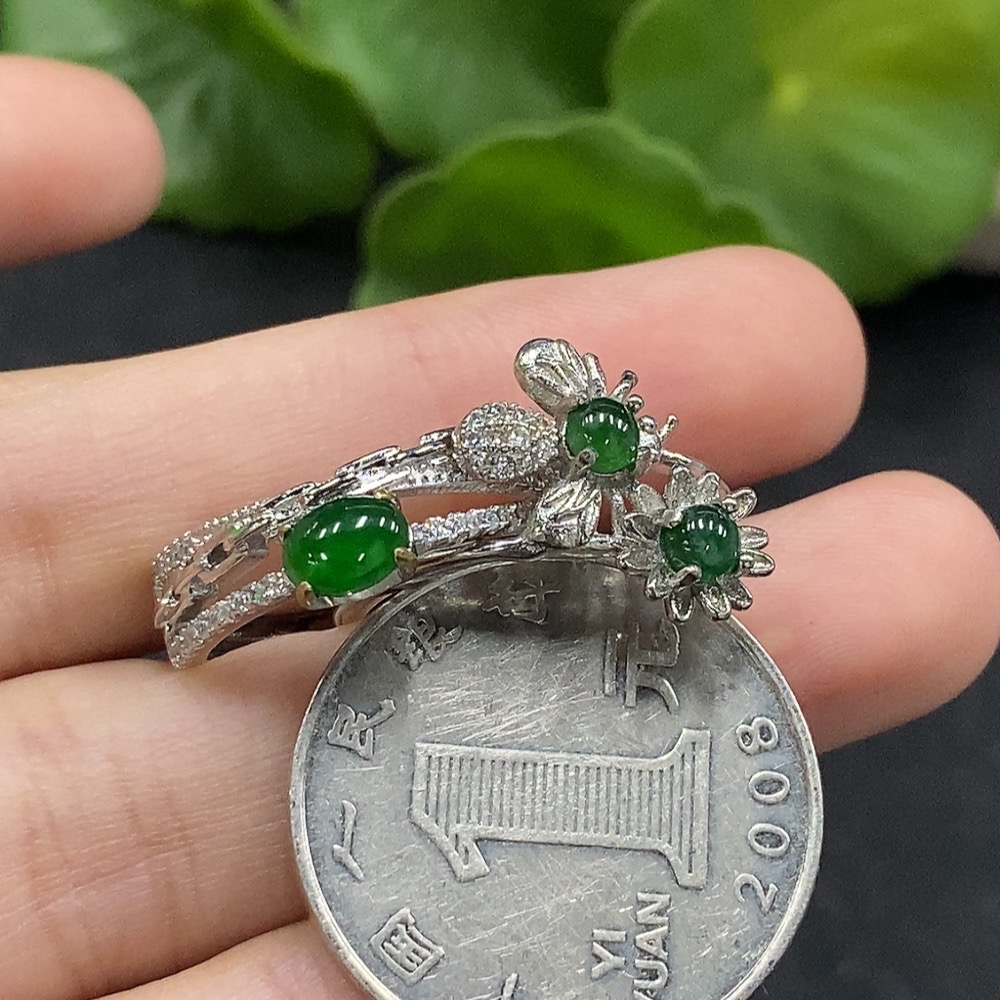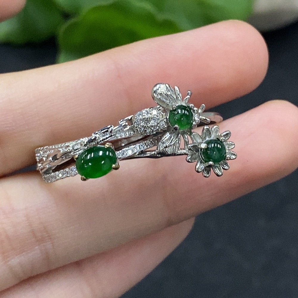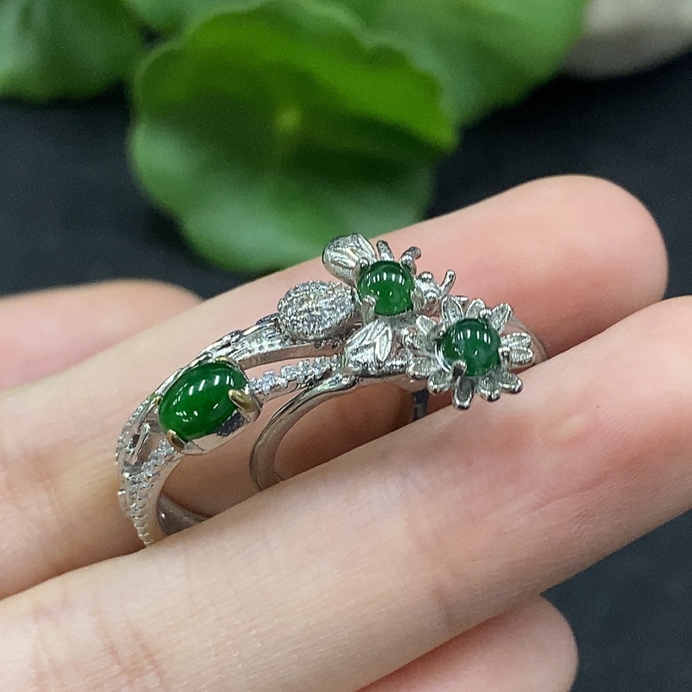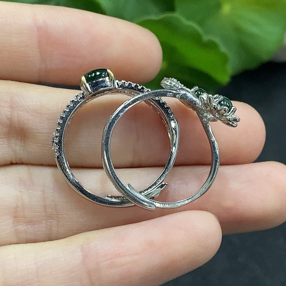 Jadeite Cabochon Inlay Ring Non-Gold Setting Adjustable