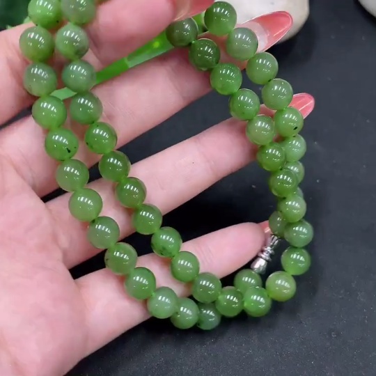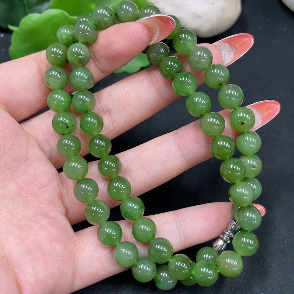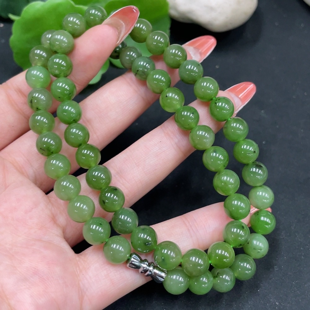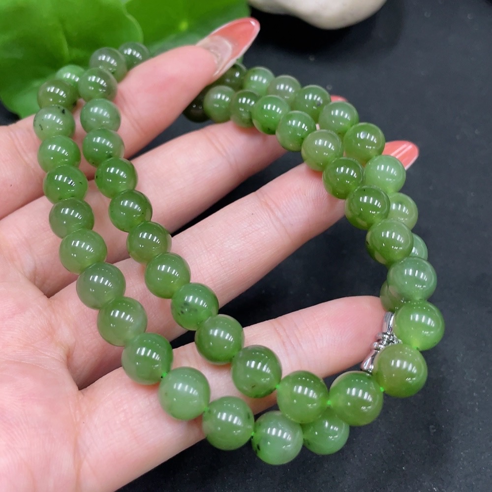 Hetian Jade Bead Necklace Non-Gold Approx. 7.8mm Total Weight About 45.2g