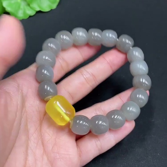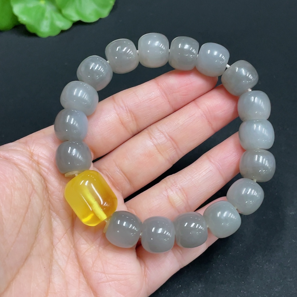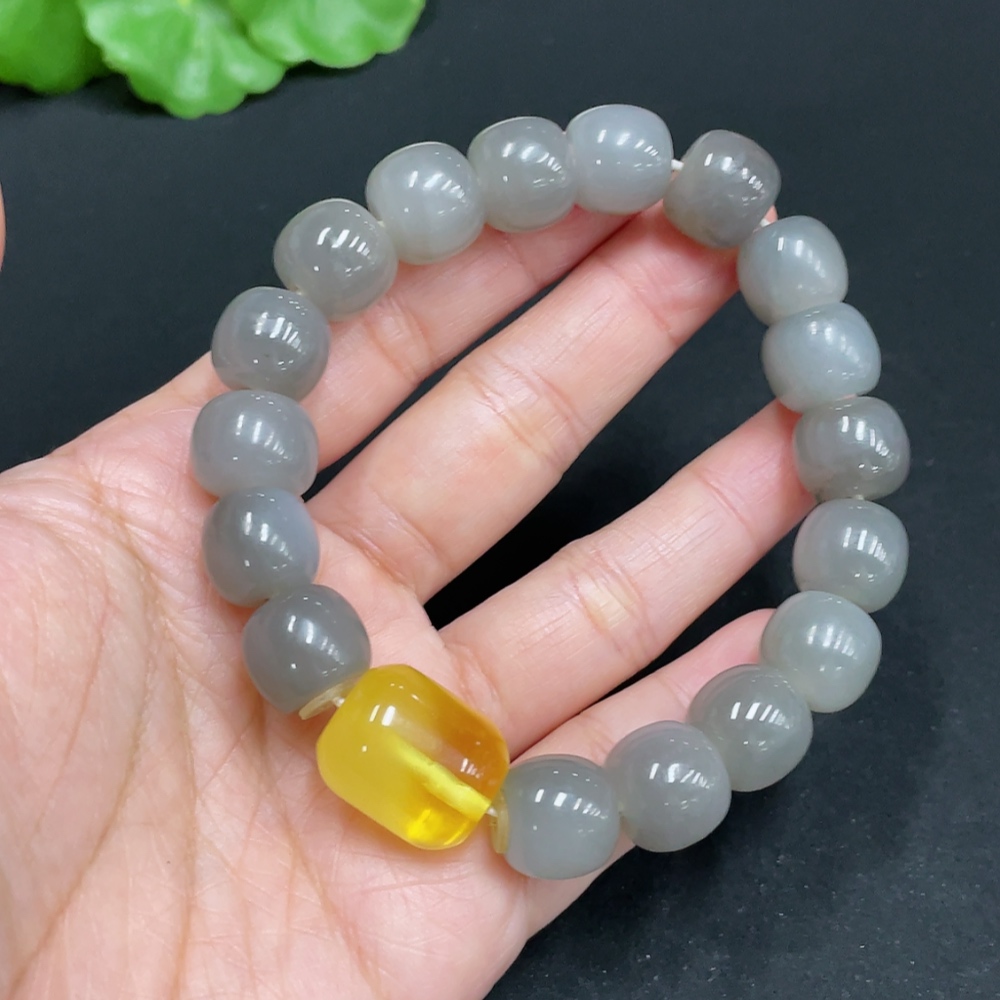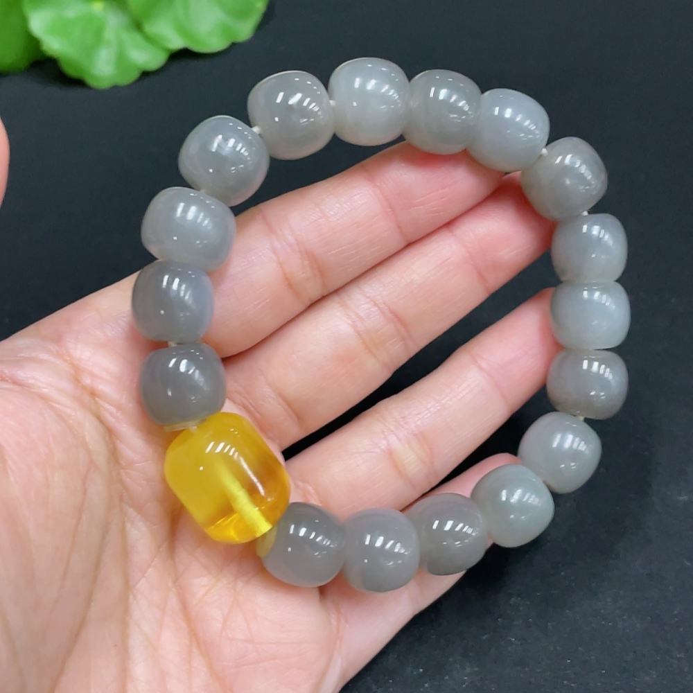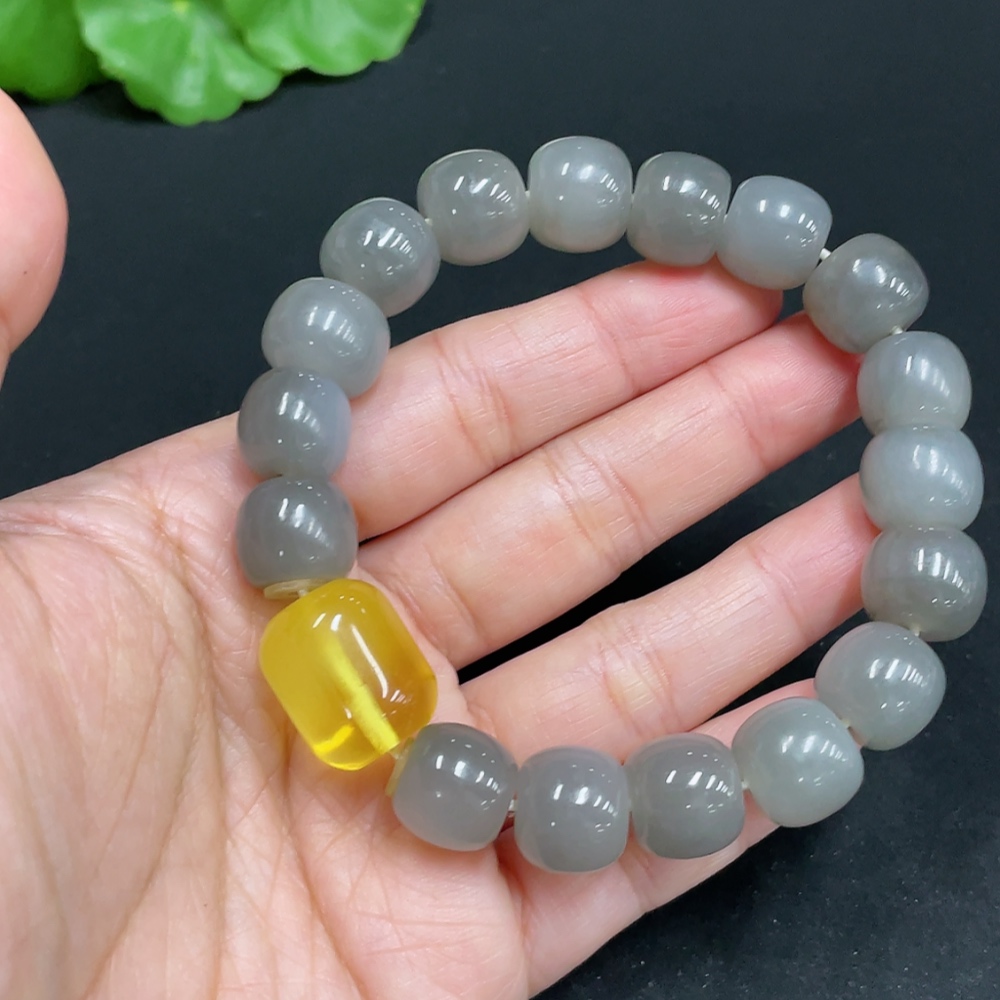 Hetian Jade Bracelet, about 11.8mm, total weight about 49.3g, with amber