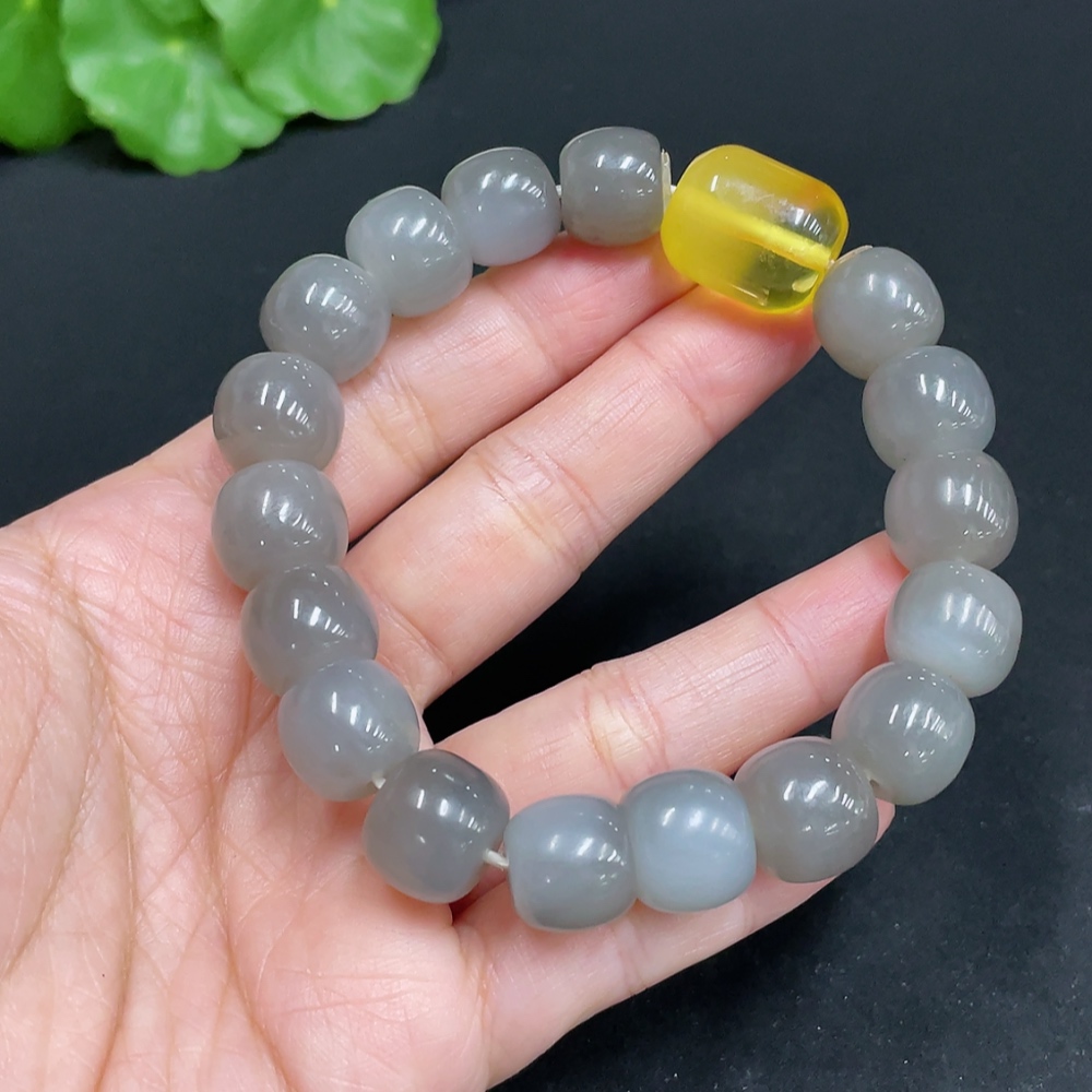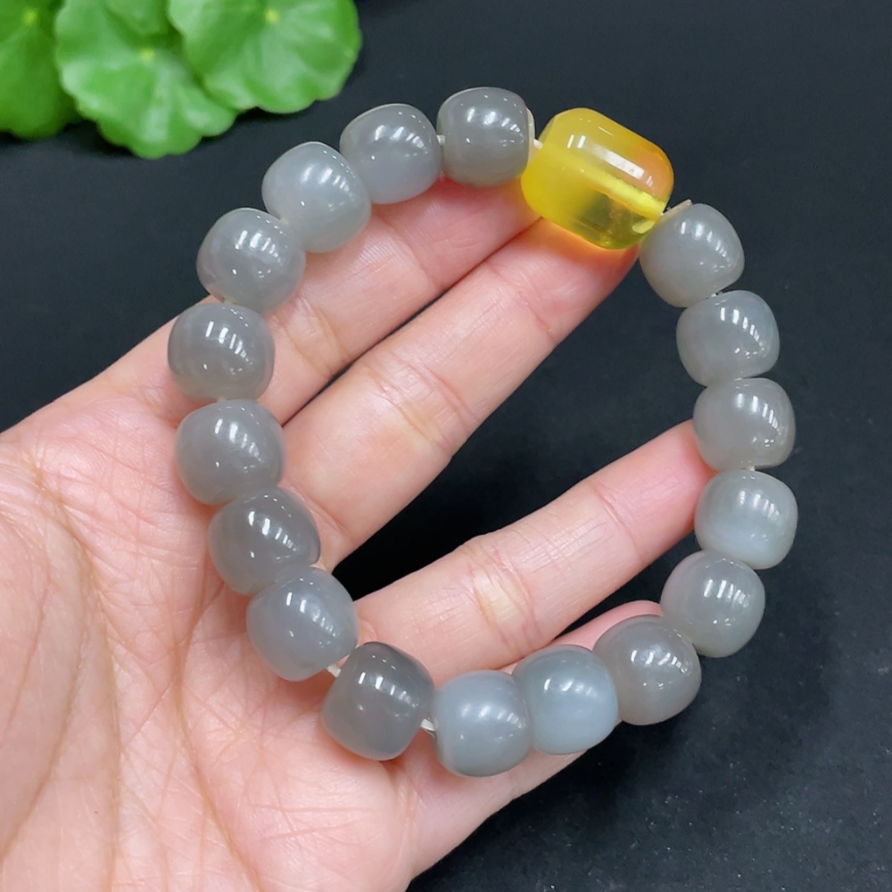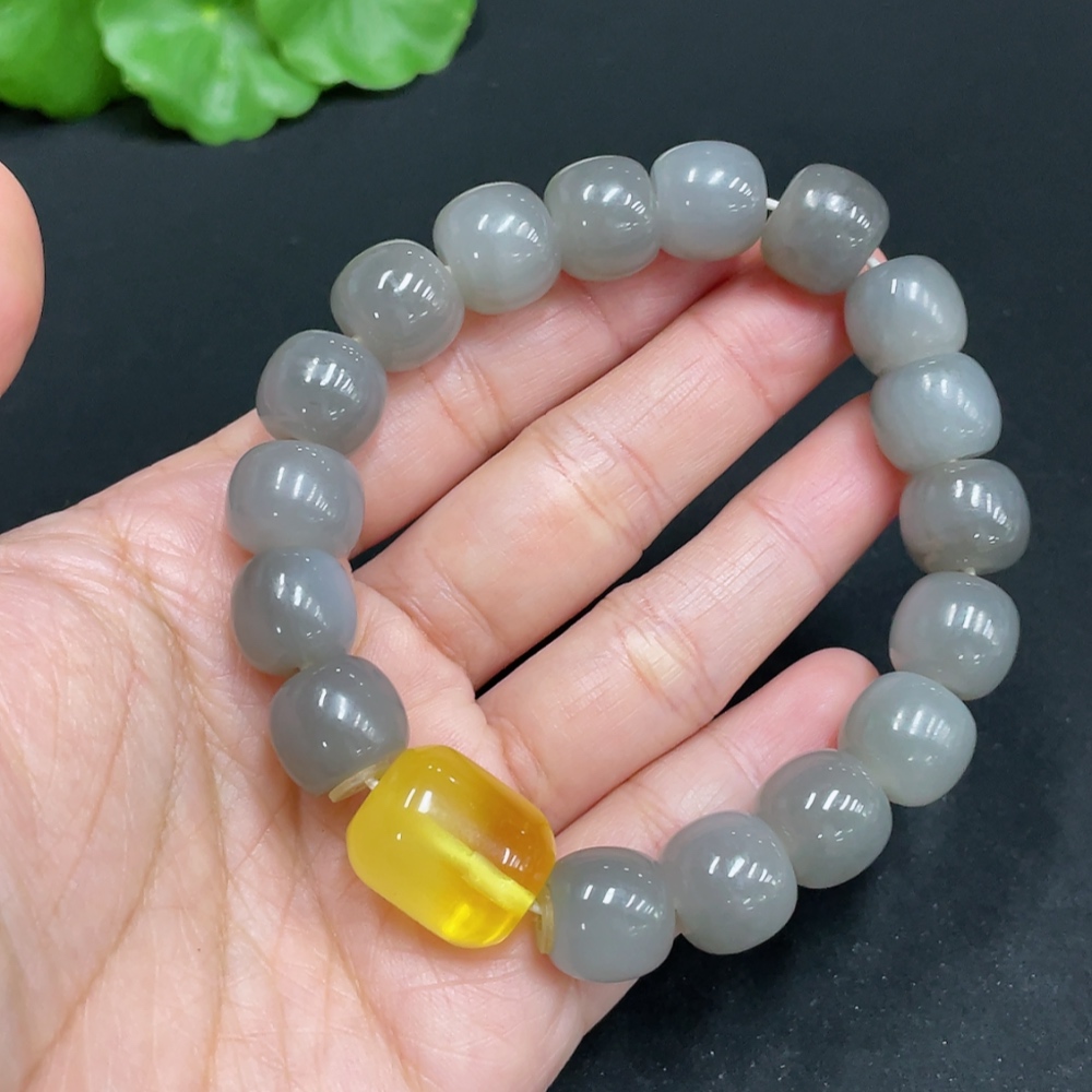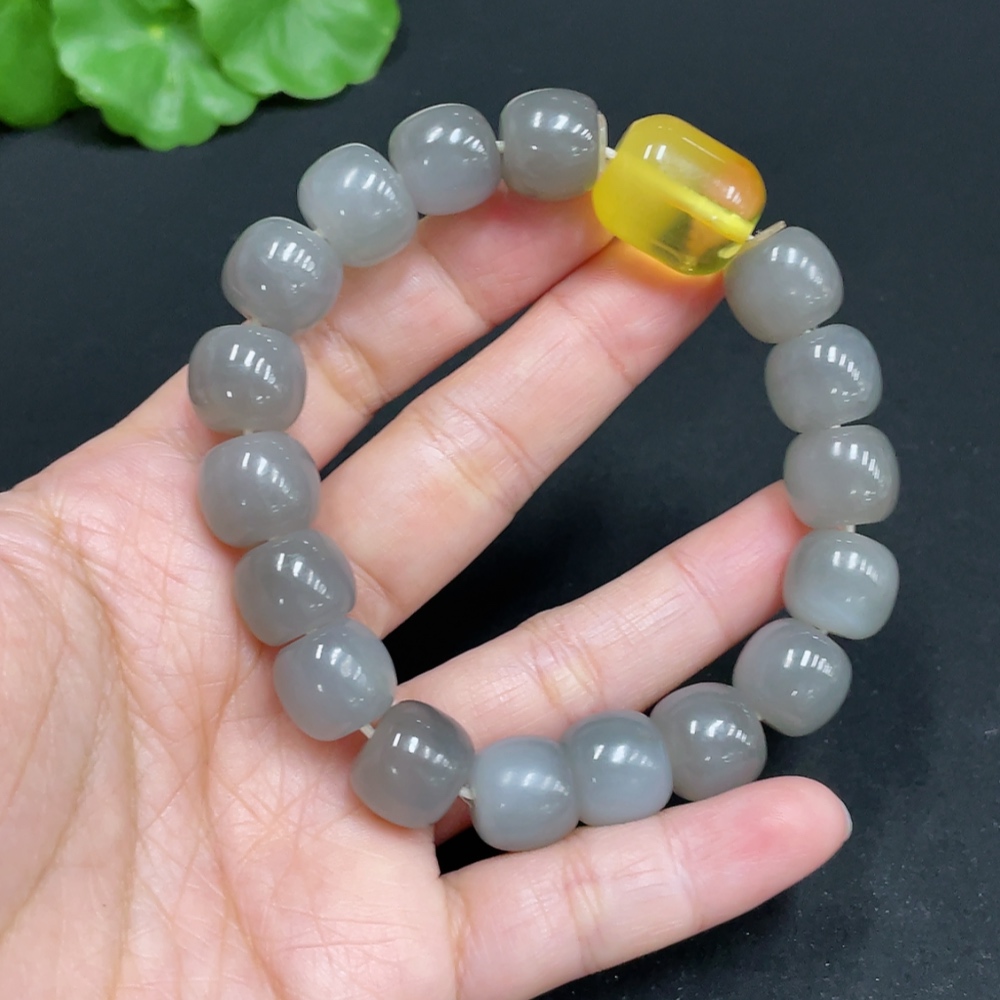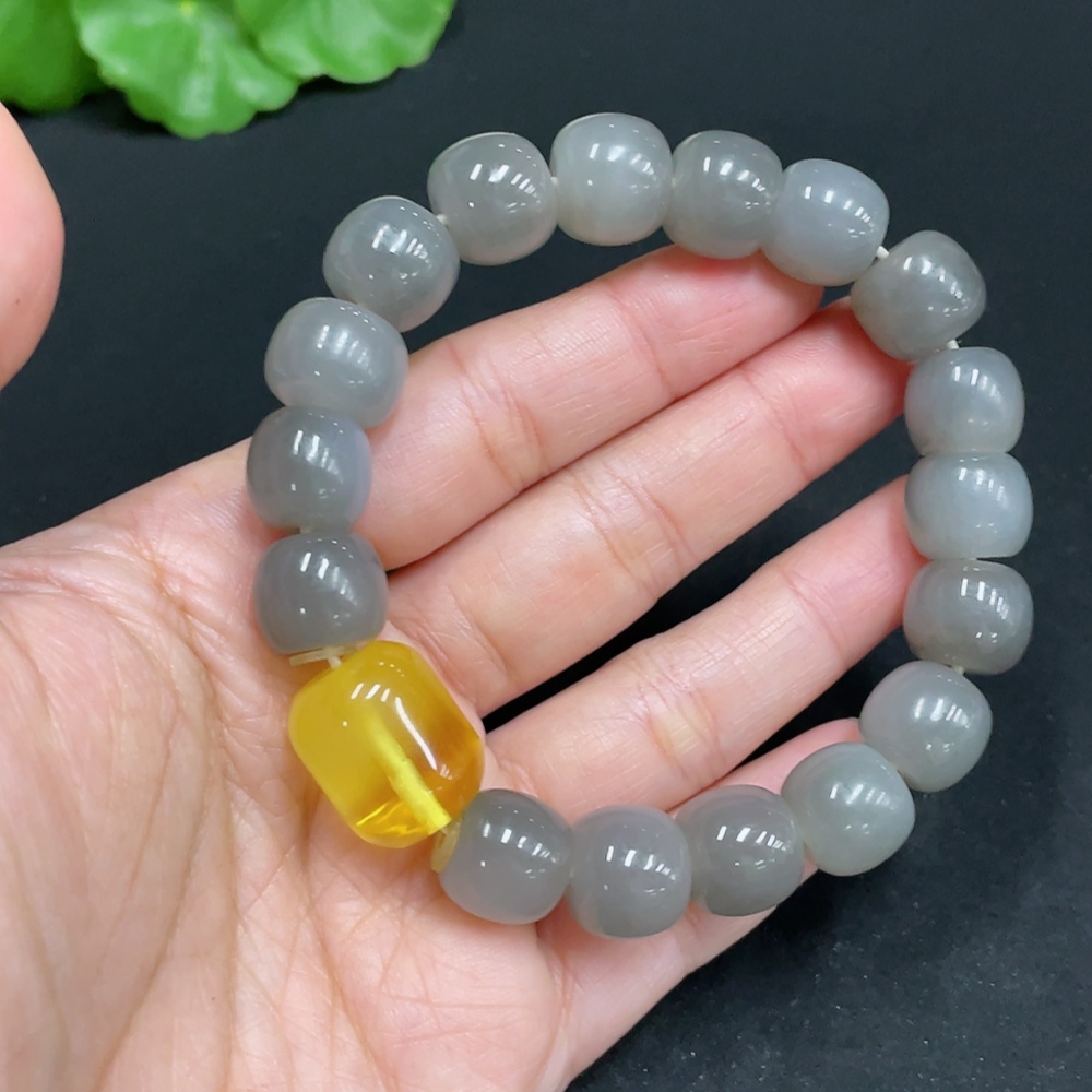 Hetian Jade Bracelet, about 11.8mm, total weight about 49.3g, with amber
