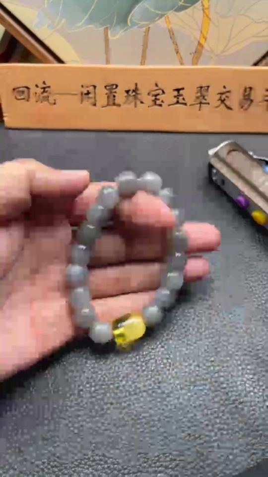 Trezaar - Hetian Jade Bracelet, about 11.8mm, total weight about 49.3g, with amber