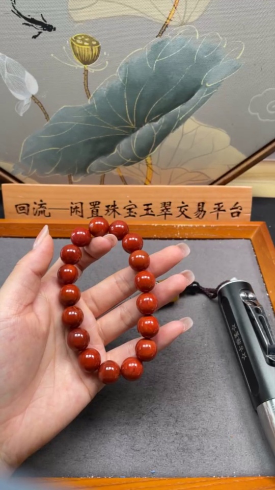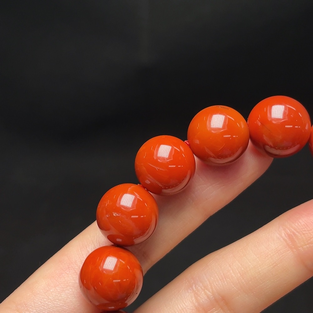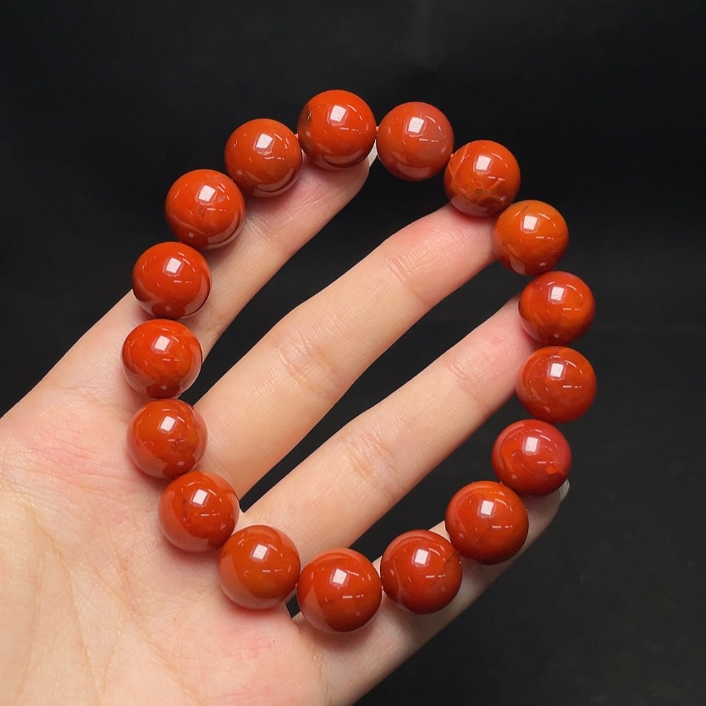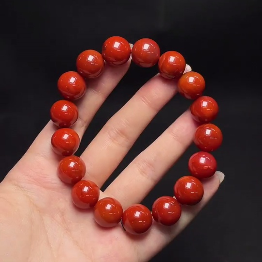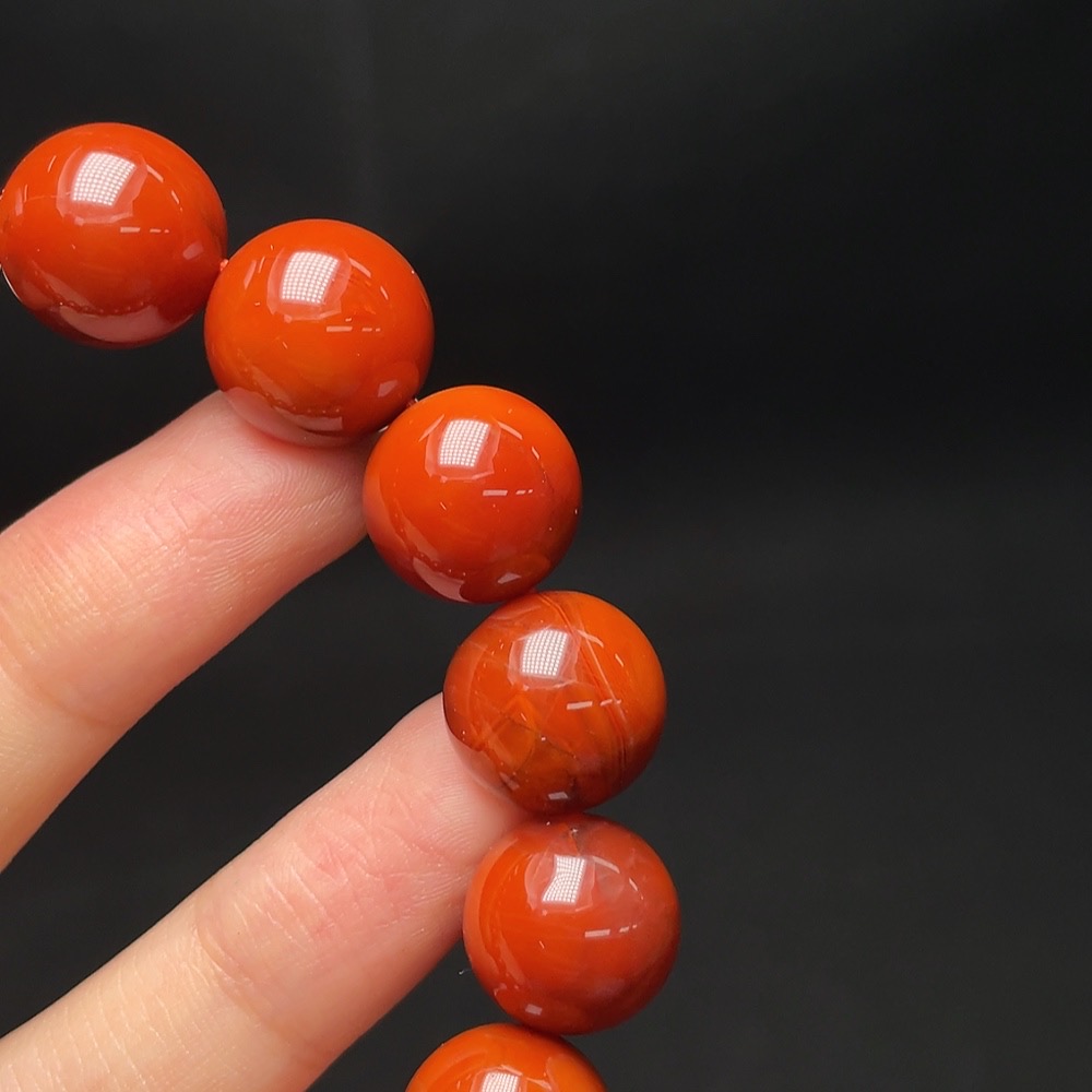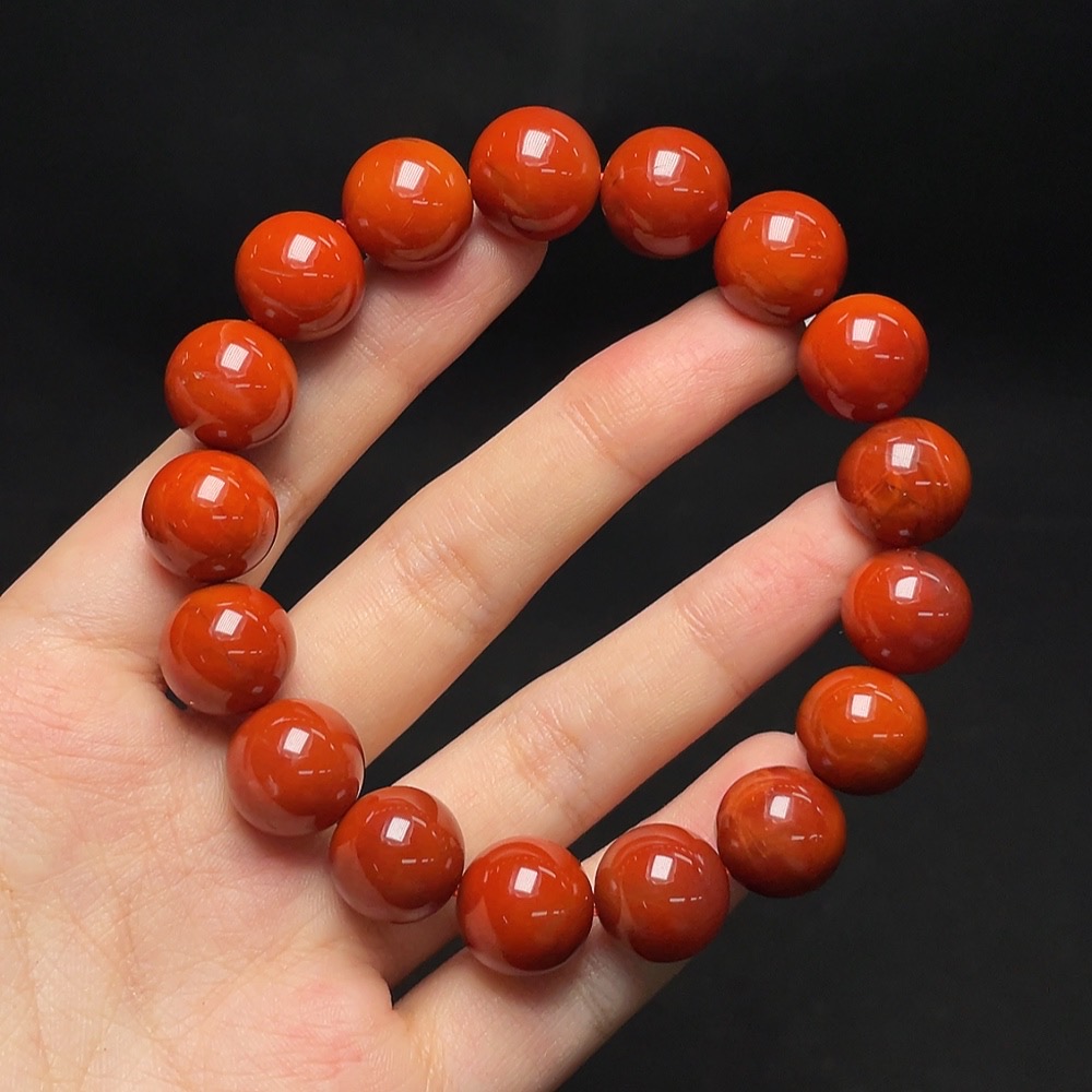 Red Agate Bracelet with Visible Organic Inclusions, Total Weight Approx. 56.6g, Size About 13.3mm