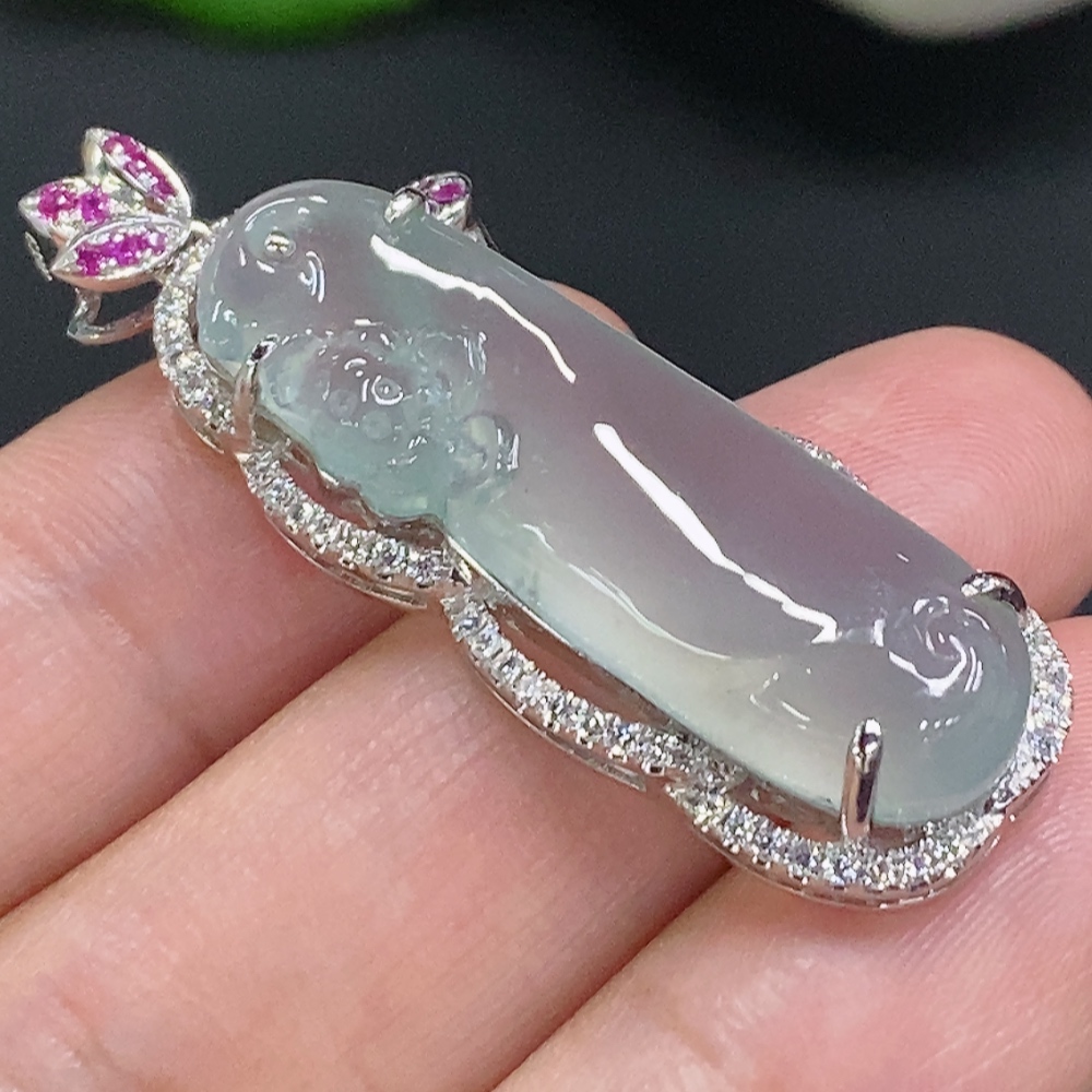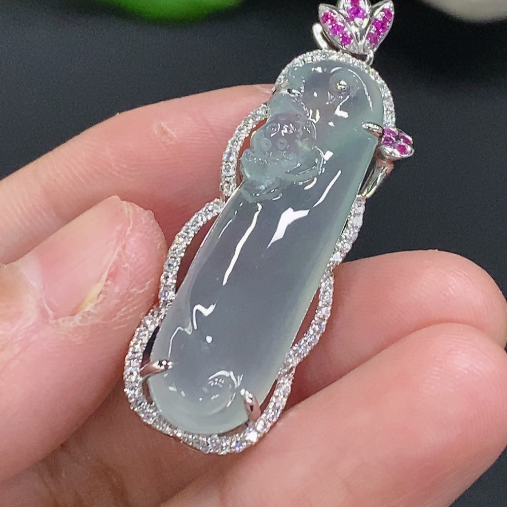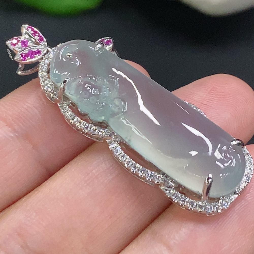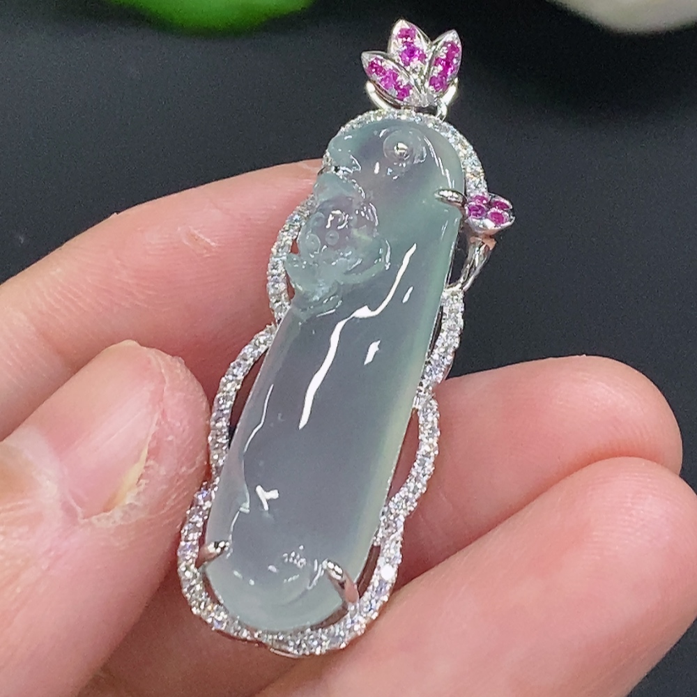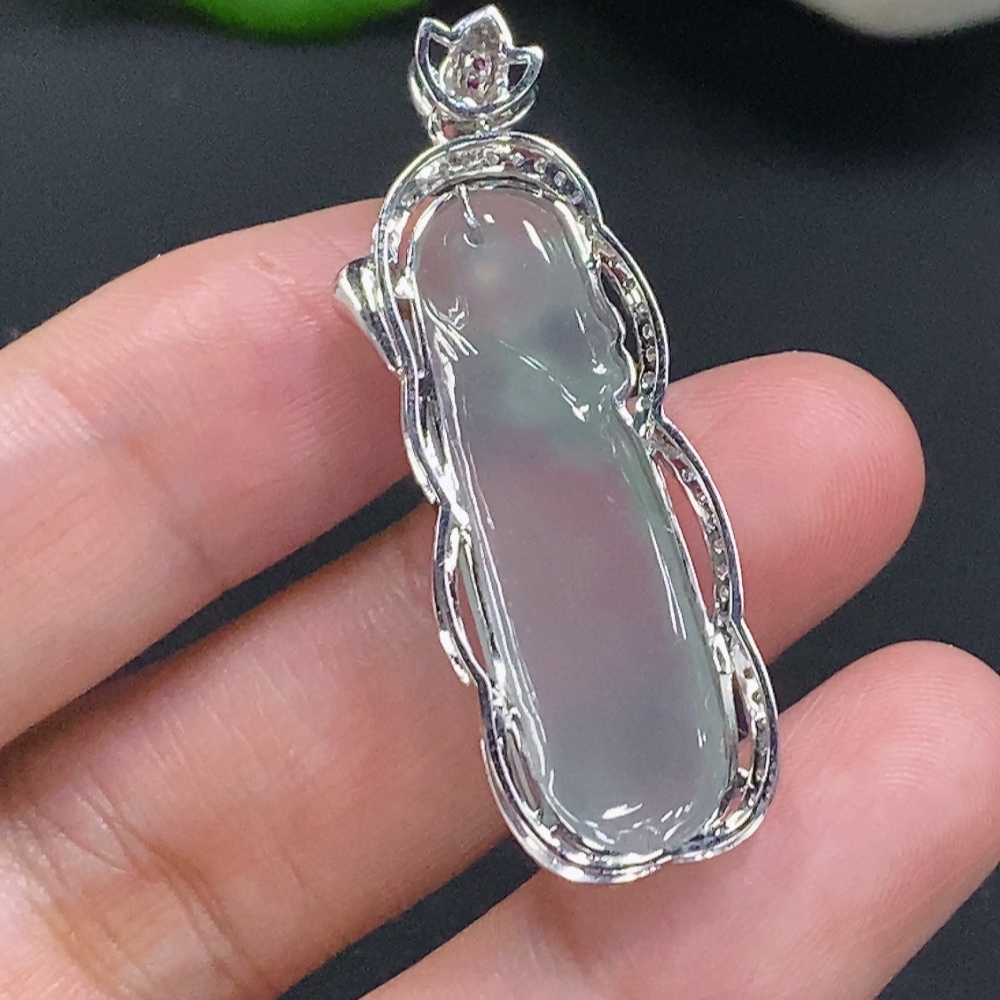 Jadeite Pendant with 18K Gold Setting, Total Weight Approximately 7.5g (Colorless Accent Stones are Diamonds)