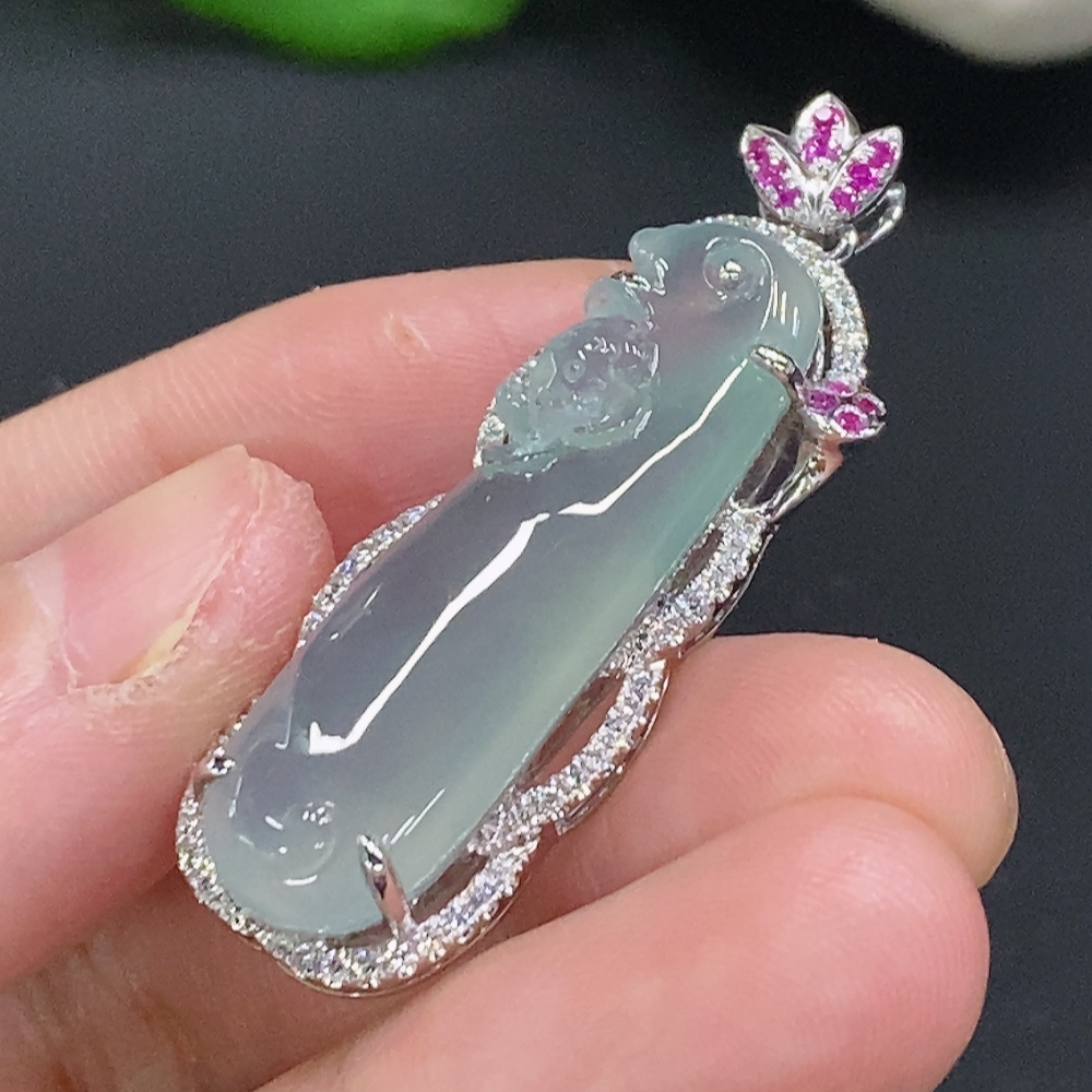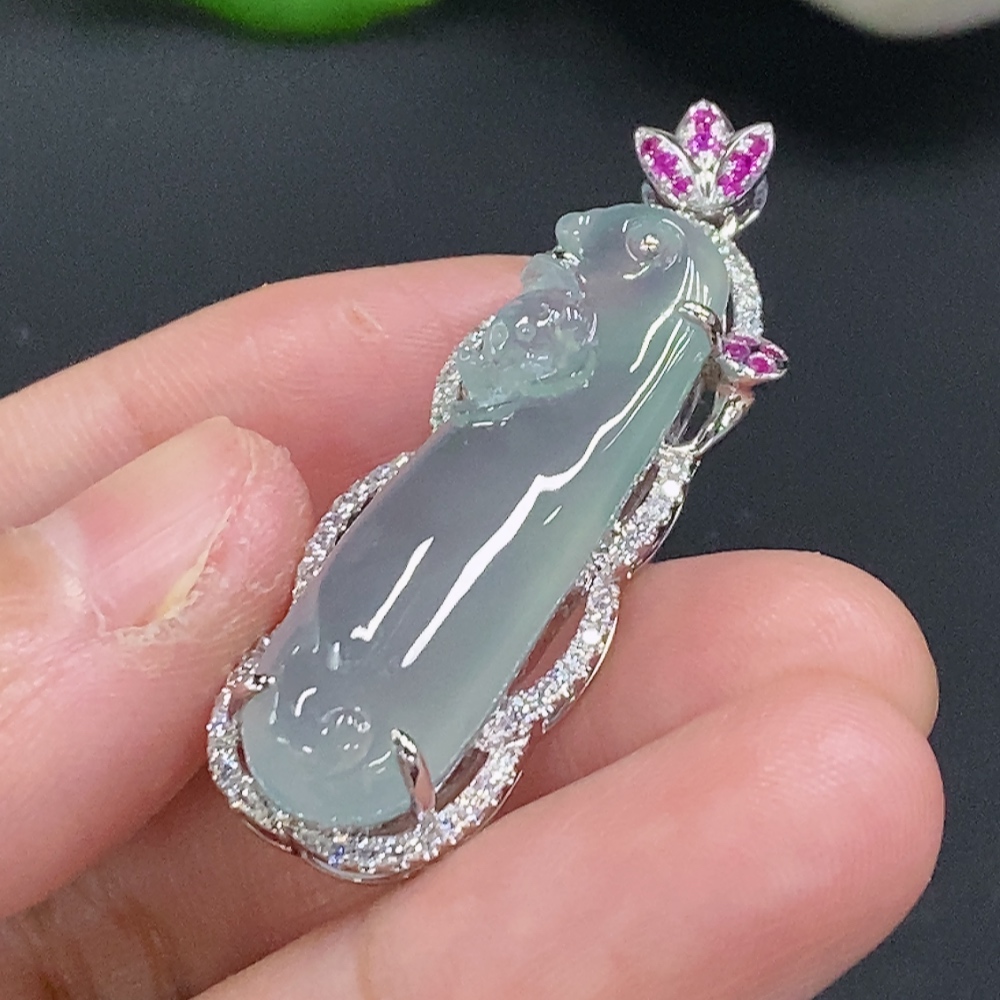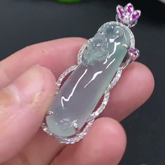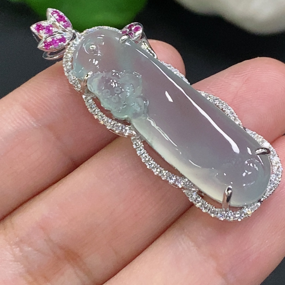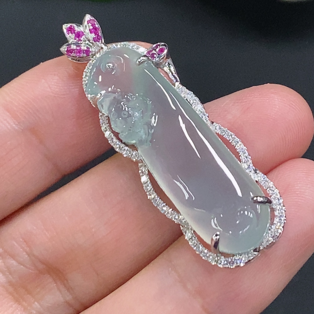 Jadeite Pendant with 18K Gold Setting, Total Weight Approximately 7.5g (Colorless Accent Stones are Diamonds)