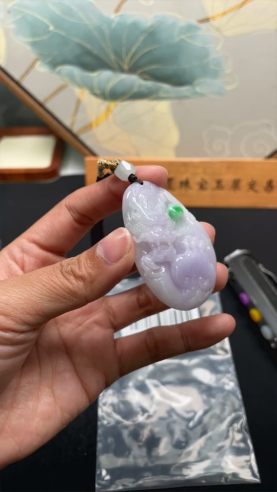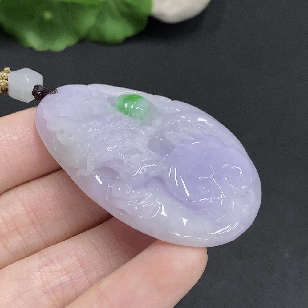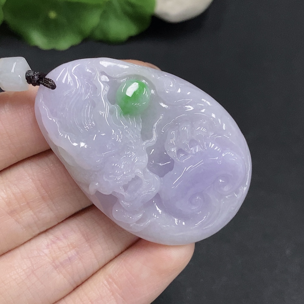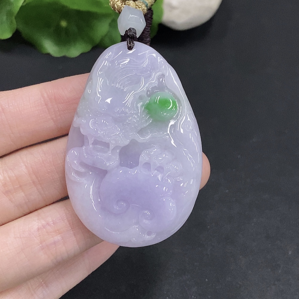 Jadeite Dragon Pendant with Cord, Total Weight Approximately 40g