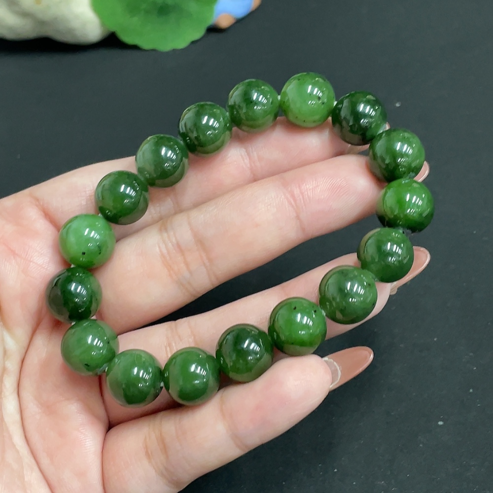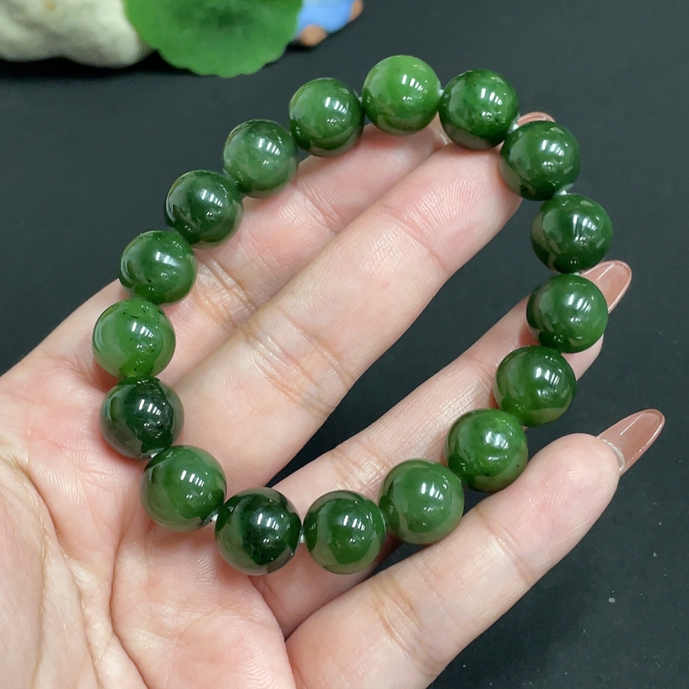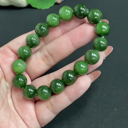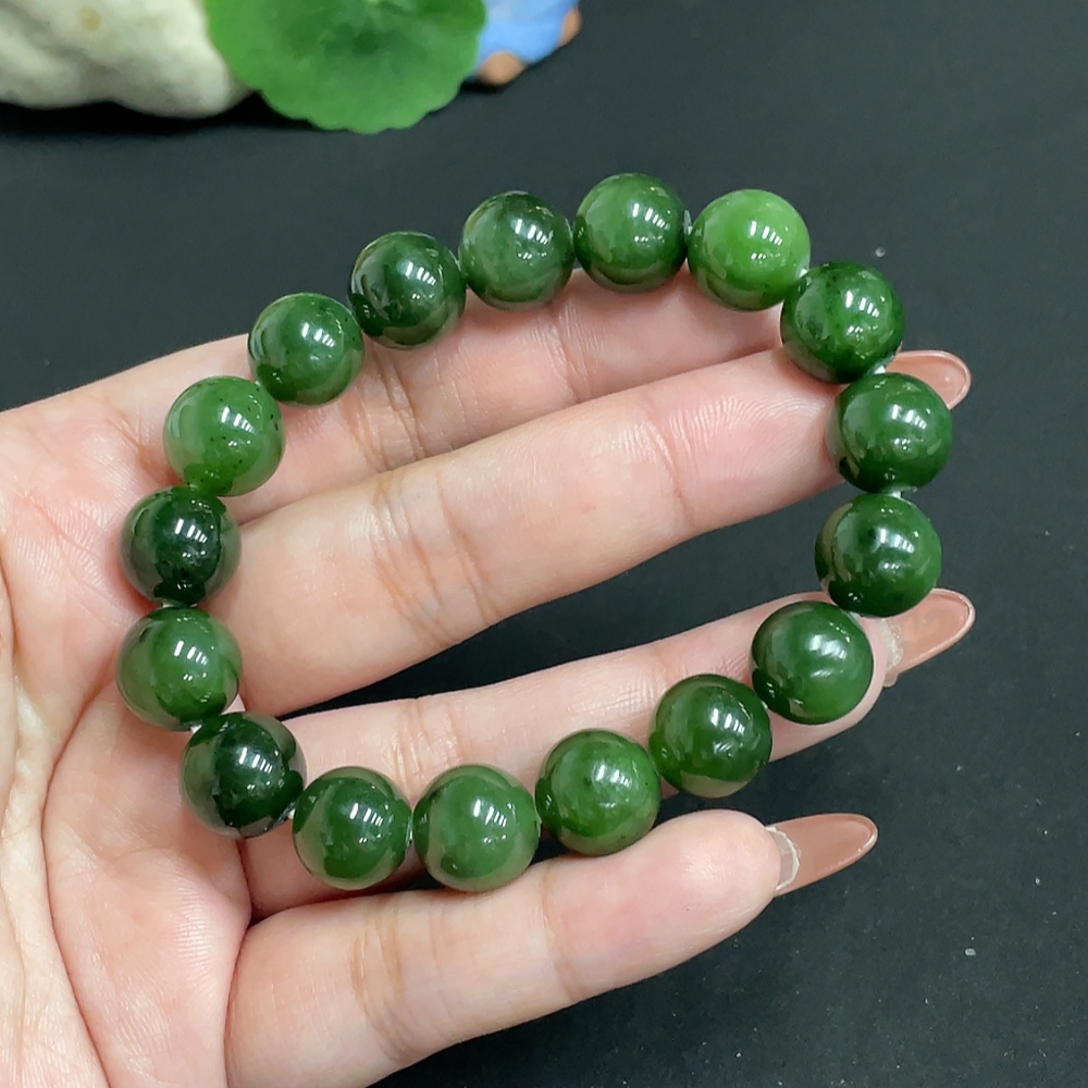 Hetian Jade Jasper Bracelet, approx. 11.8 mm beads, total weight about 45.4g