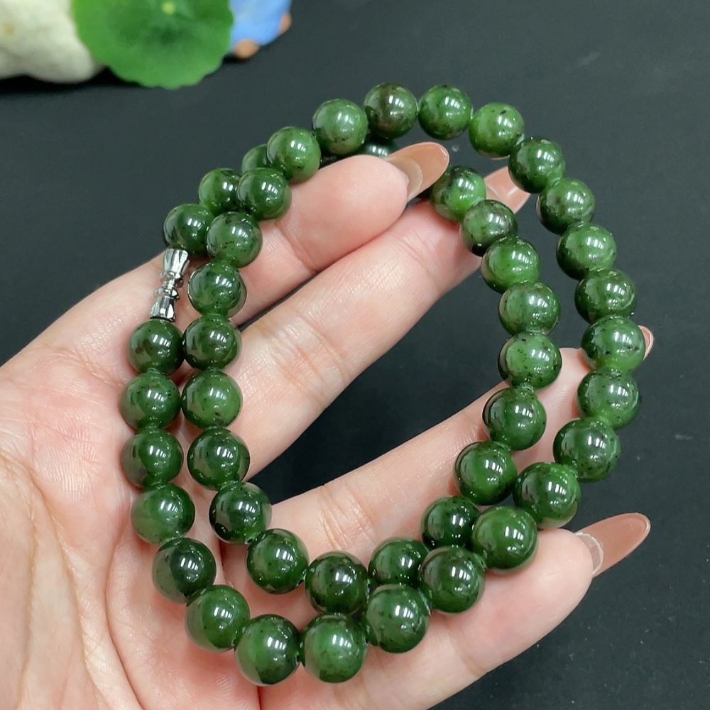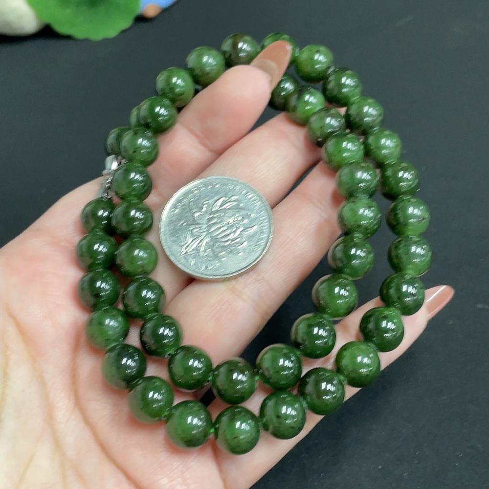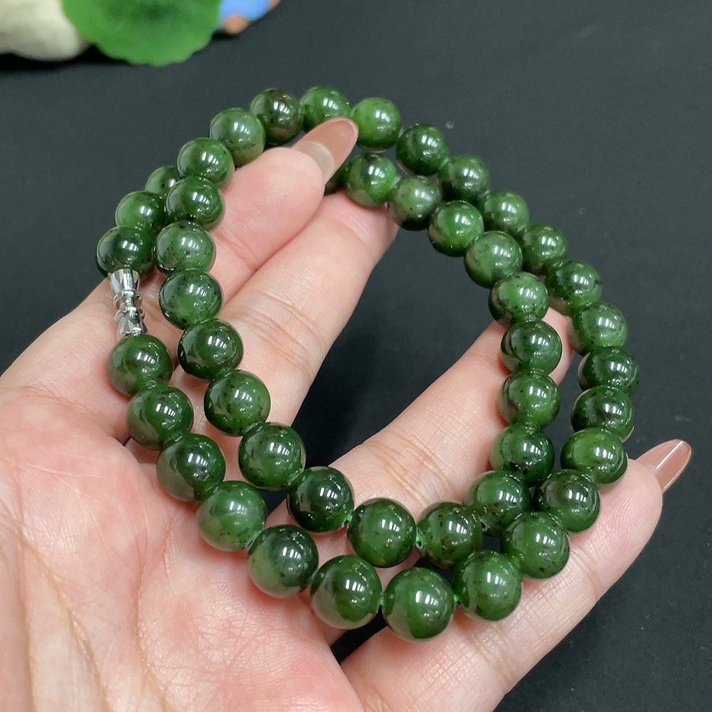 Hetian Jade Jasper Bead Necklace, Approx. 9.3 mm, Total Weight Approx. 64.5g