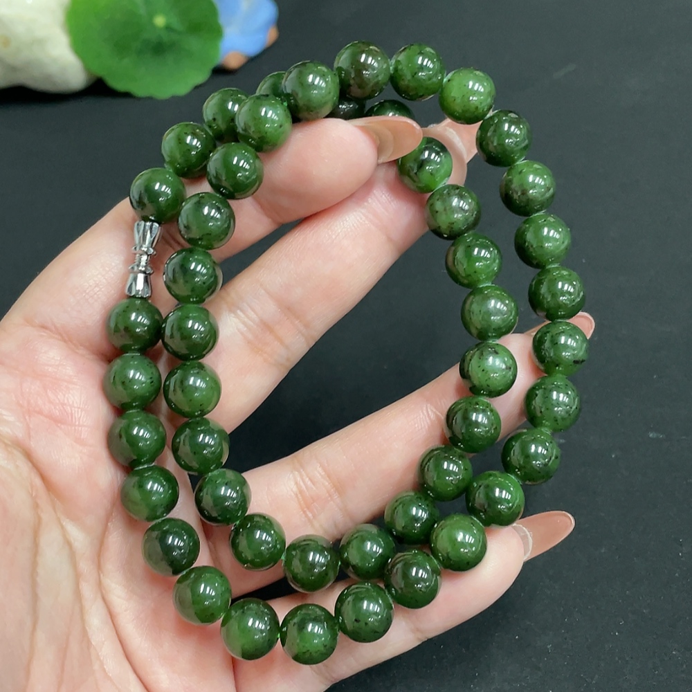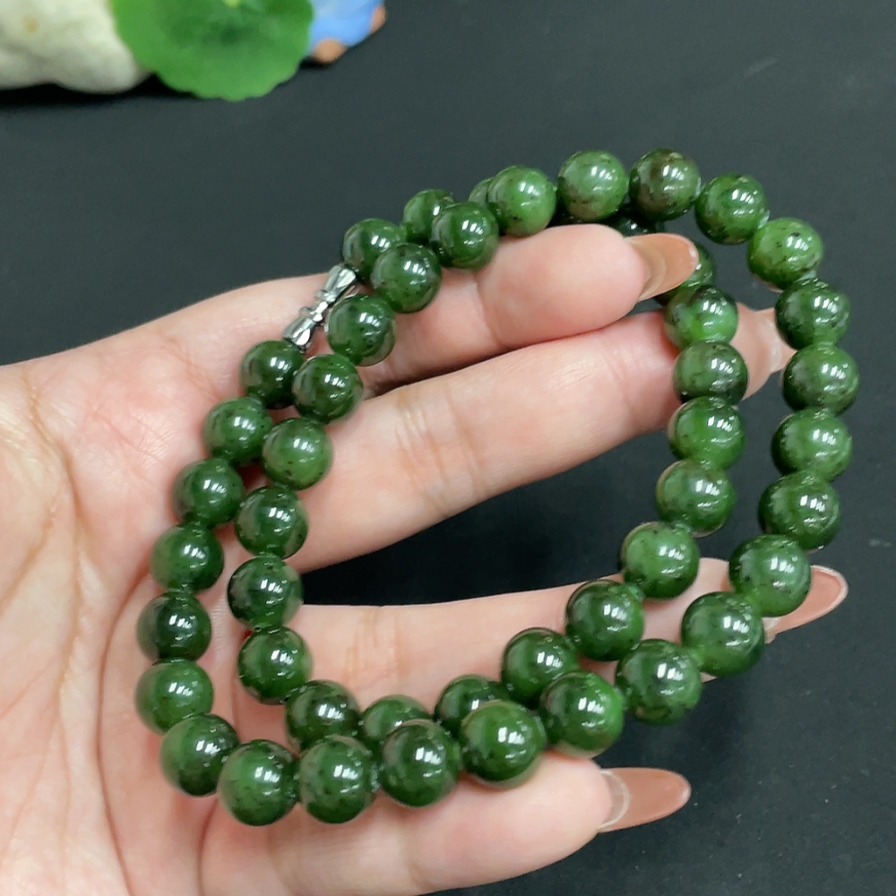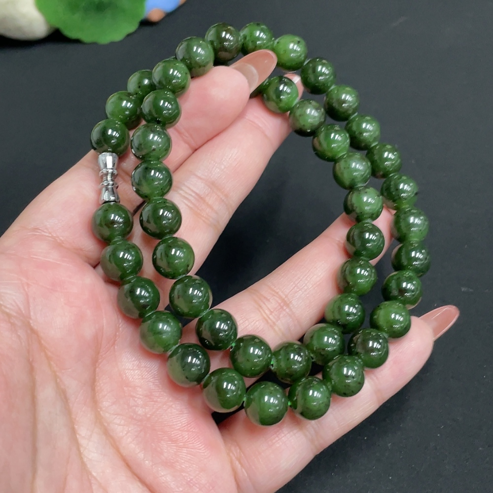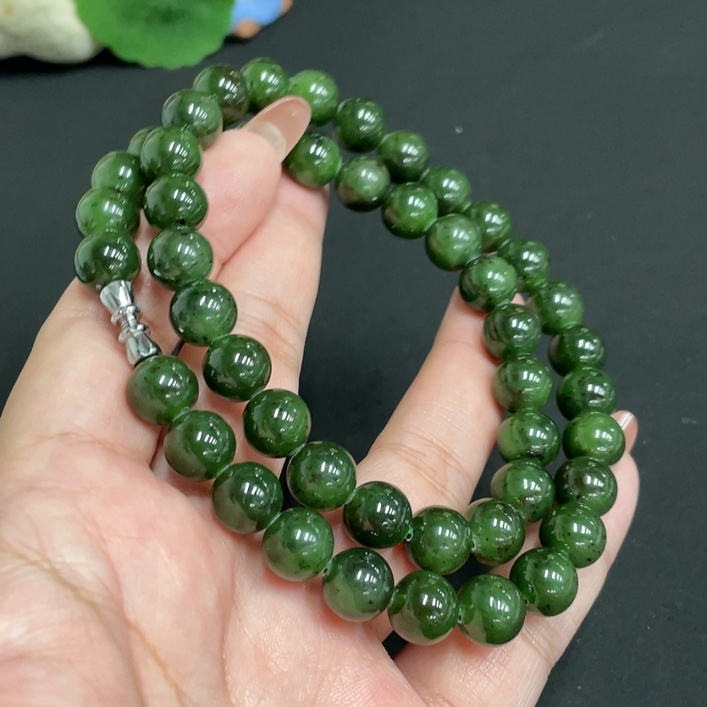 Hetian Jade Jasper Bead Necklace, Approx. 9.3 mm, Total Weight Approx. 64.5g