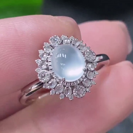 Jadeite and Diamond Ring in 18K Gold, Size 14, Total Weight Approx. 2.14g