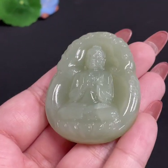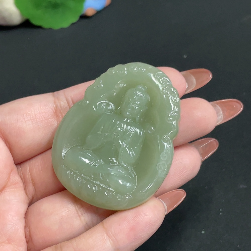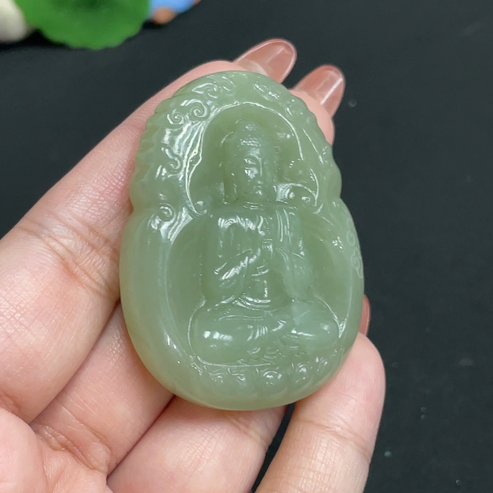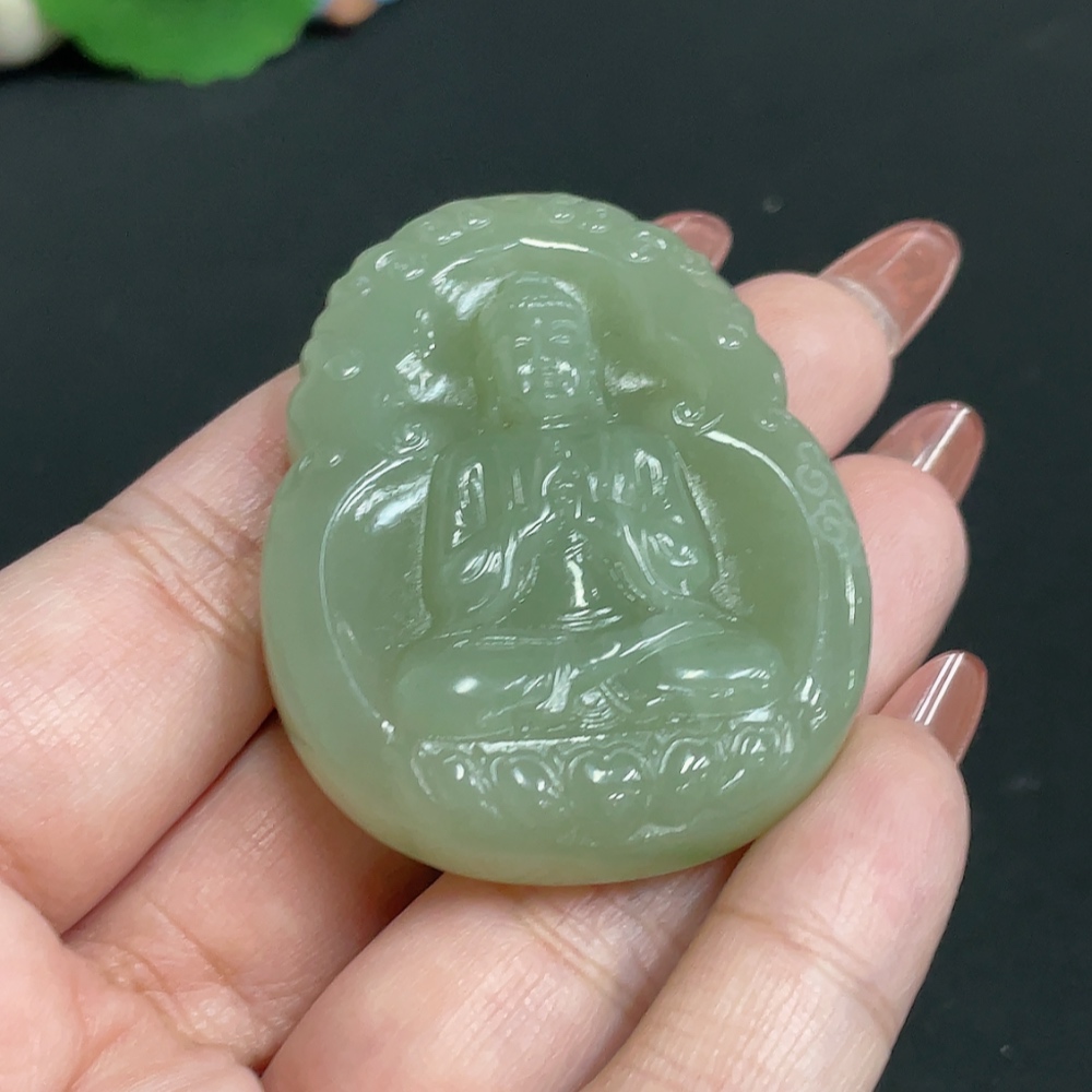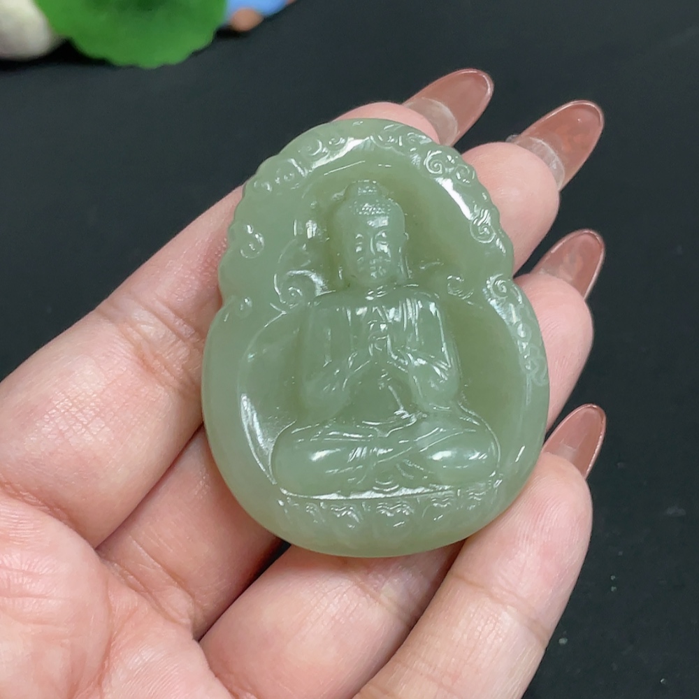 Hetian Jade Pendant: Great Sun Tathagata, Total Weight Approx. 43.6g