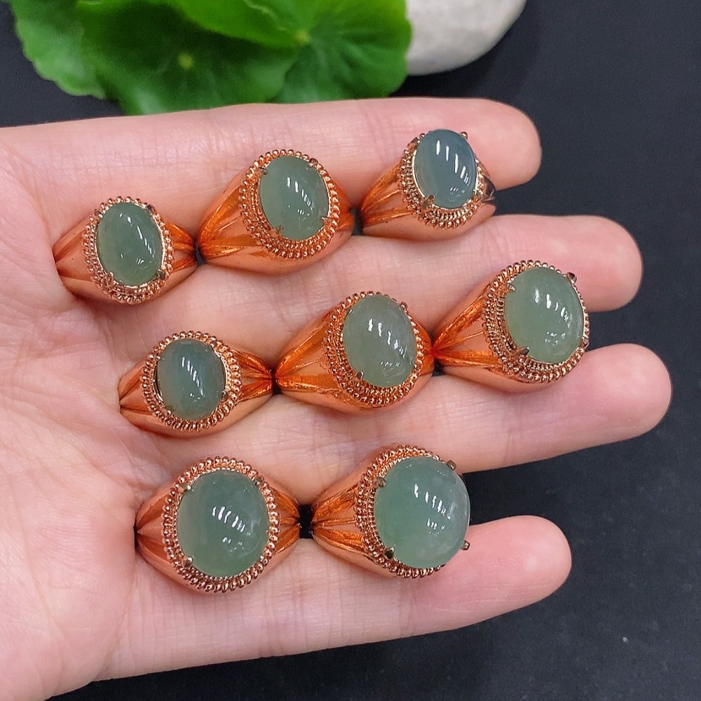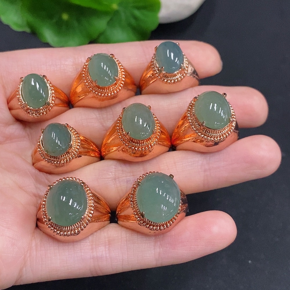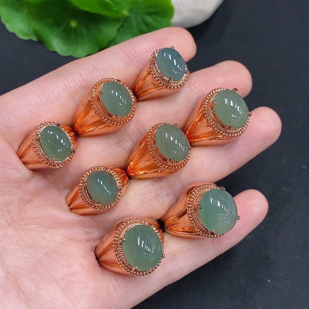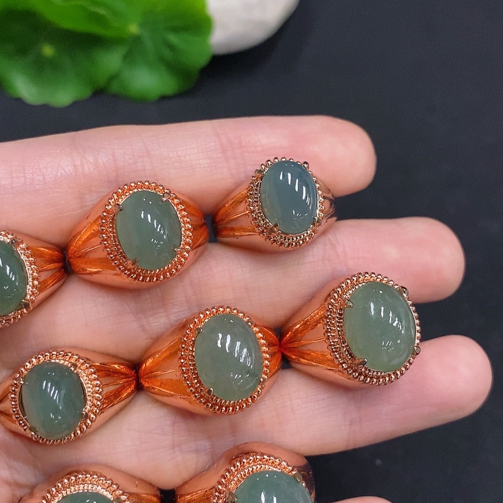 Jadeite Inlaid Cabochon Copper Base Sell as a Lot