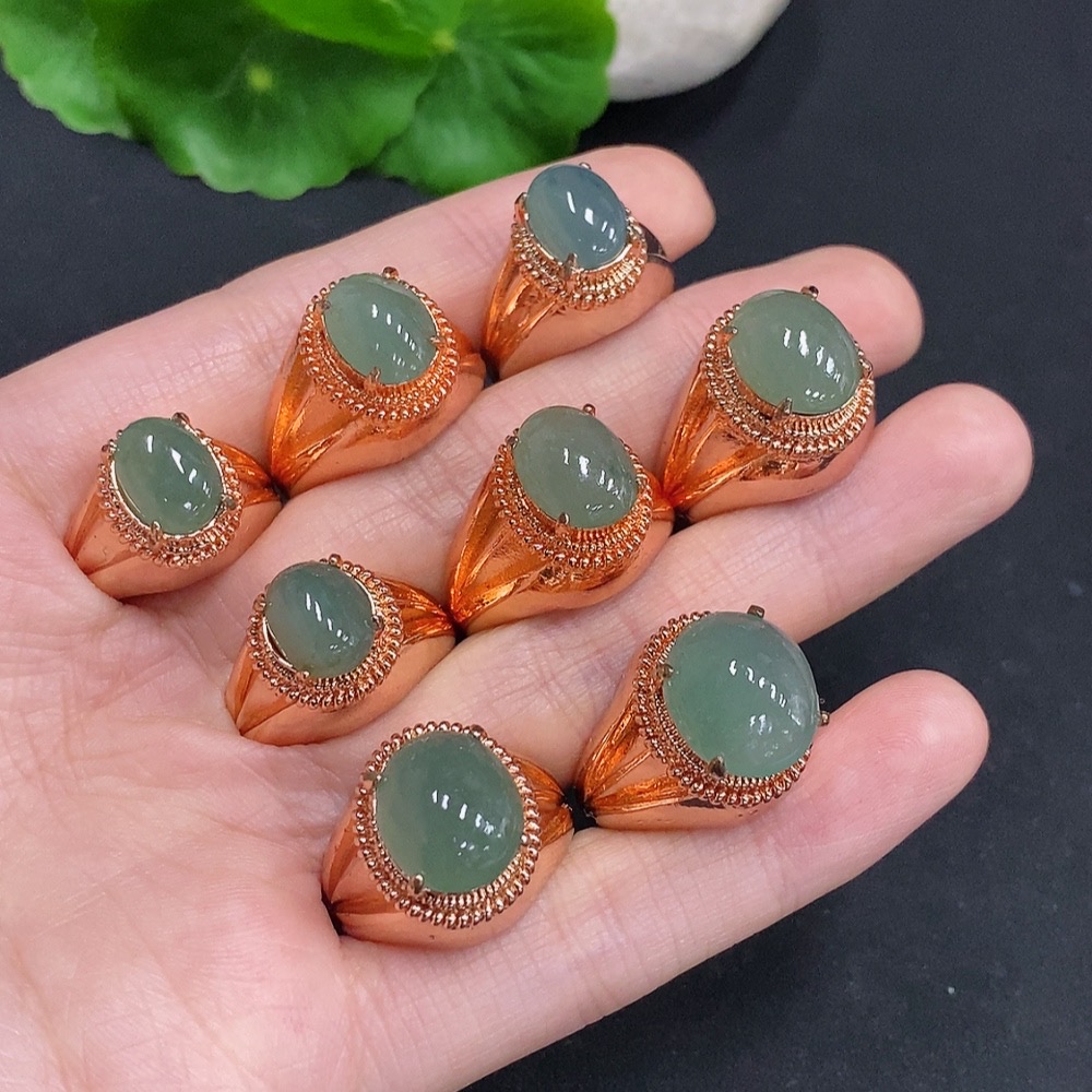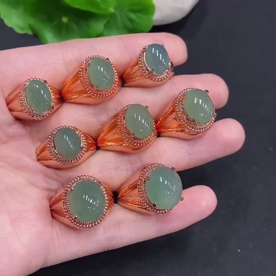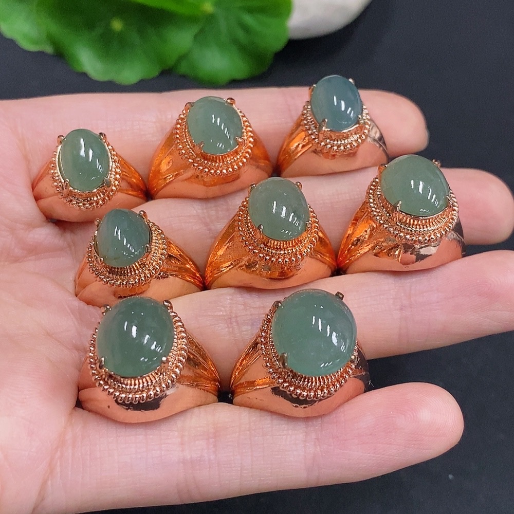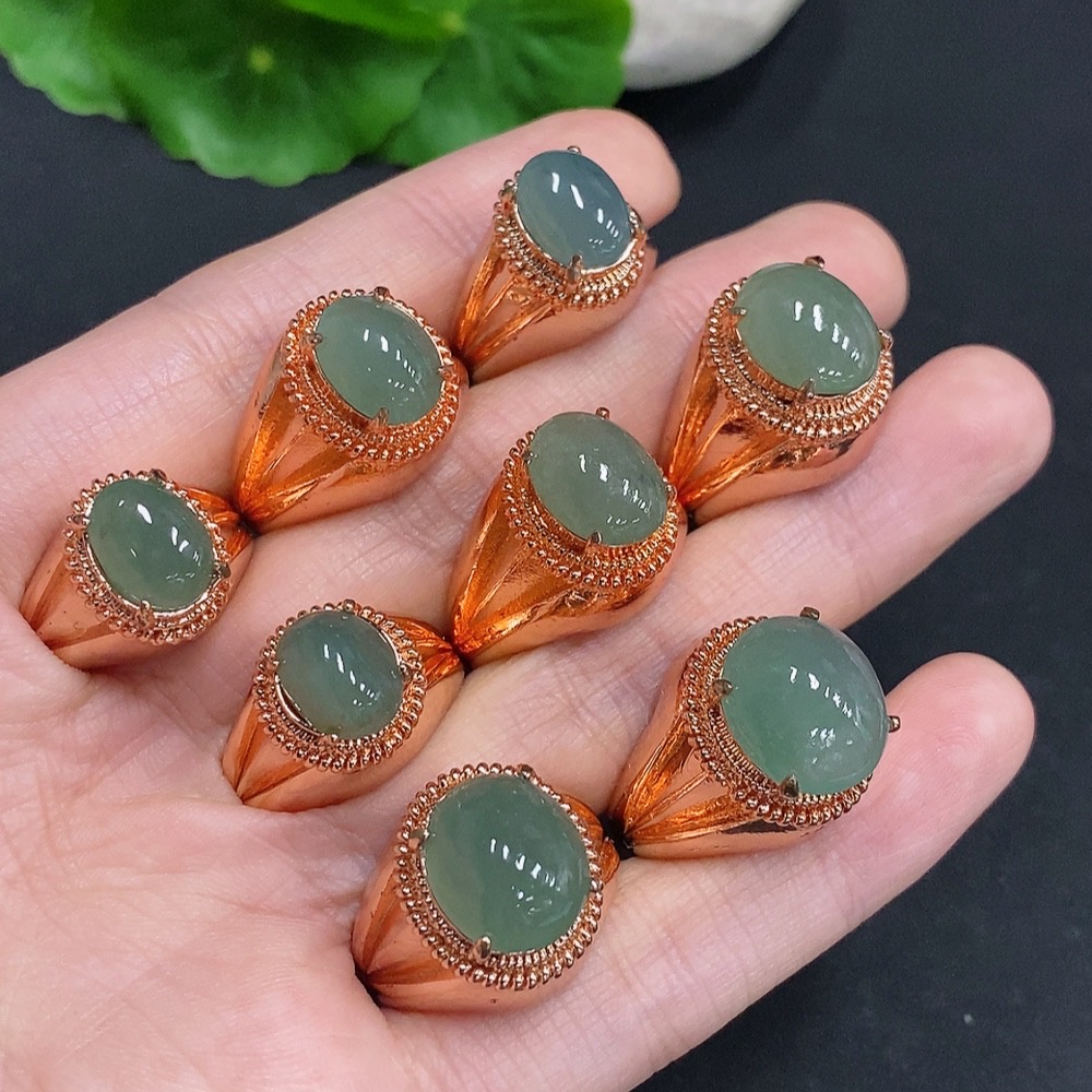 Jadeite Inlaid Cabochon Copper Base Sell as a Lot