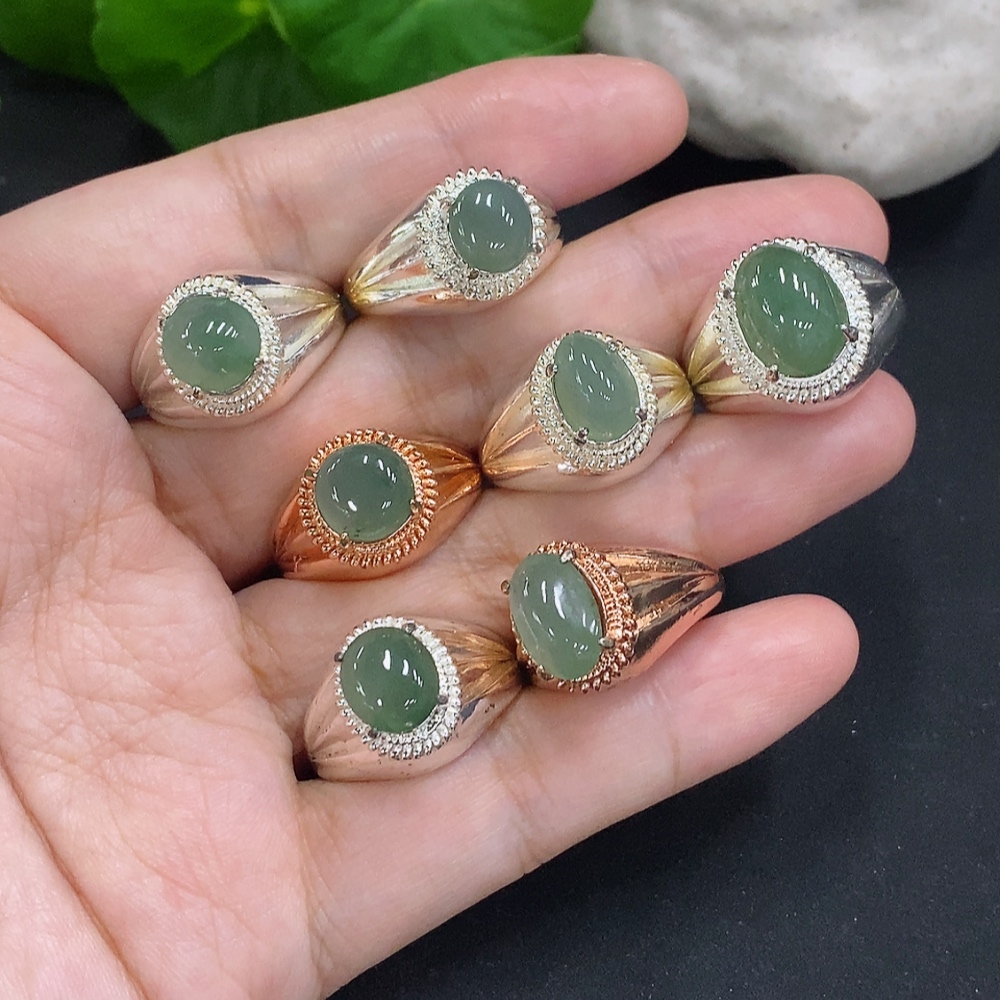 Jadeite Cabochon Sell as a Lot Non-Gold Inlaid