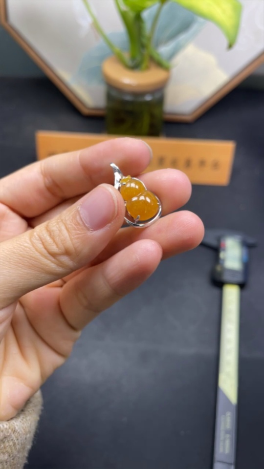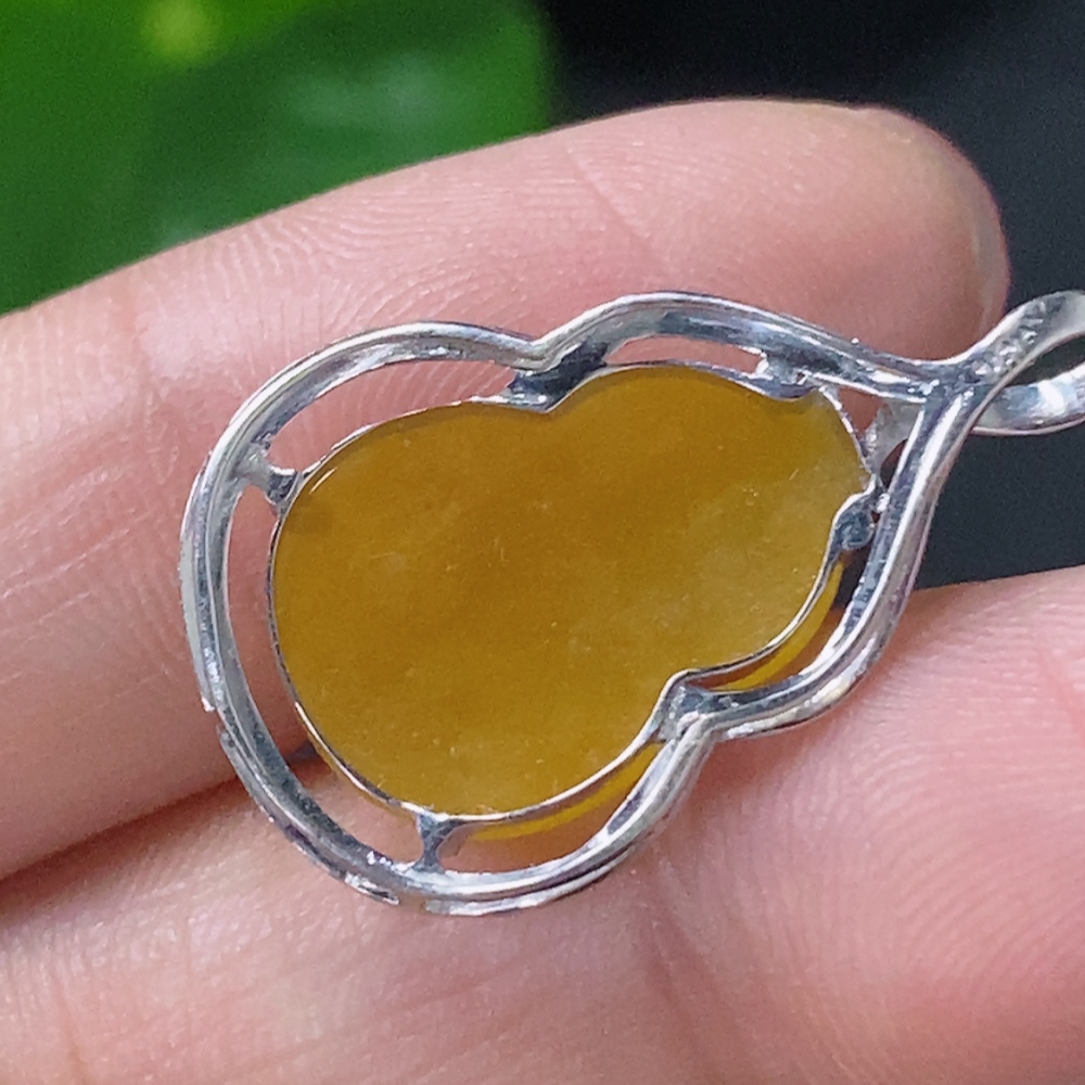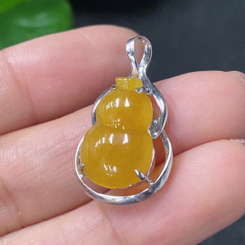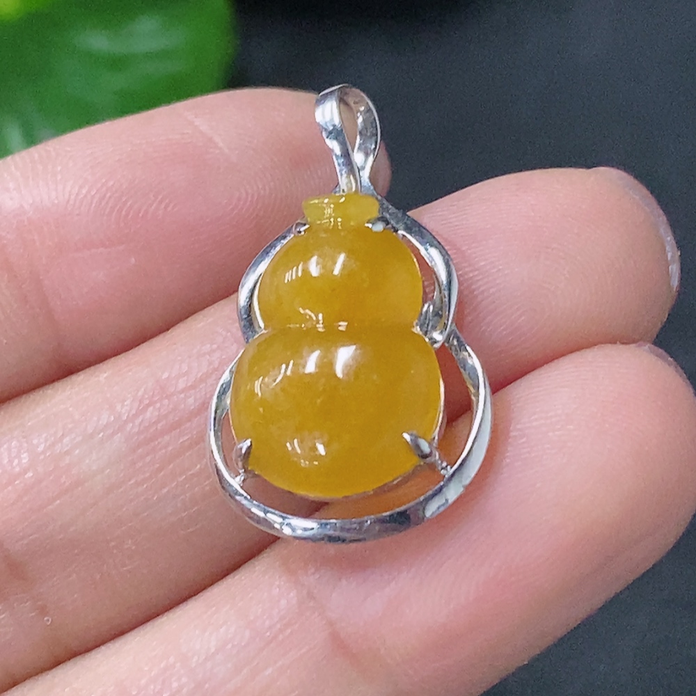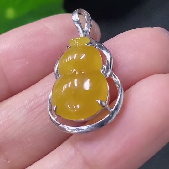 Jadeite gourd pendant with 18k gold inlay, total weight approximately 1.8g