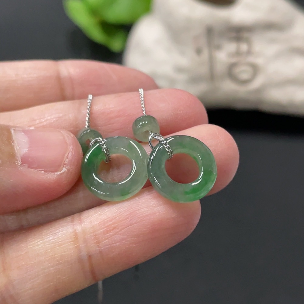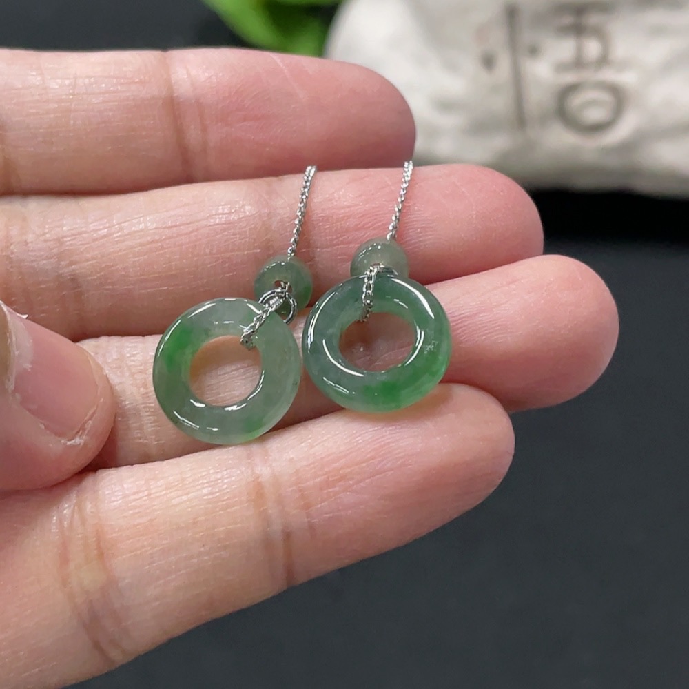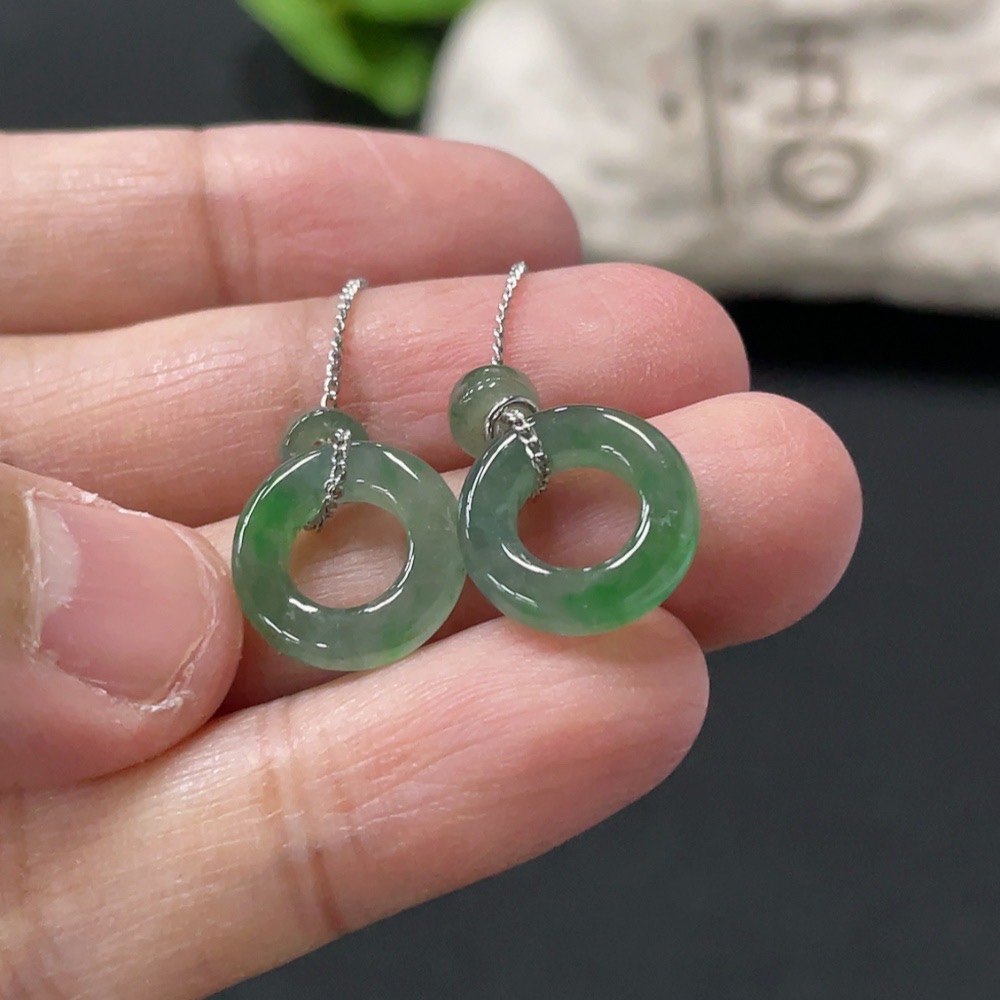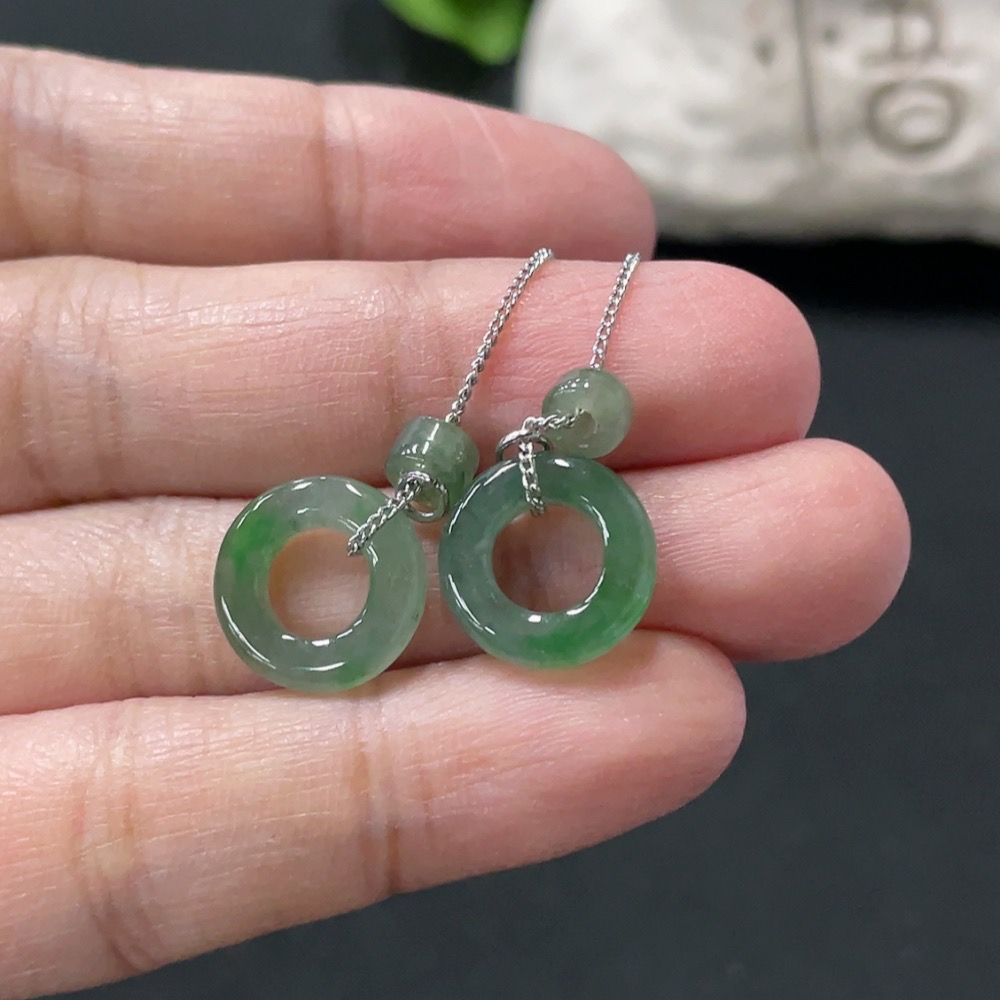 Jadeite Inlaid Earrings Non-Gold Total Weight Approx. 2.44g