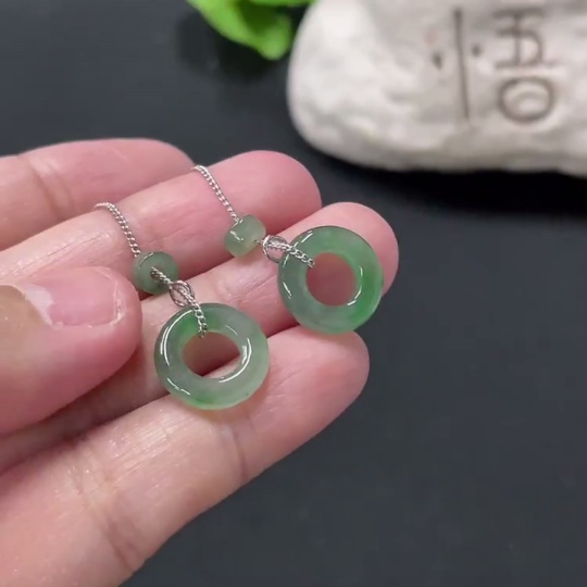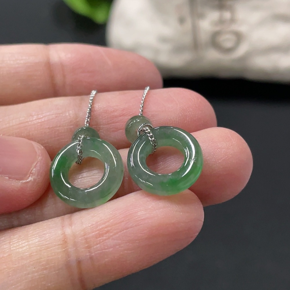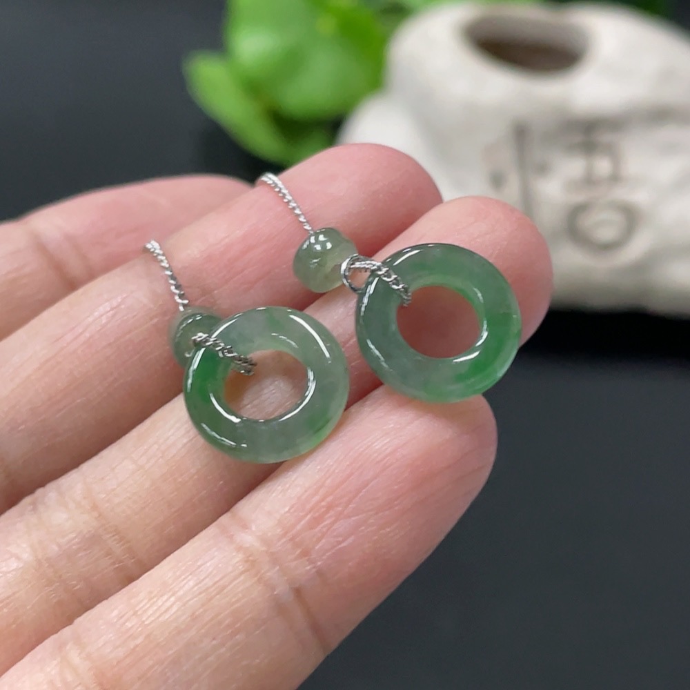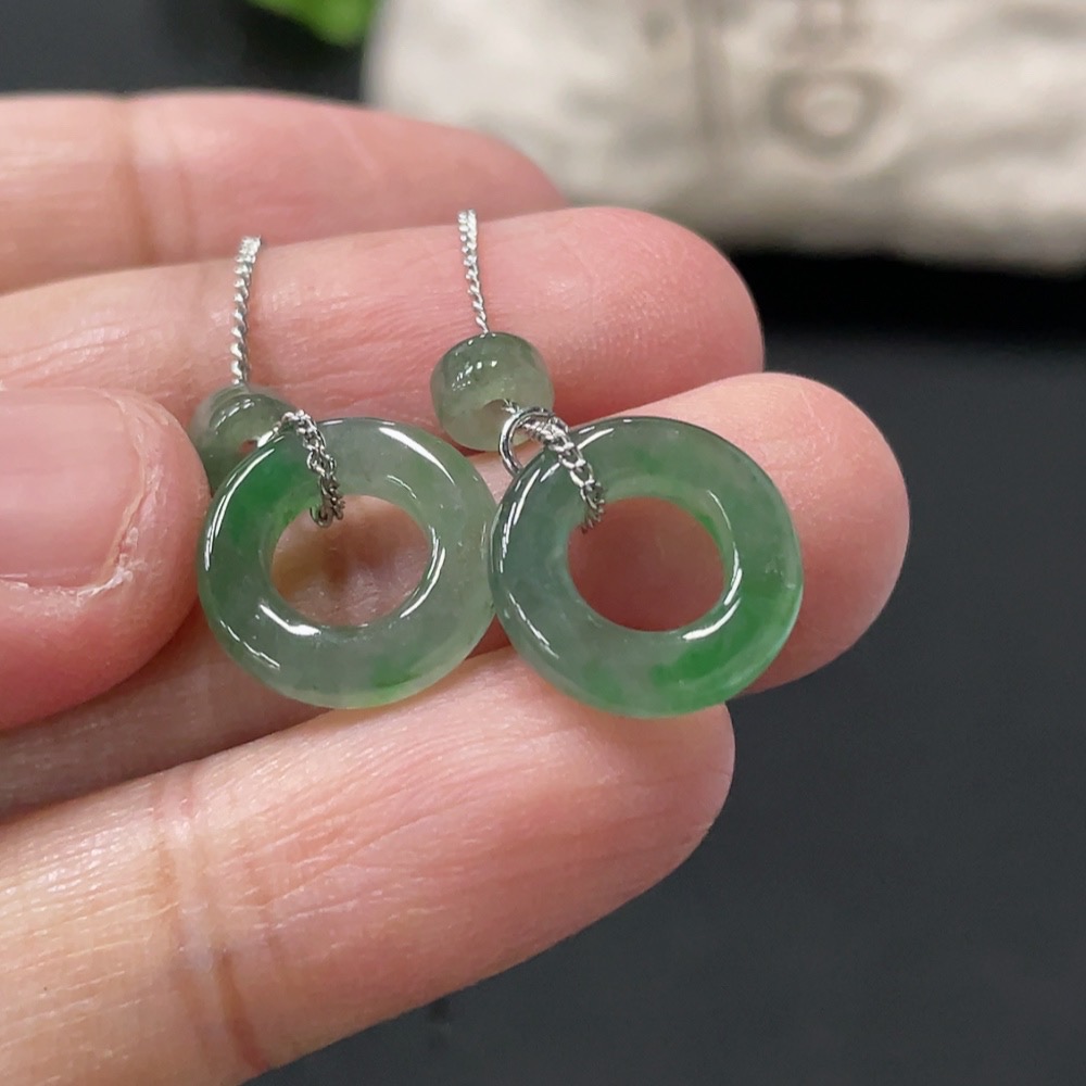 Jadeite Inlaid Earrings Non-Gold Total Weight Approx. 2.44g