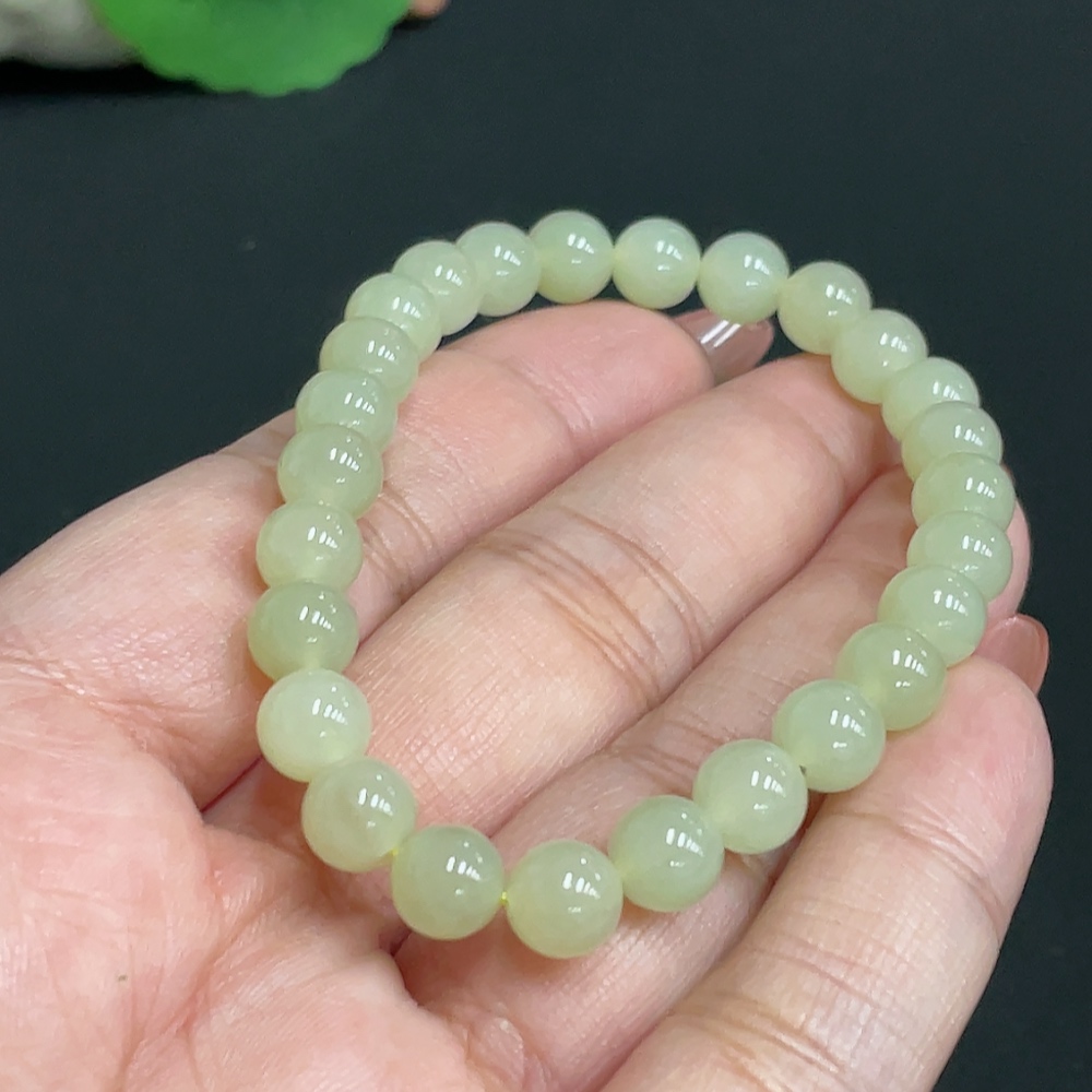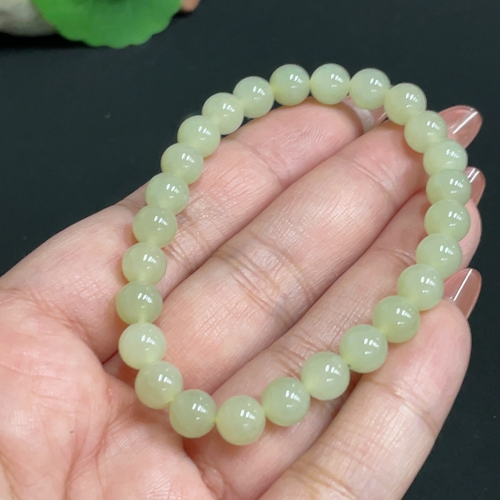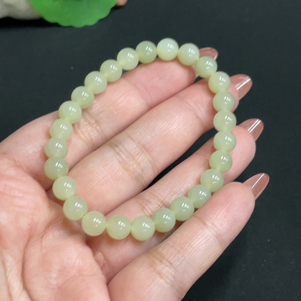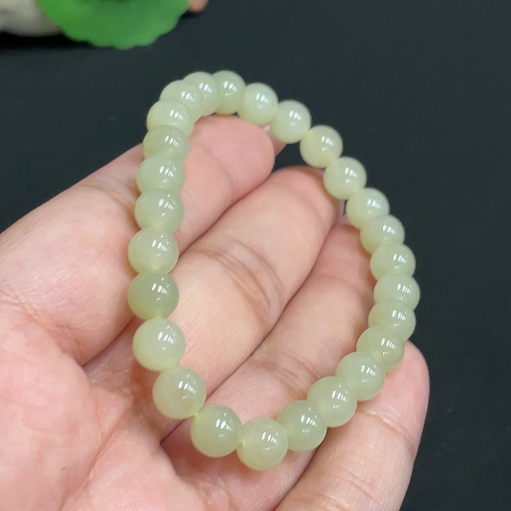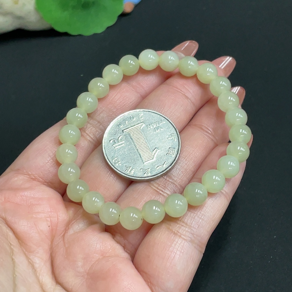 Hetian Jade Bracelet, Approx. 6.9 mm Beads, Total Weight About 13.5g