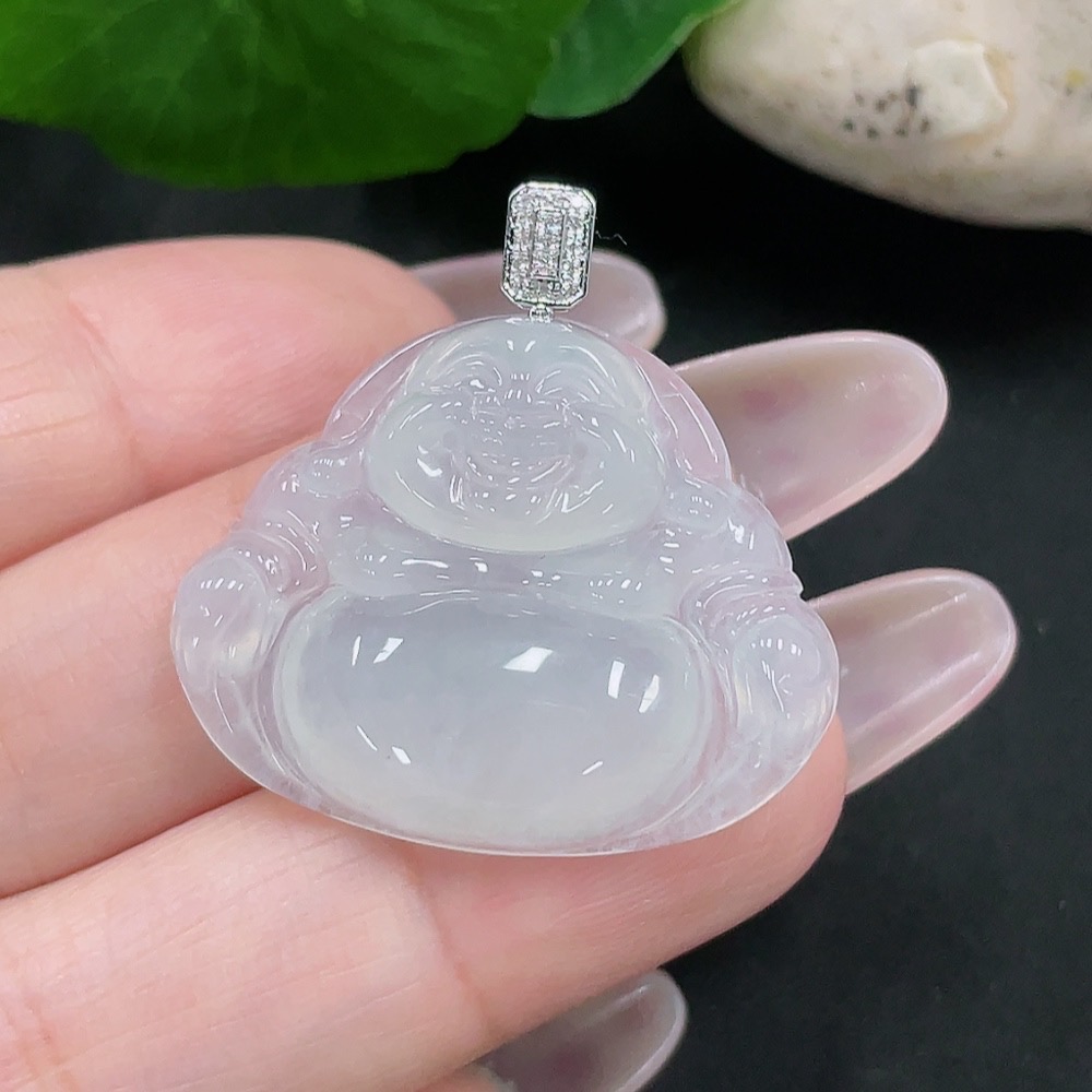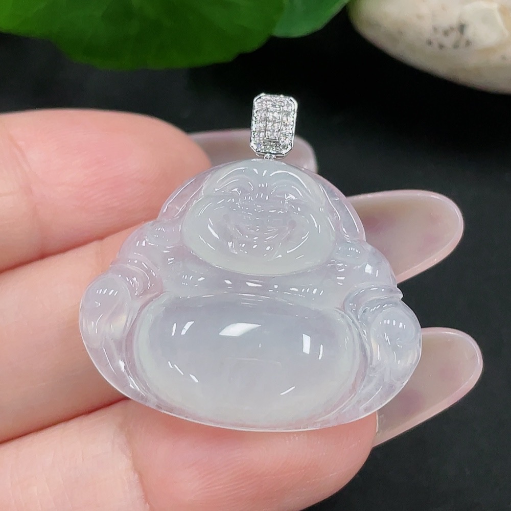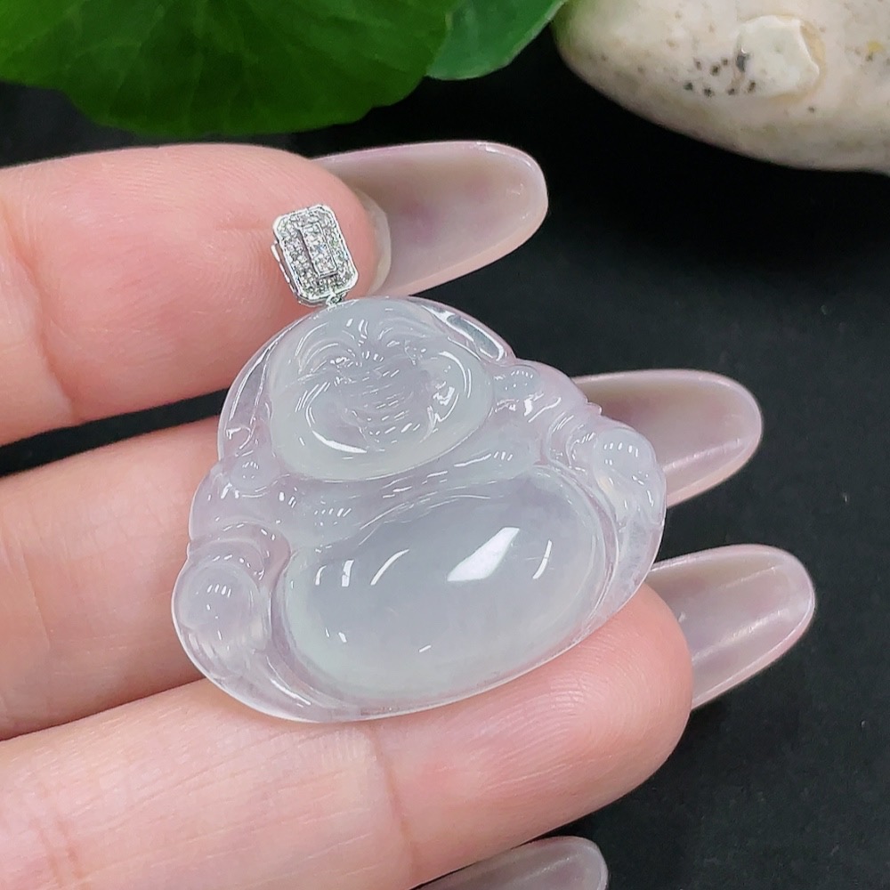 Jadeite Buddha Pendant 18K Gold Total Weight Approx. 5.7g (With Diamond Accents)