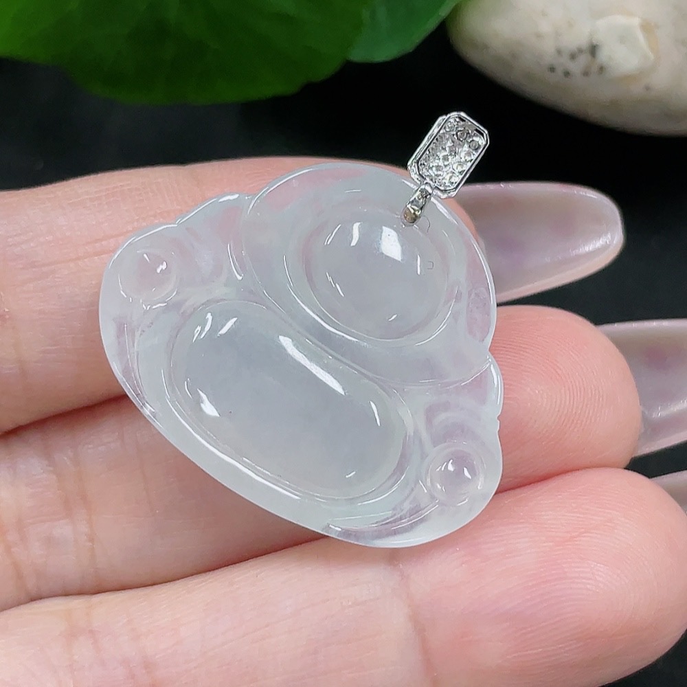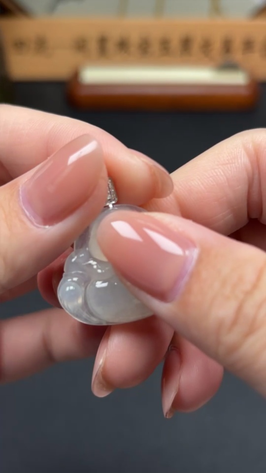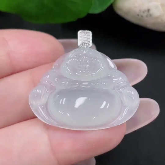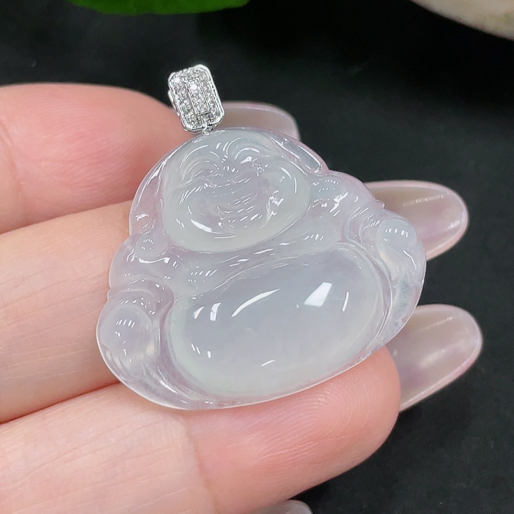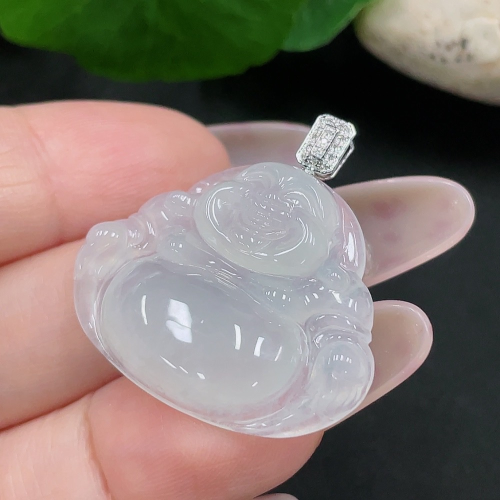 Jadeite Buddha Pendant 18K Gold Total Weight Approx. 5.7g (With Diamond Accents)