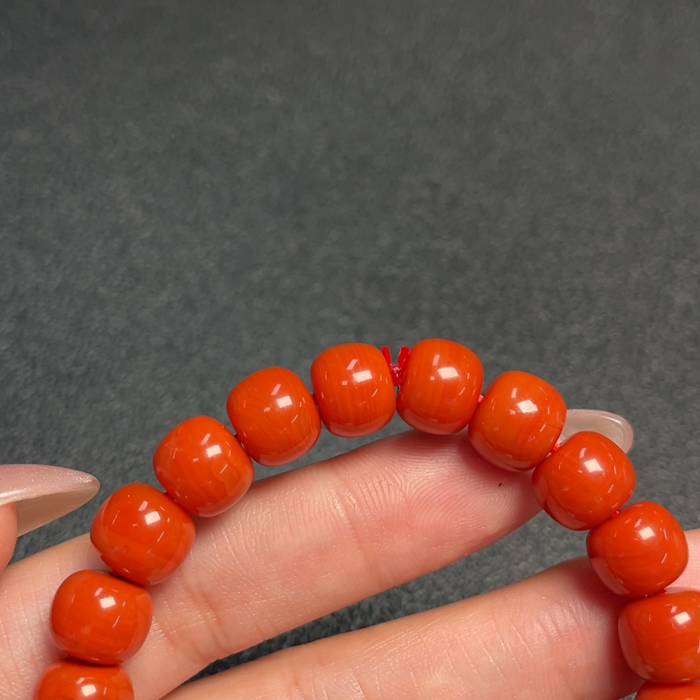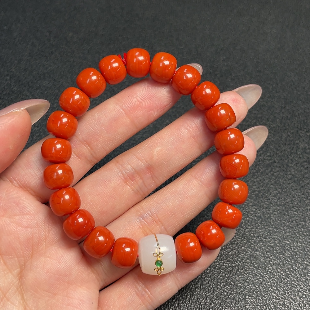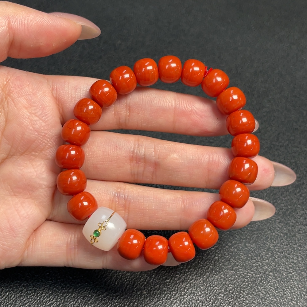 Red Agate Bracelet with Visible Organic Matter, Total Weight Approx. 29.73g, Size ~9.7mm, Paired with Hetian Jade