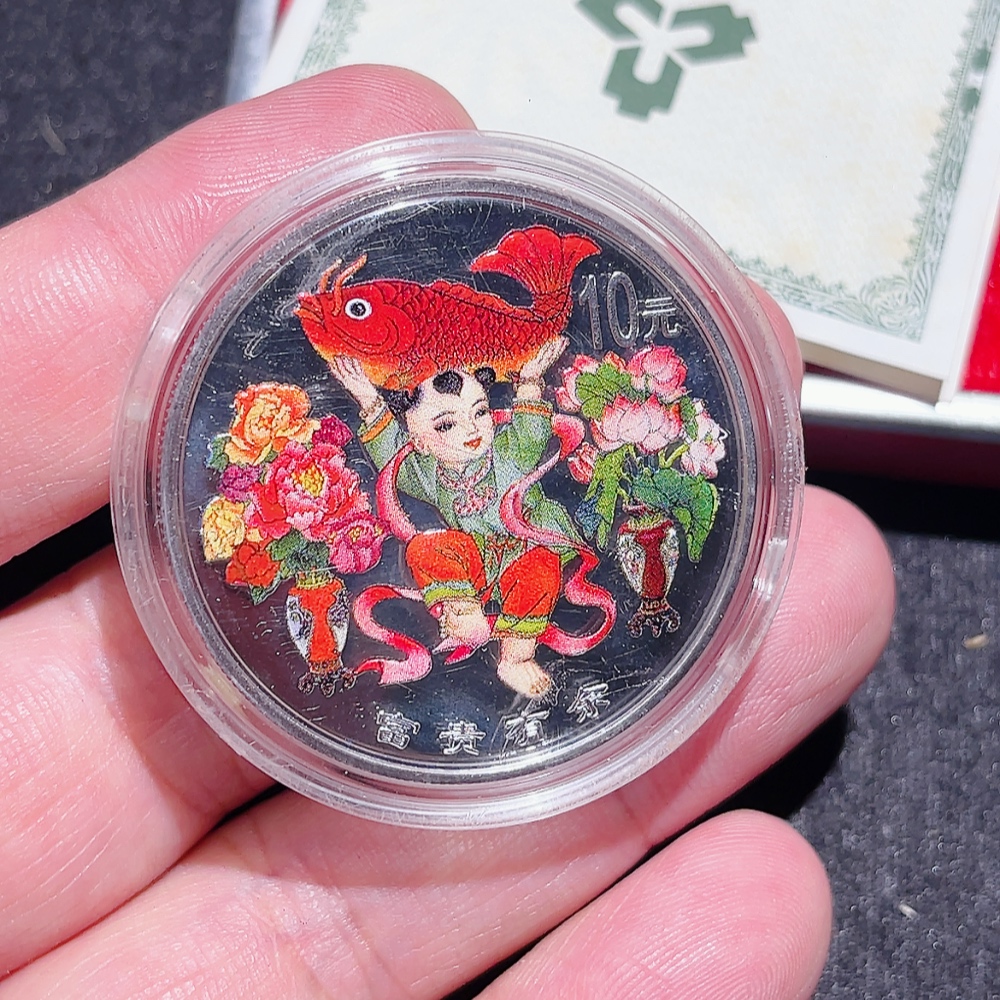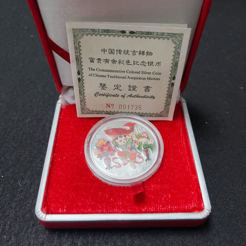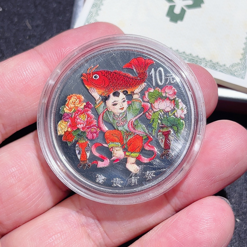 Chinese Traditional Mascot Auspicious Wealth and Abundance Colored Pure Silver Commemorative Coin