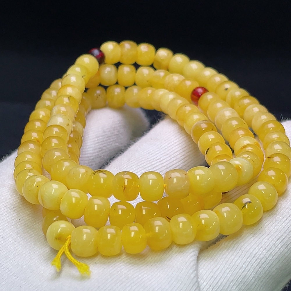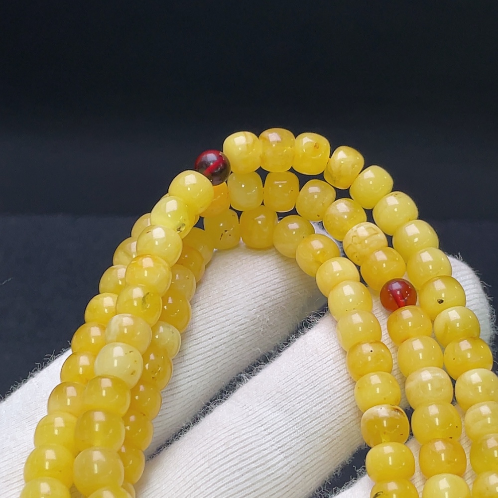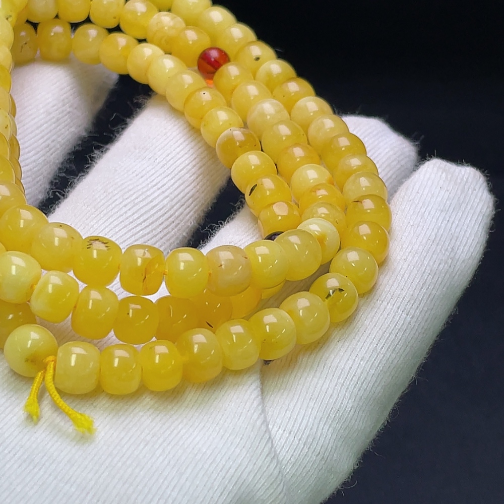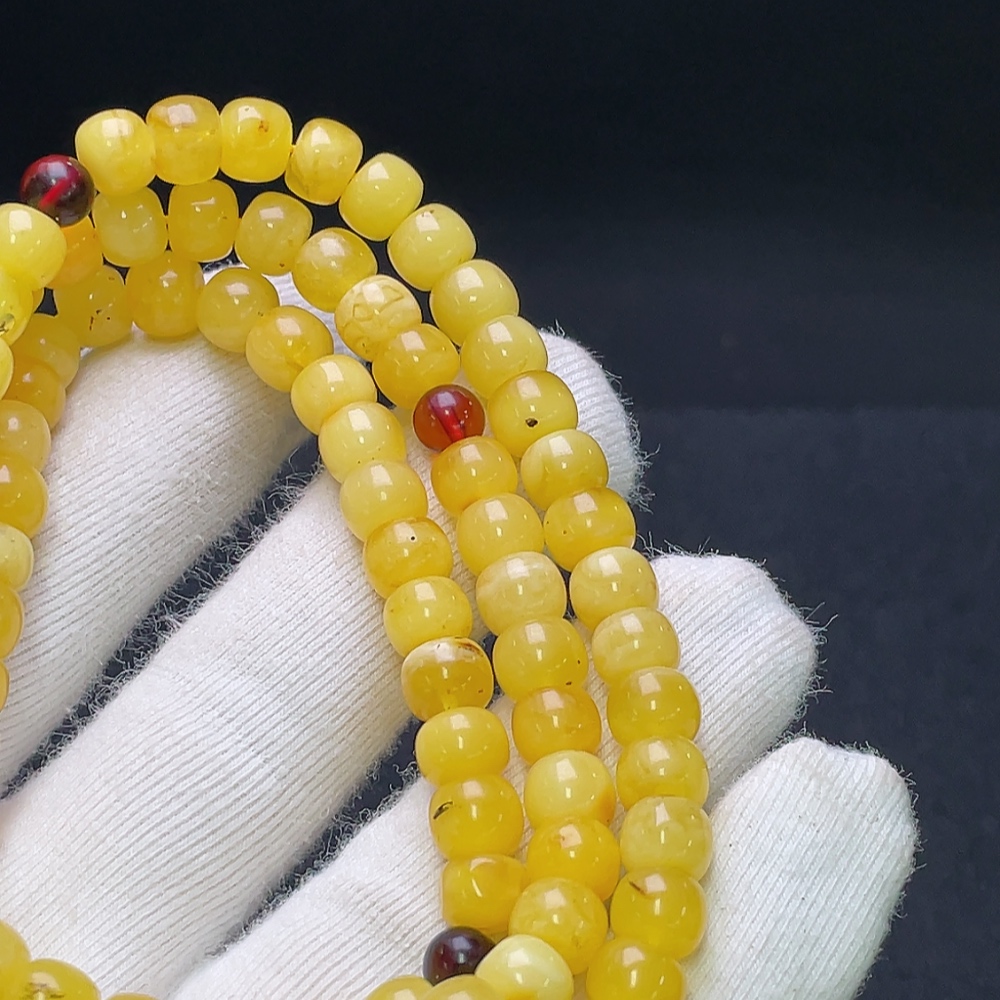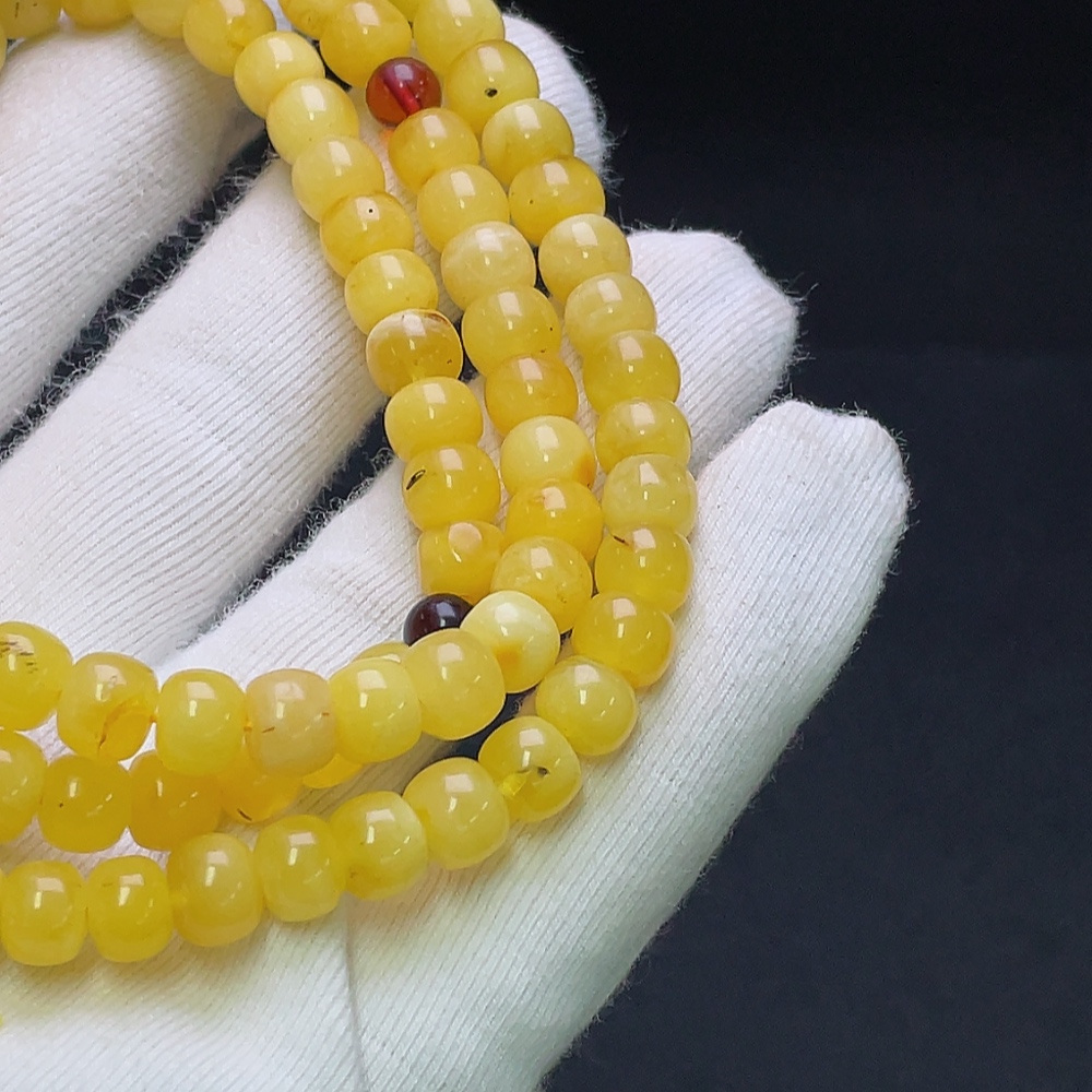 Amber Beeswax Bead Necklace, Total Weight Approx. 21.39g, Bead Size About 6.9mm