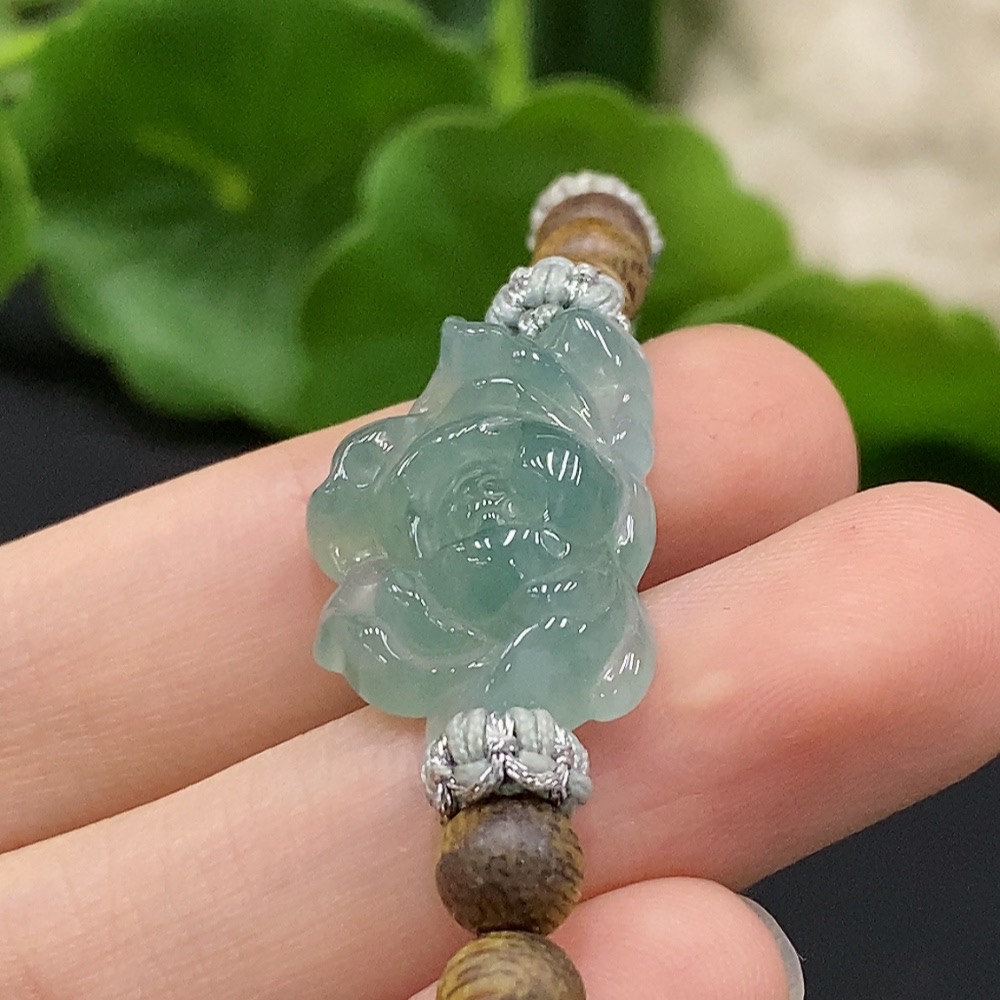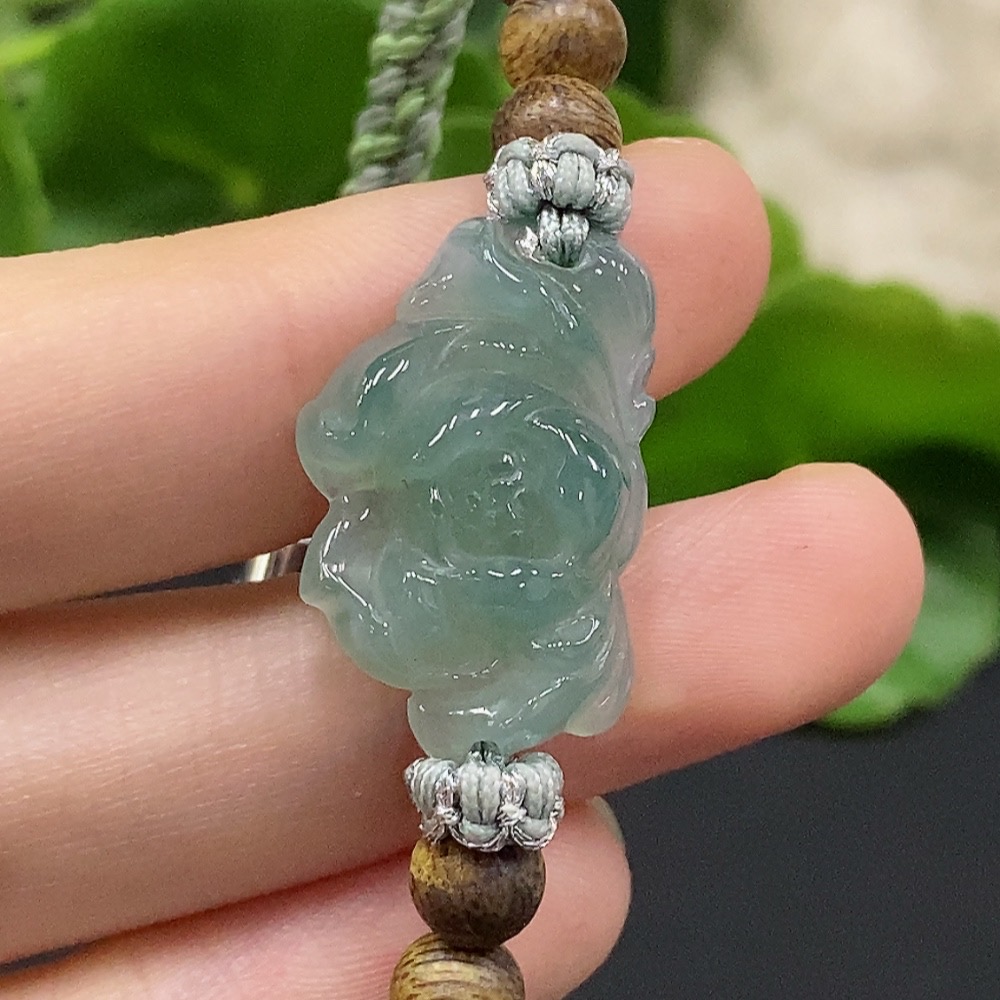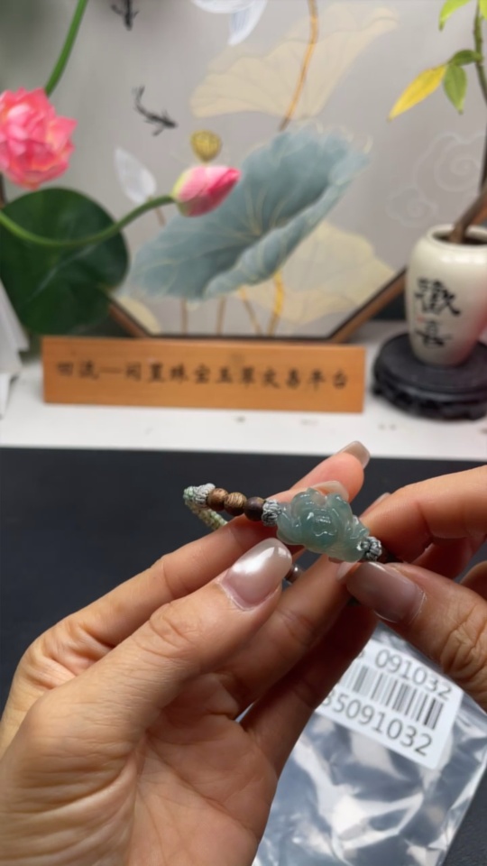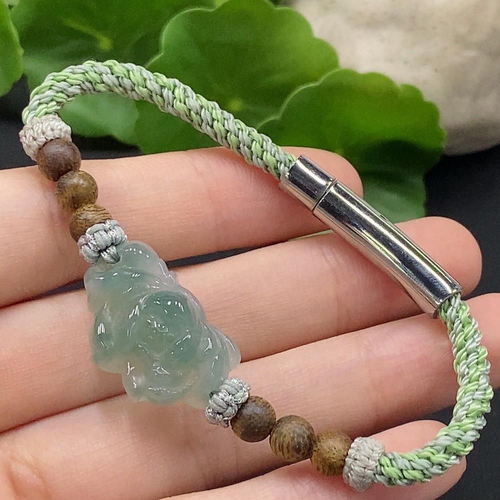 Jadeite Lotus Inlaid Hand Rope Non-Gold Inlaid Total Weight Approx. 8.2g