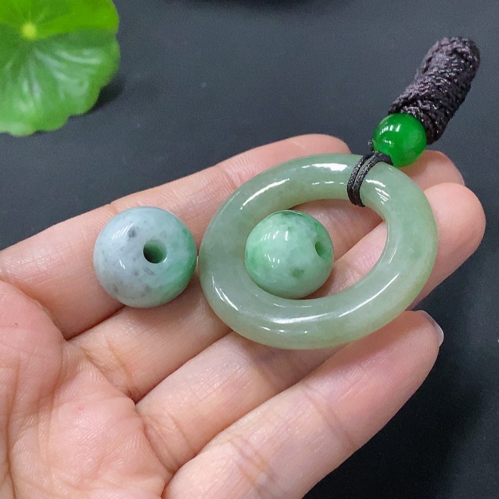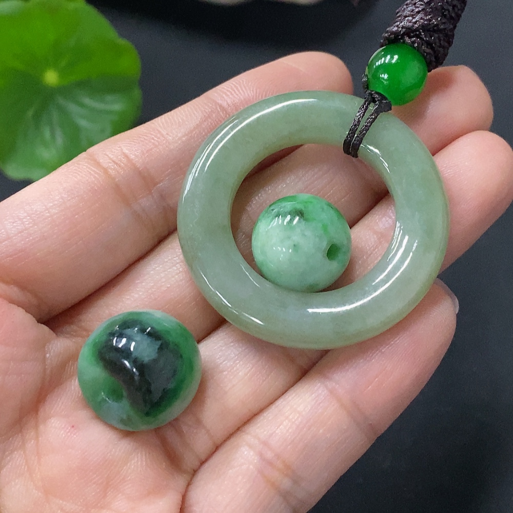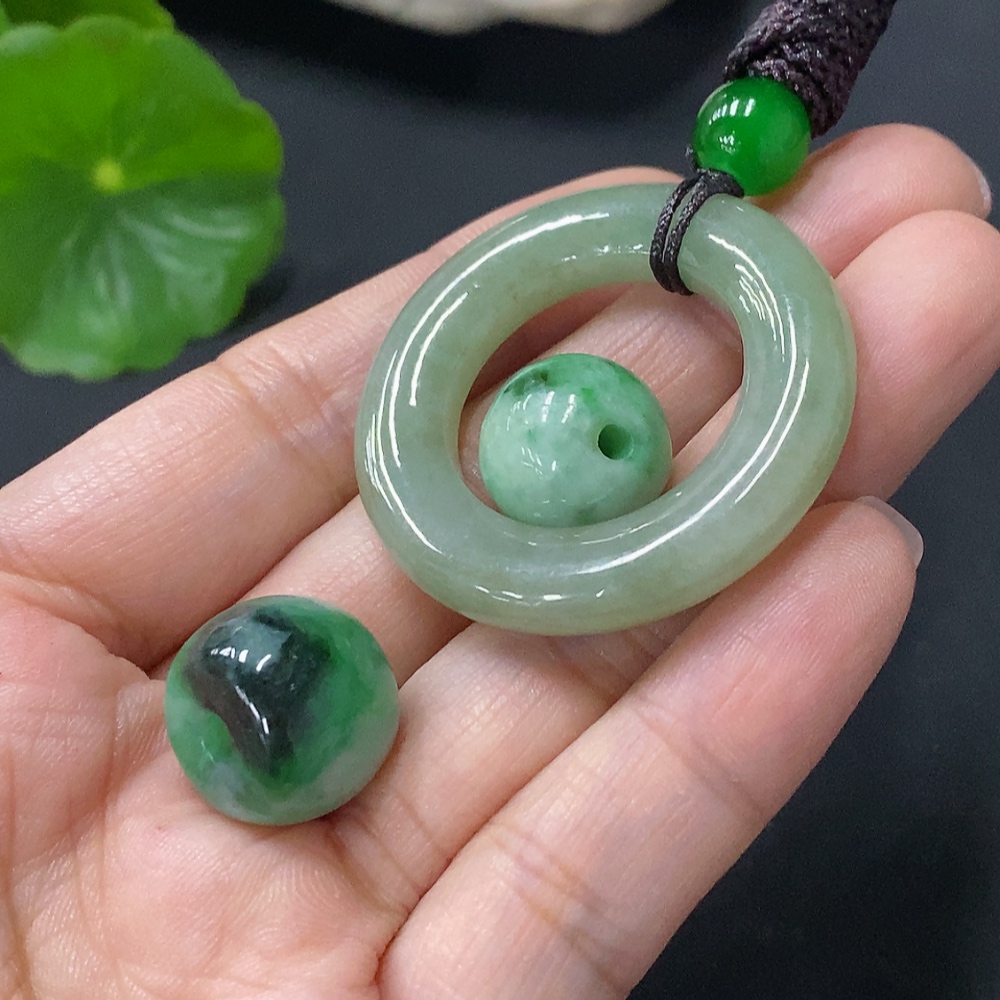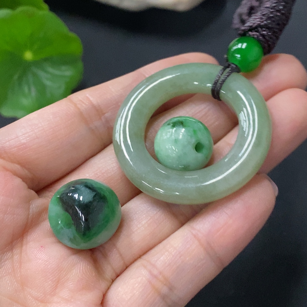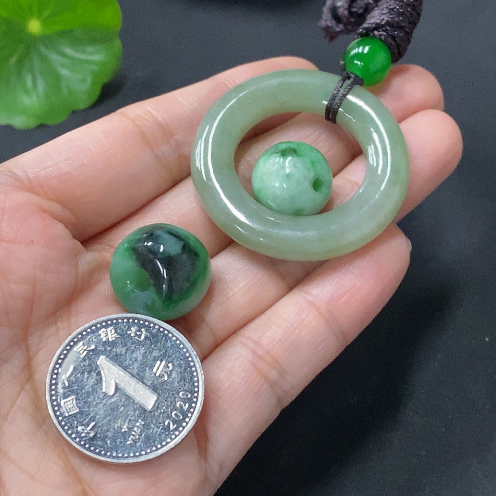 Trezaar - Jadeite Pendant Beads Sell as a Lot with Non-A Grade Beads Containing Other Mineral Components