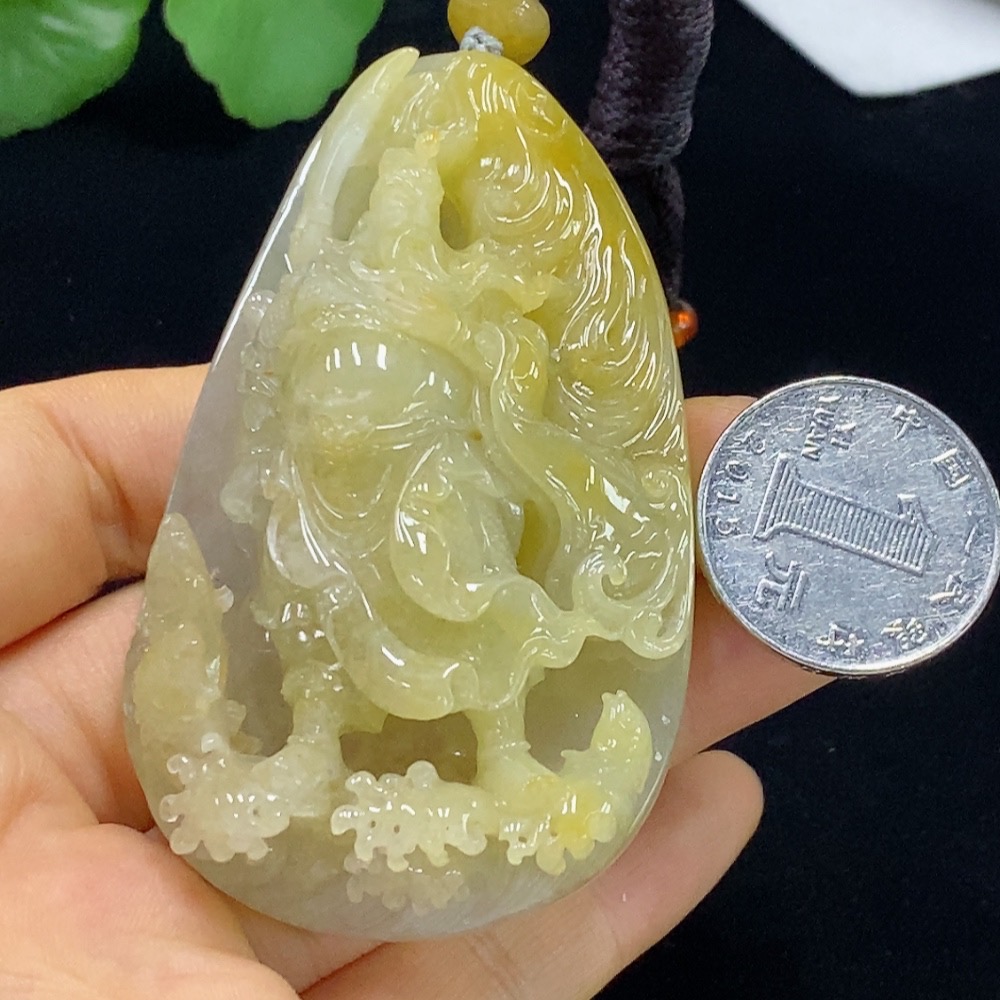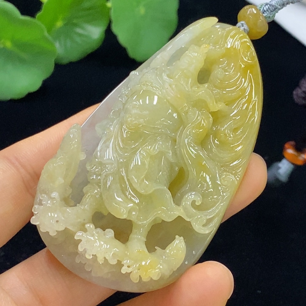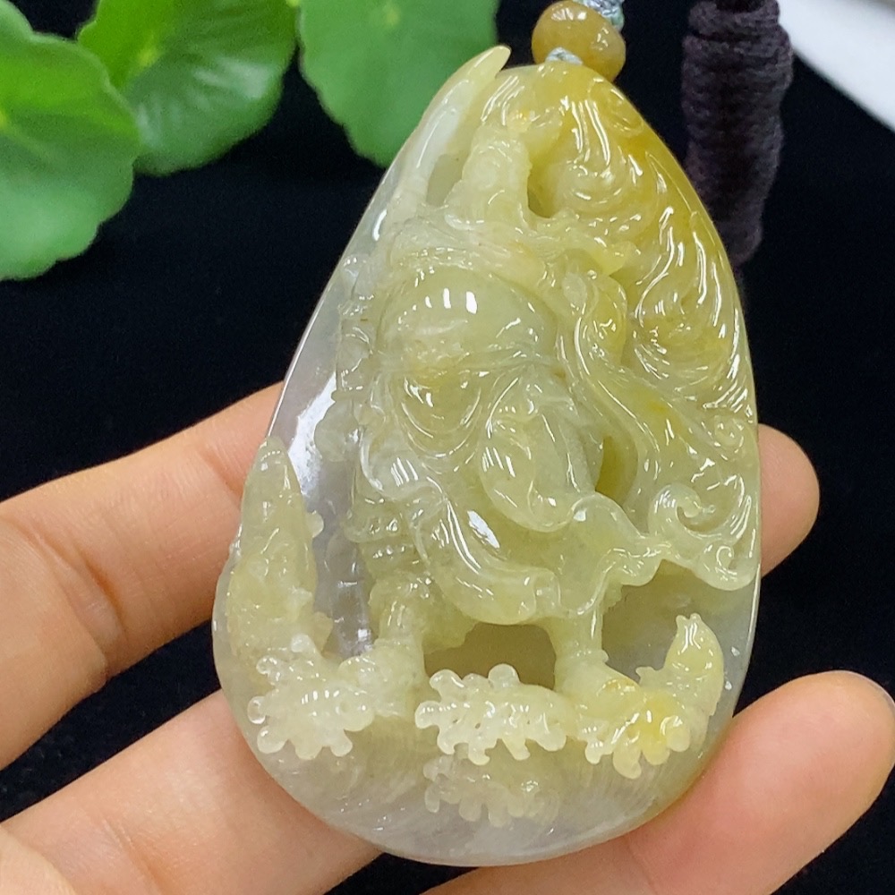 Jadeite Guan Gong Pendant Total Weight Approx. 88.63g (including rope weight)