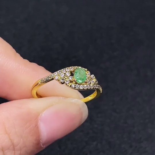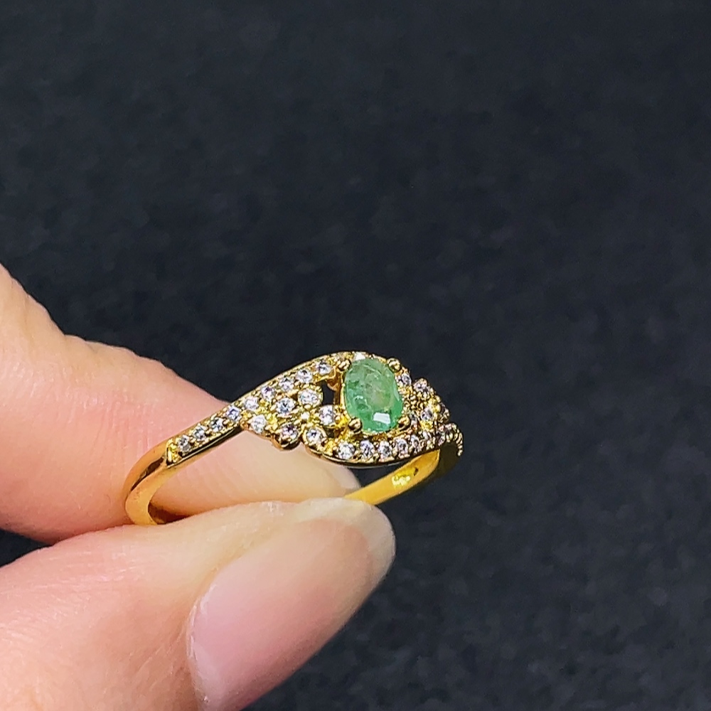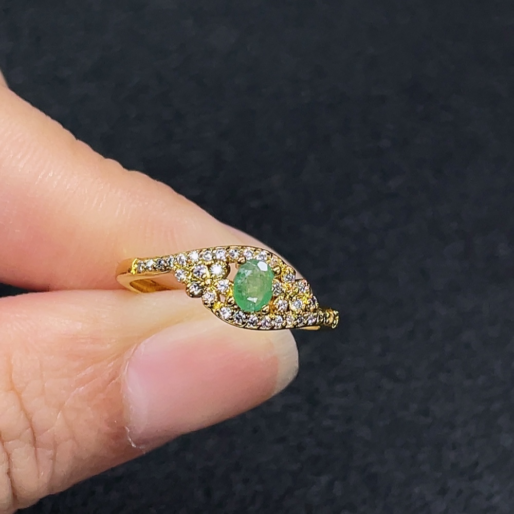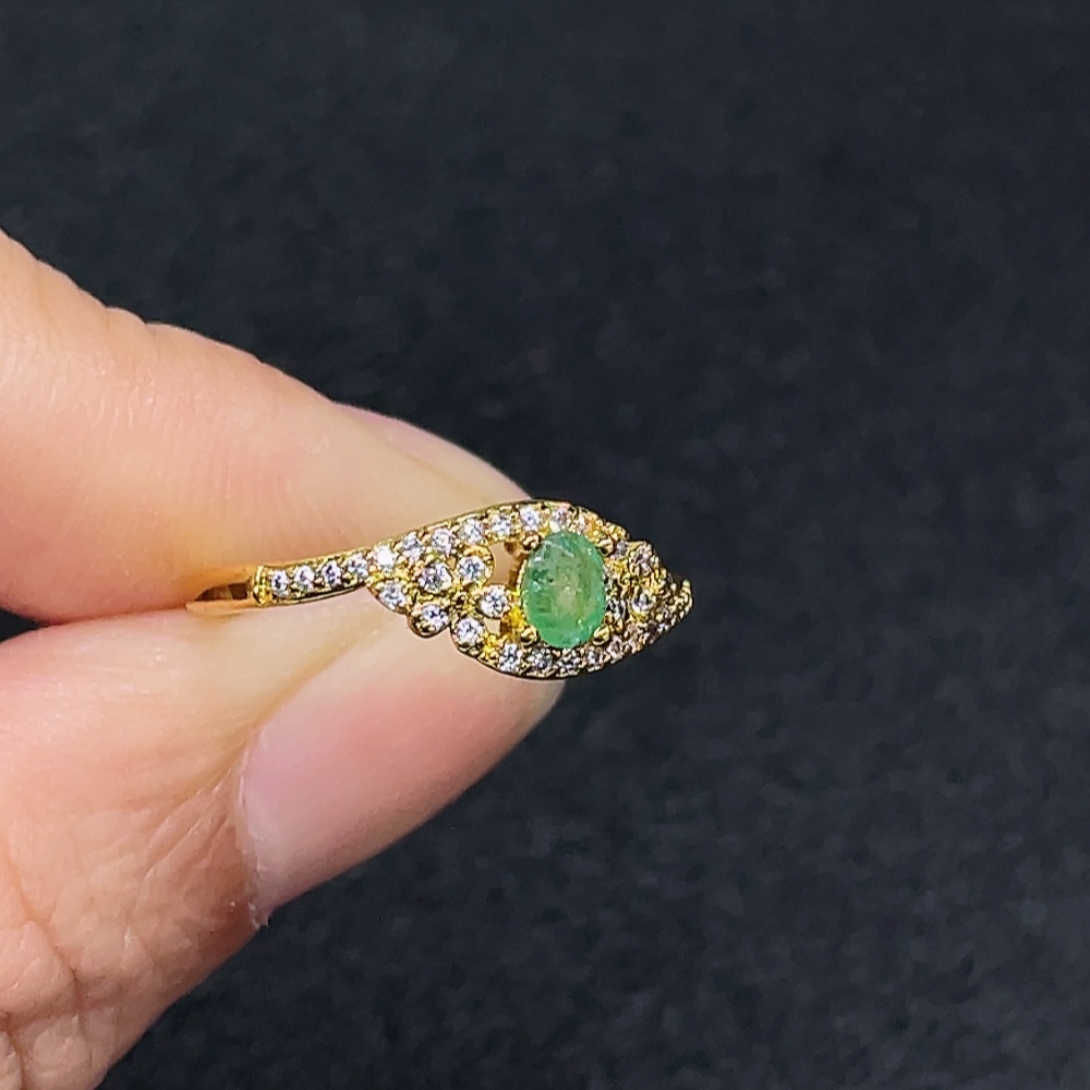 Emerald Ring, Clarity Enhanced, Non-Gold, Adjustable, Total Weight Approx. 1.23g, Size About 3.8*2.7mm