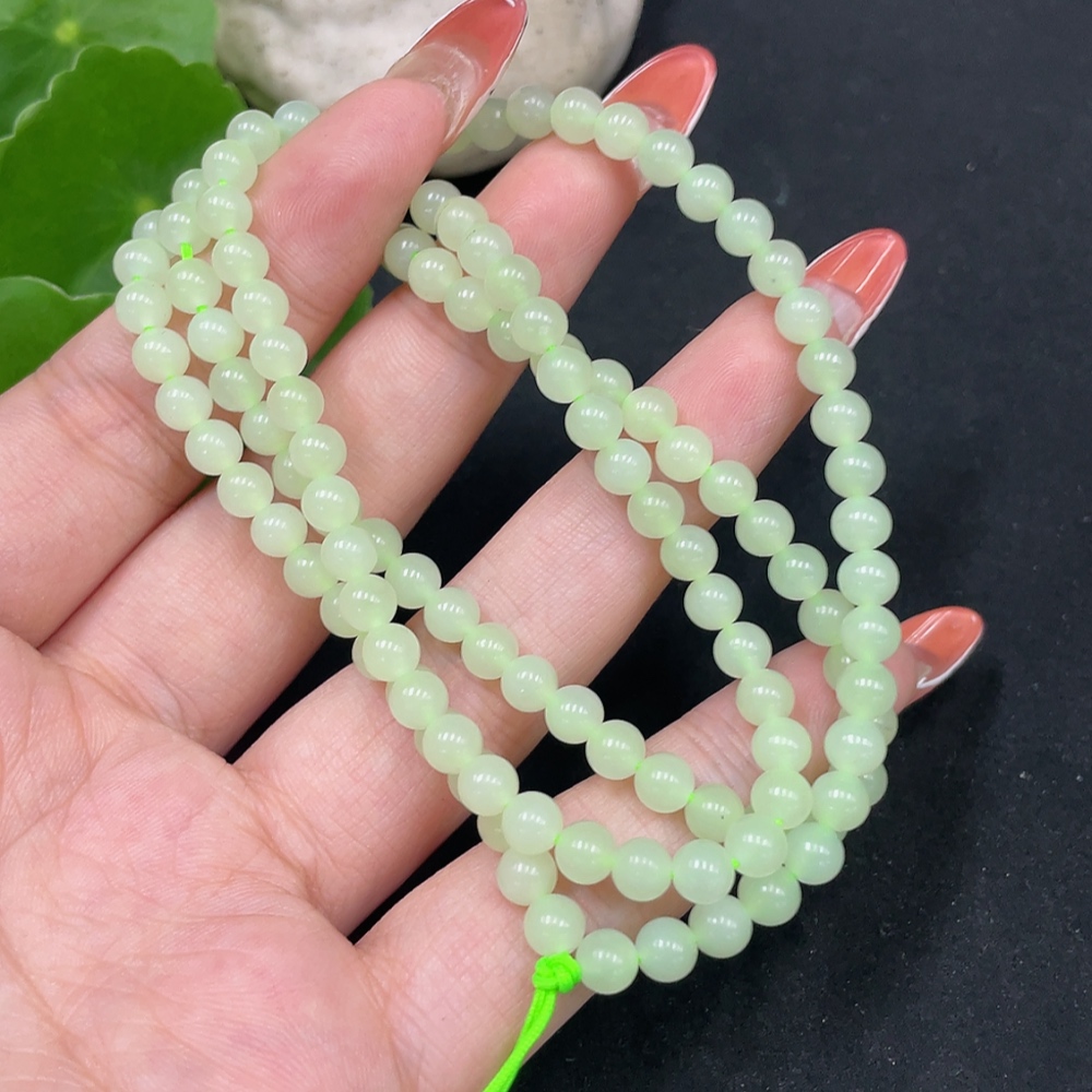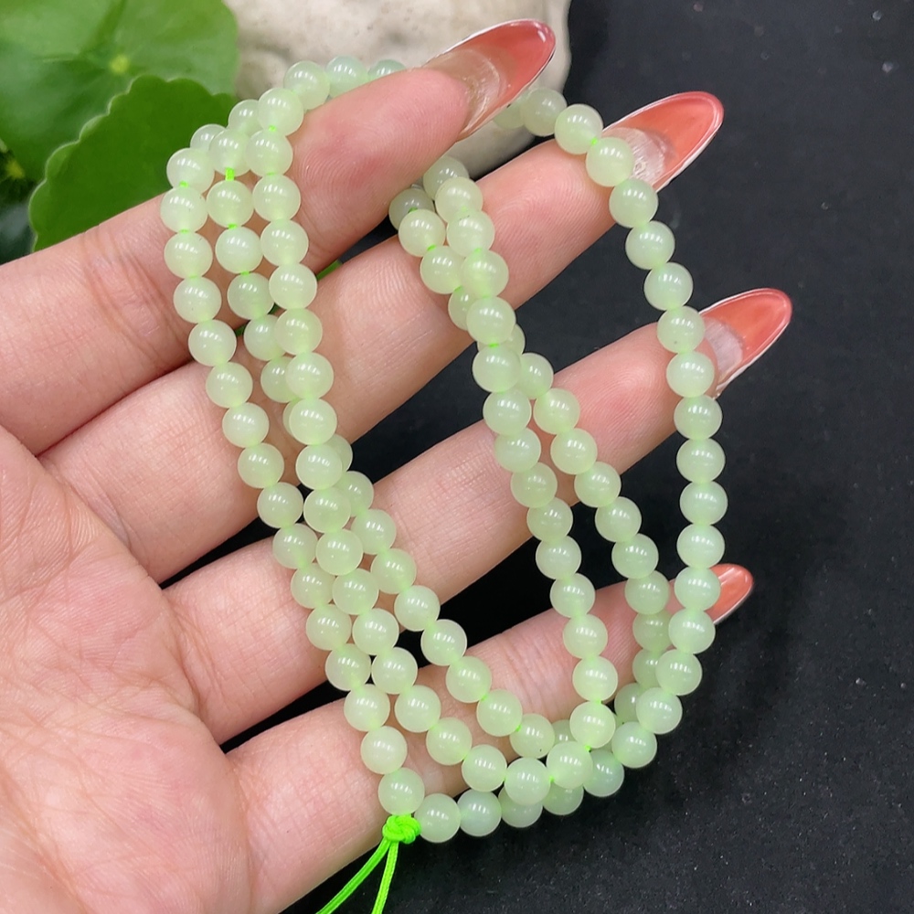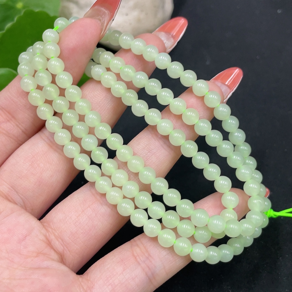 Hetian Jade Bead Necklace, Approx. 4.8mm, Total Weight Approx. 22.1g