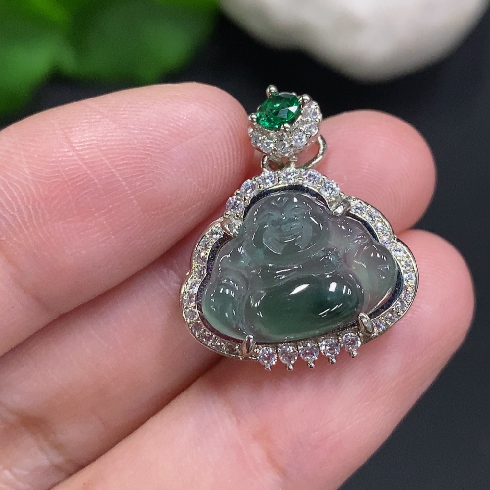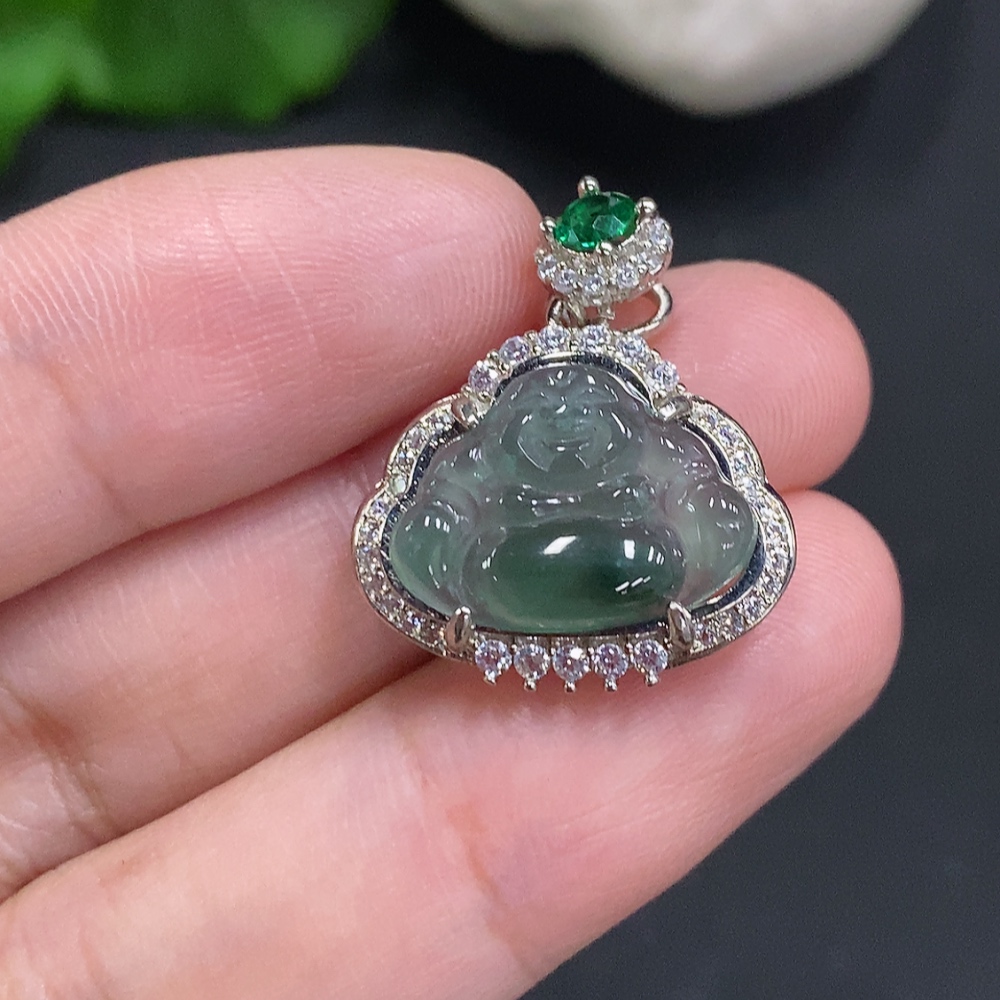 Jadeite Buddha Pendant Inlaid without Gold Total Weight About 2.4g