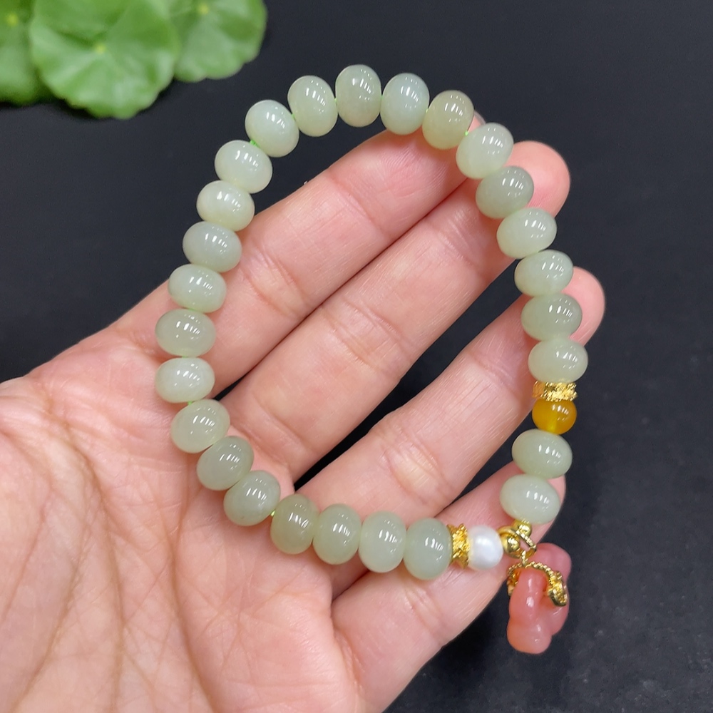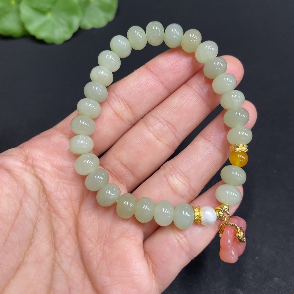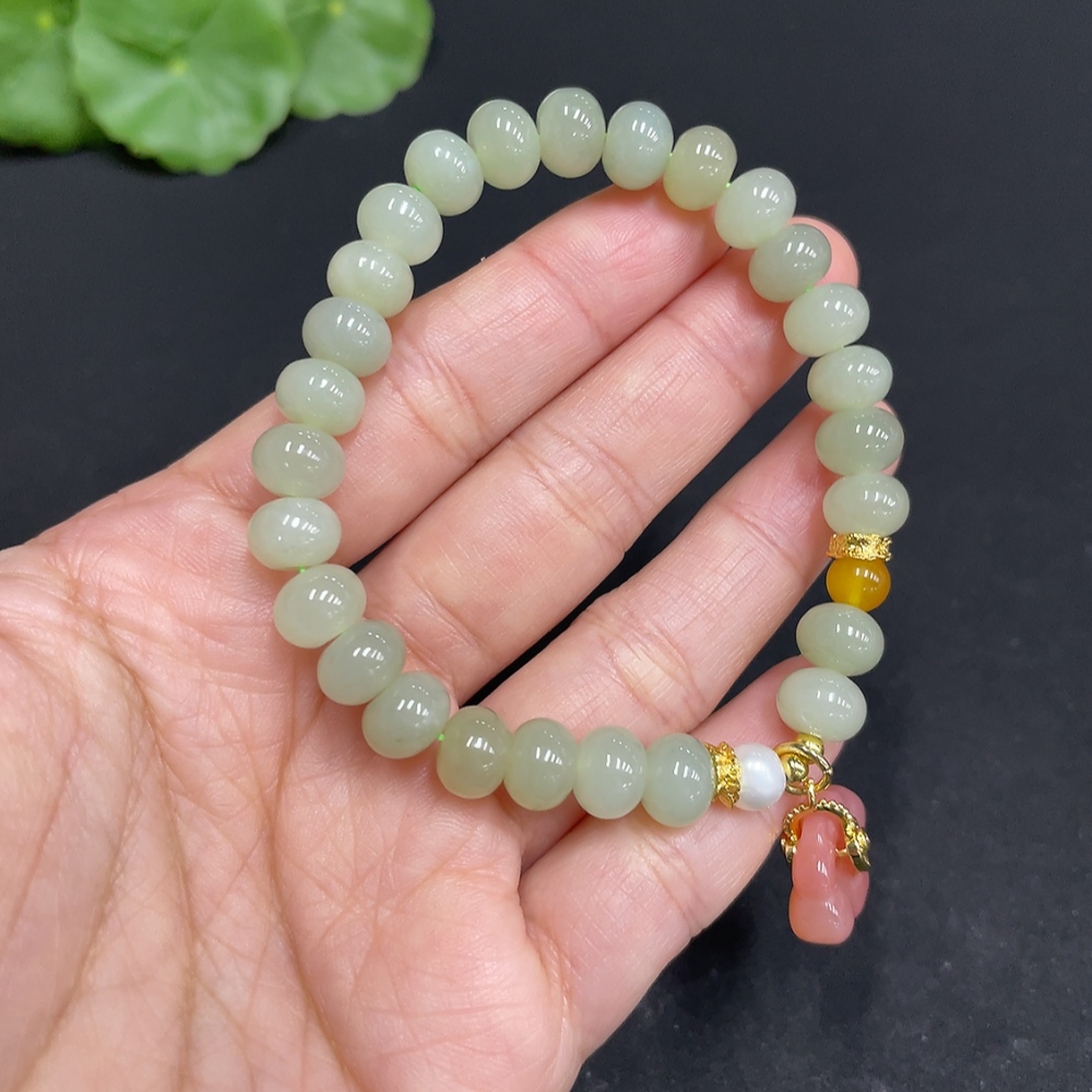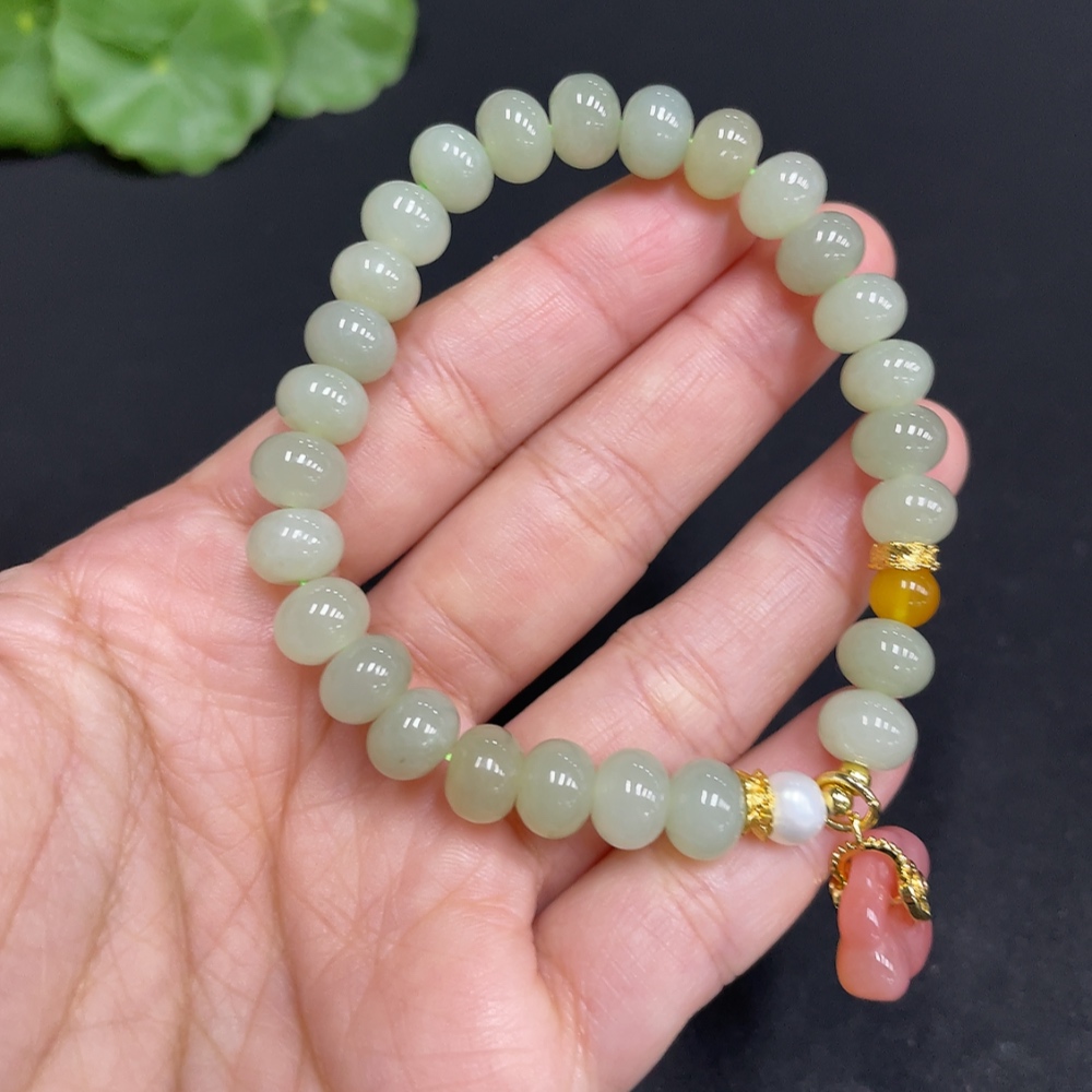 Hetian Jade Bracelet, approx. 7.8mm, non-gold inlaid, total weight approx. 19.6g, accessories non-Hetian Jade