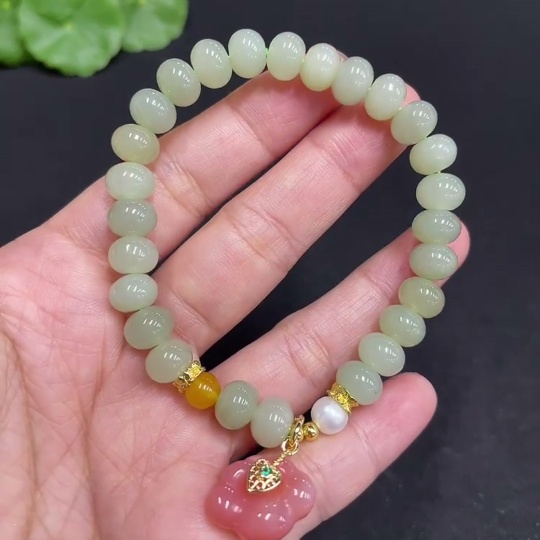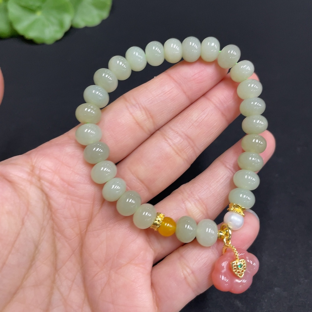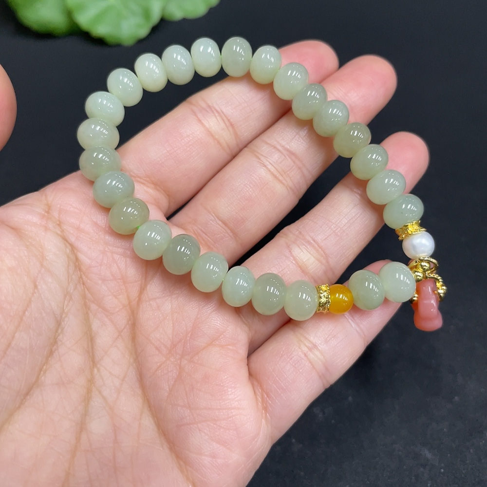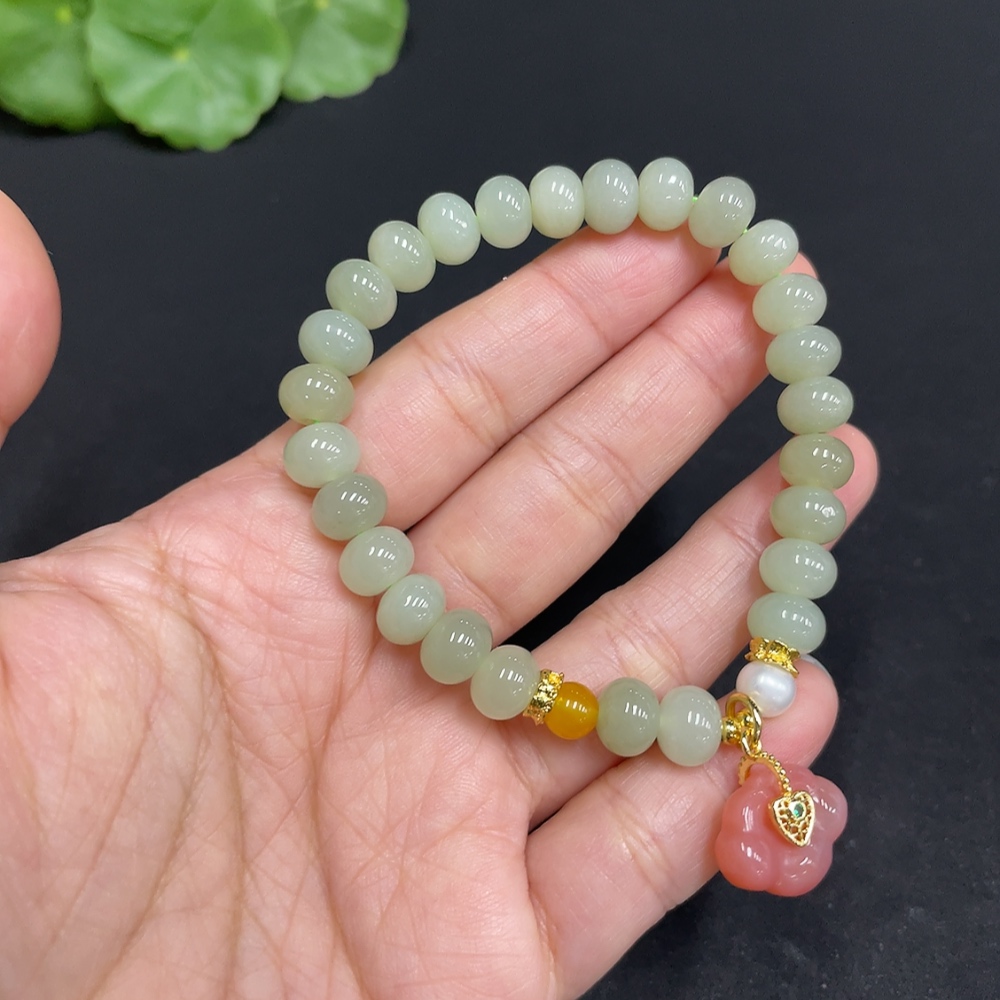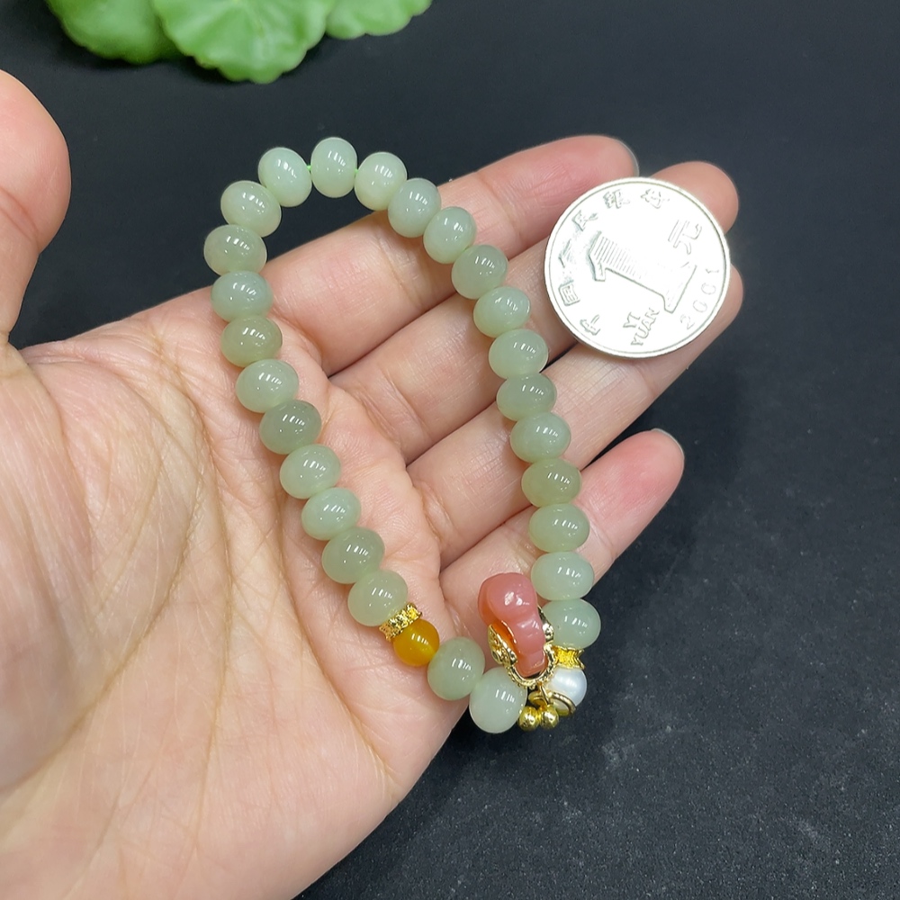 Hetian Jade Bracelet, approx. 7.8mm, non-gold inlaid, total weight approx. 19.6g, accessories non-Hetian Jade