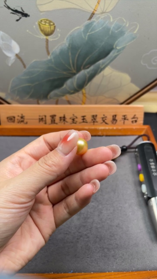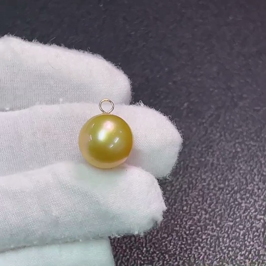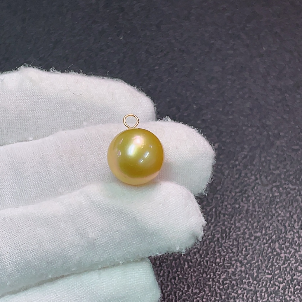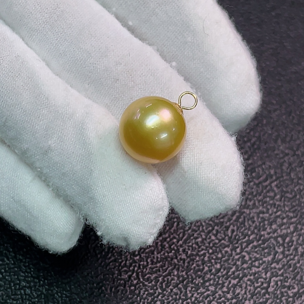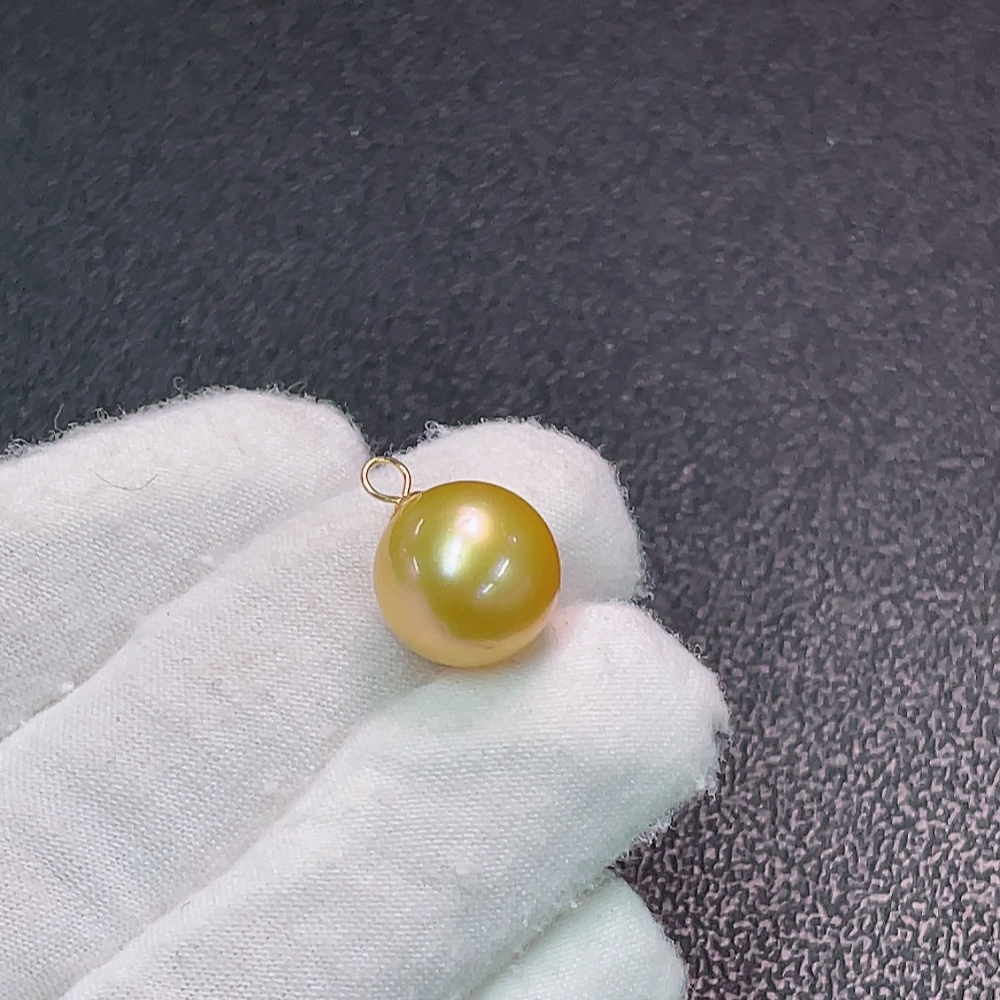 Seawater pearl pendant, color origin undetermined, no imprint, gold content tested at 64%, total weight approximately 3g, size around 12.6mm
