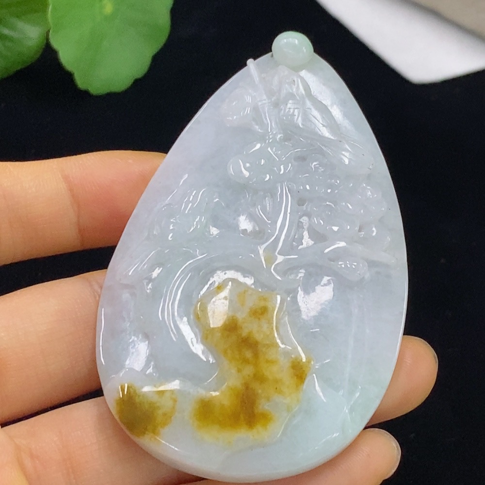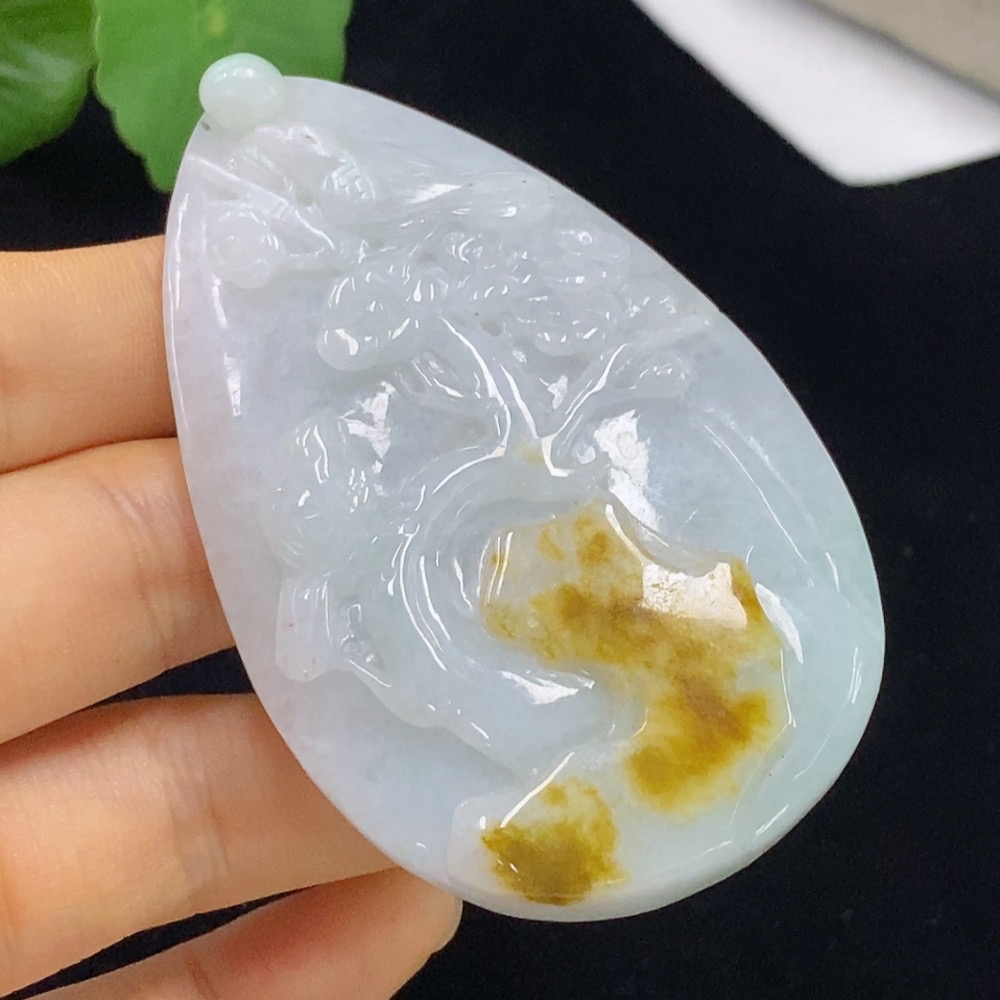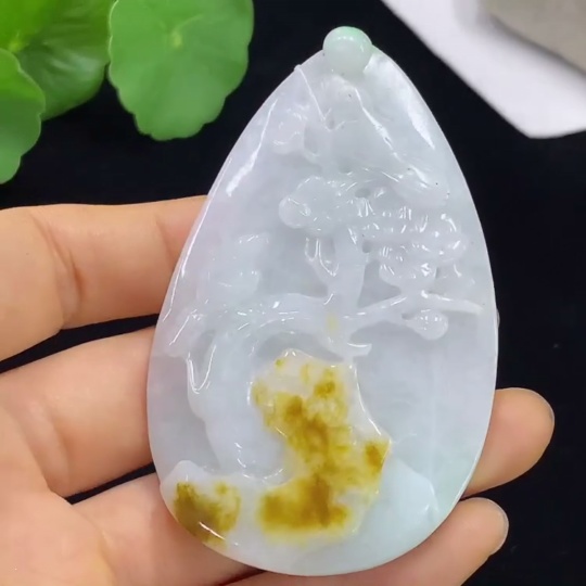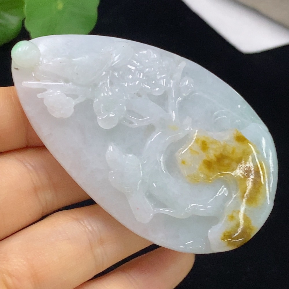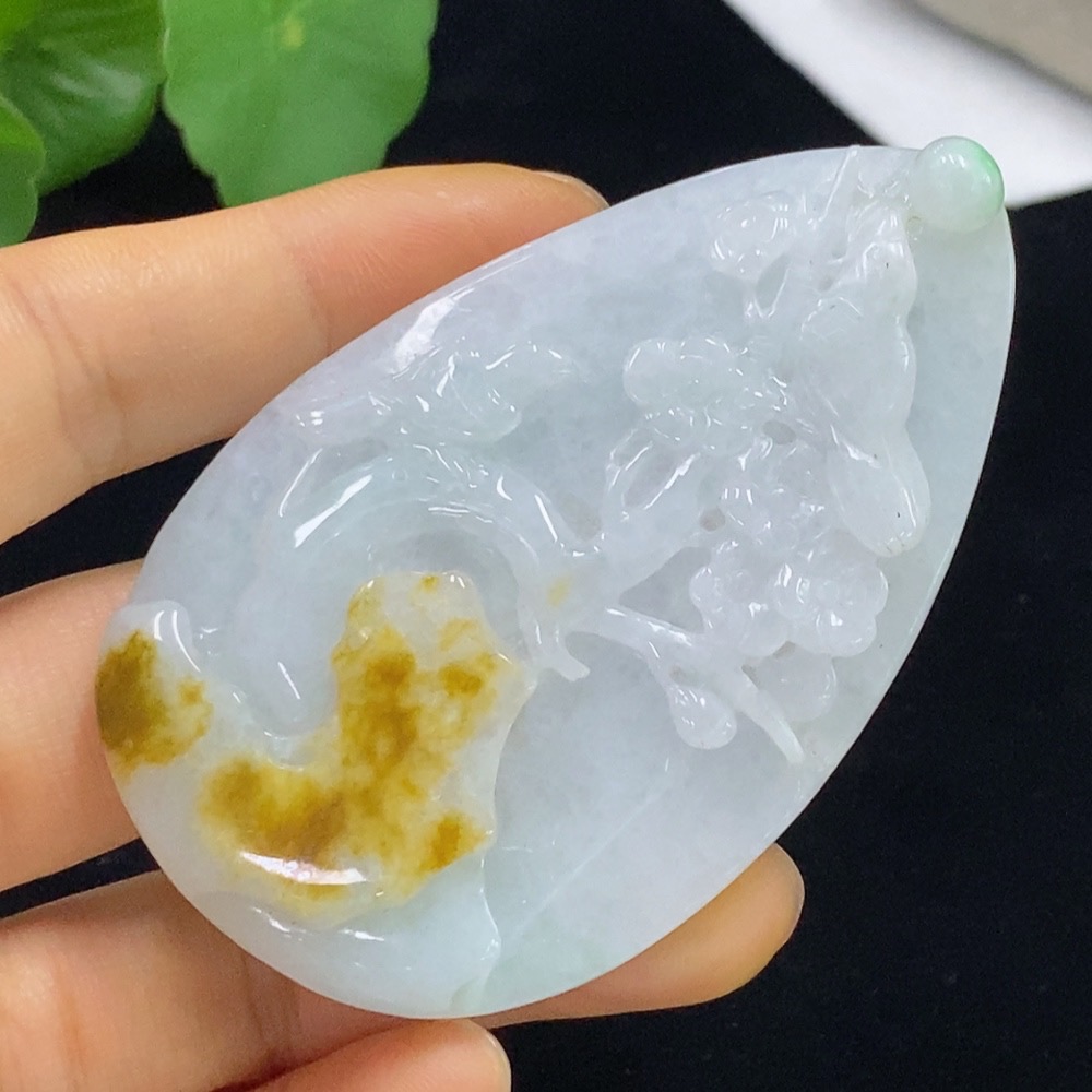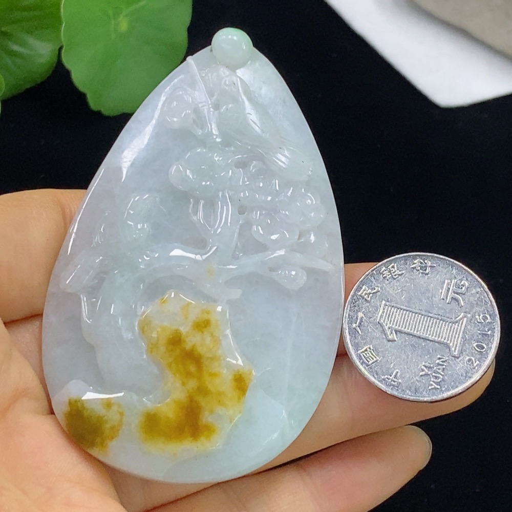 Jadeite Magpie on Plum Branch Pendant, Total Weight Approx. 68.55g