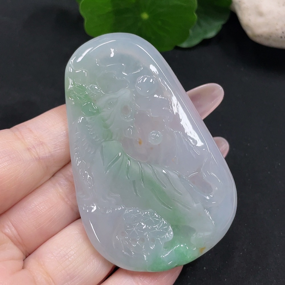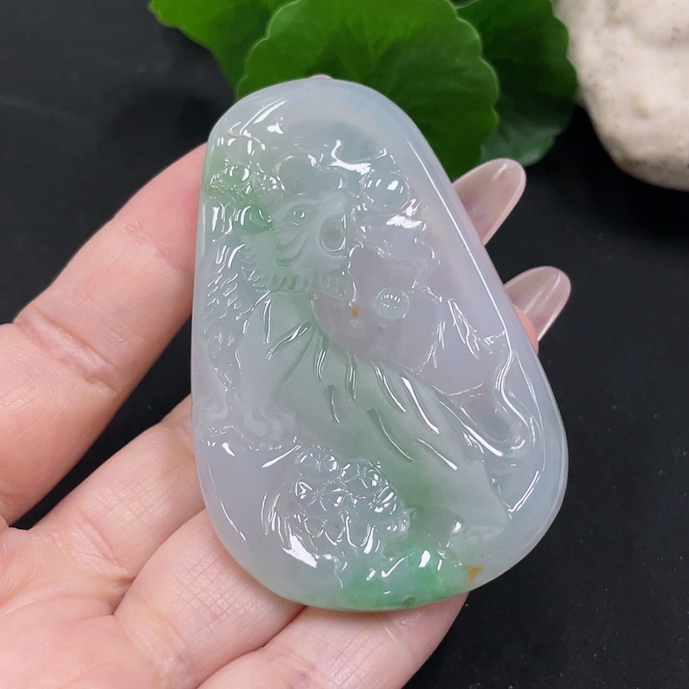 Jadeite Tiger Climbing Mountain Pendant with Total Weight Approx. 34.2g