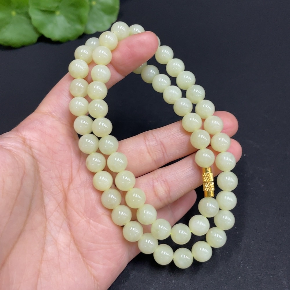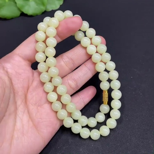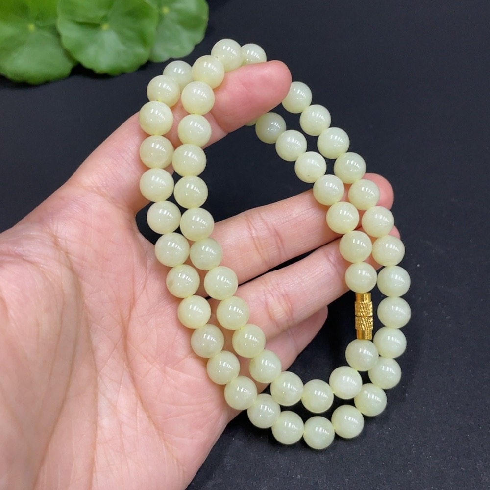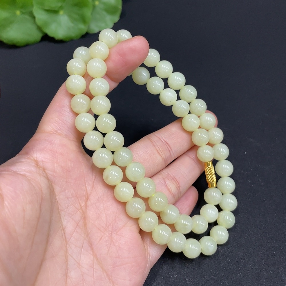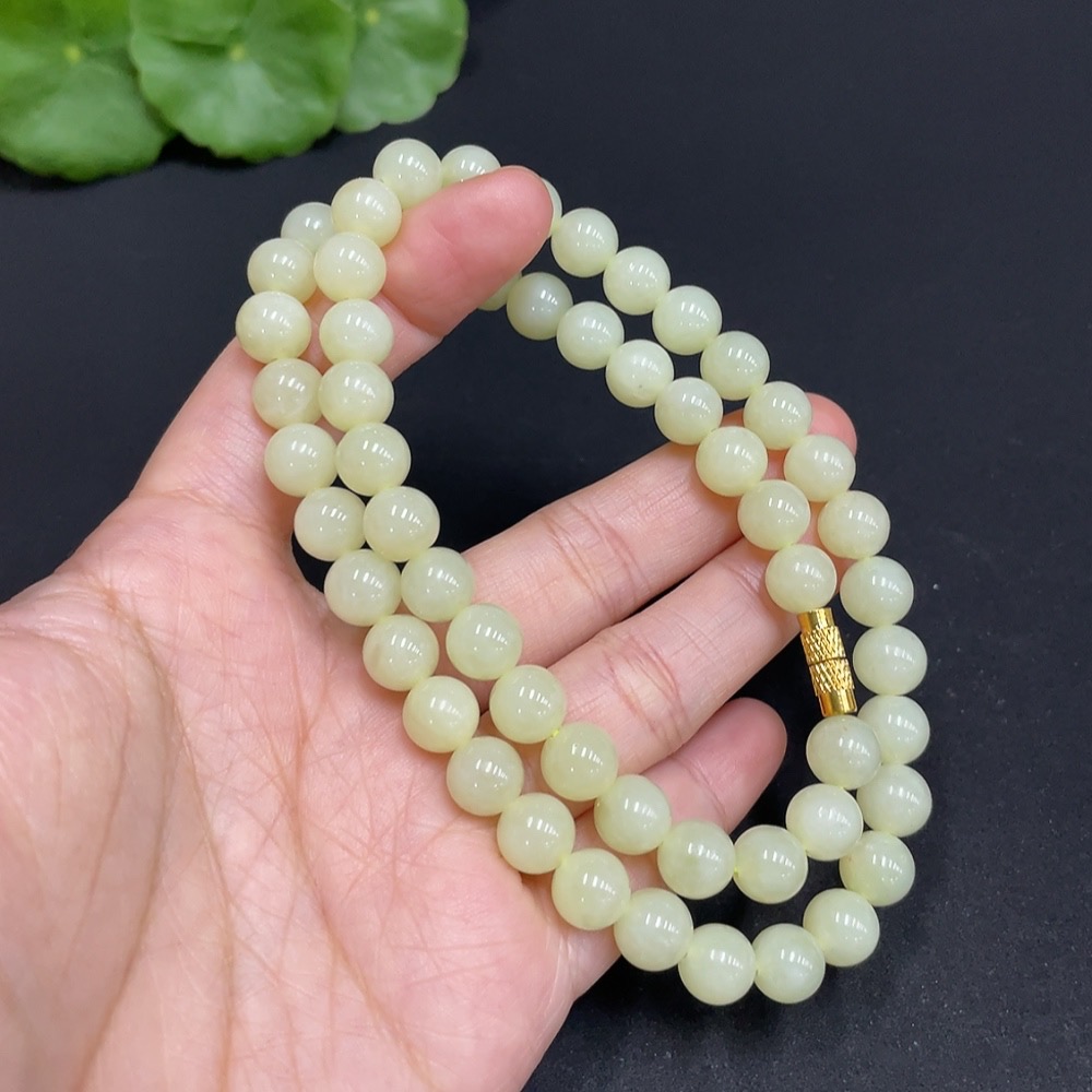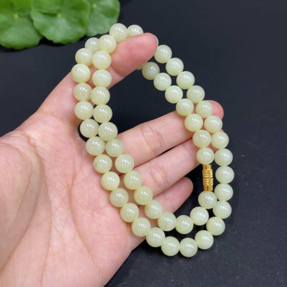 Hetian Jade Bead Necklace, Approx. 7.7mm, Total Weight Approx. 43.3g, Non-Gold