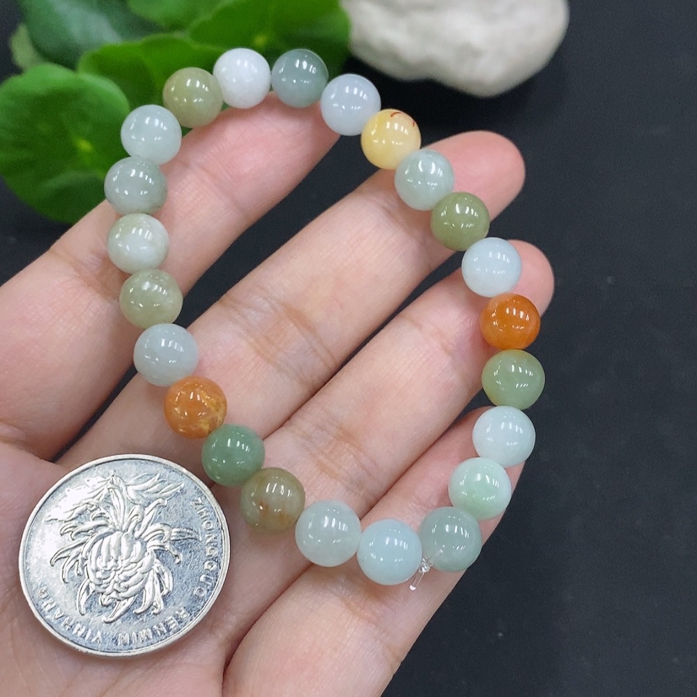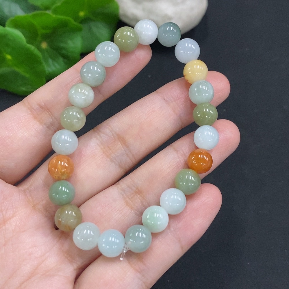 Jadeite bracelet, total weight approx. 18.5g, 7.7mm beads, non-jadeite accessory beads, with impurities