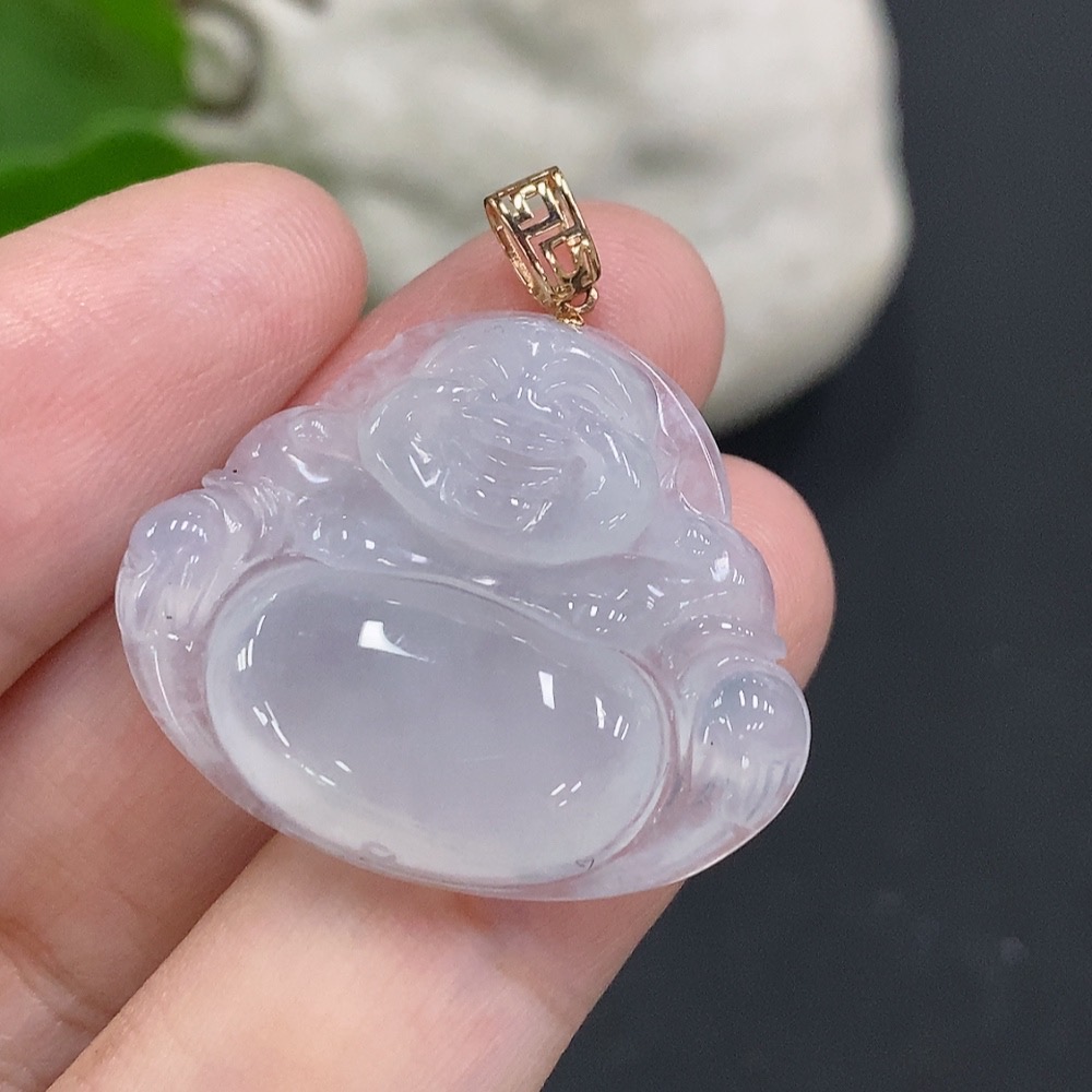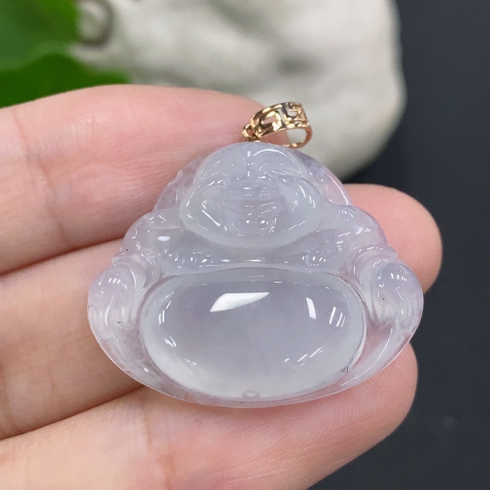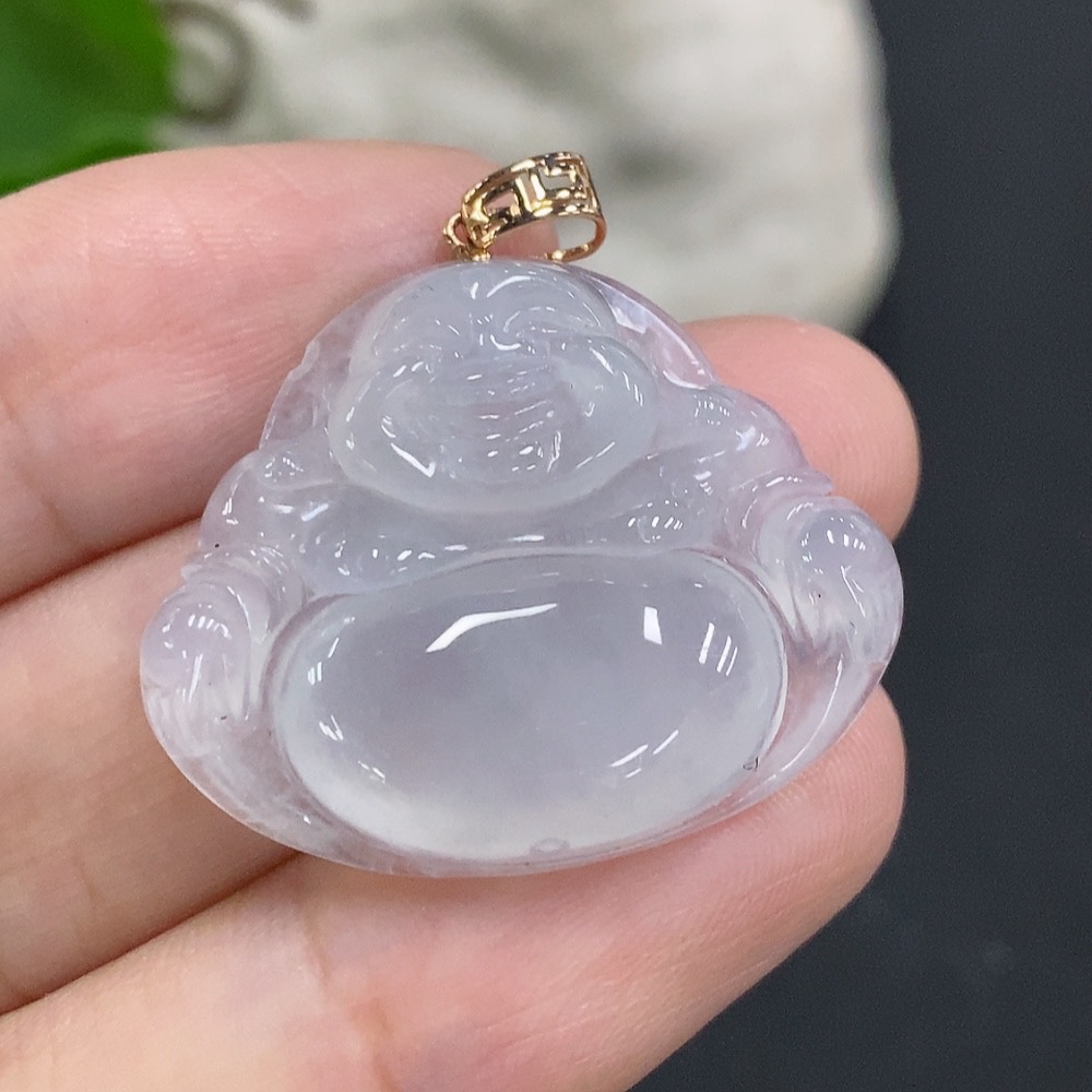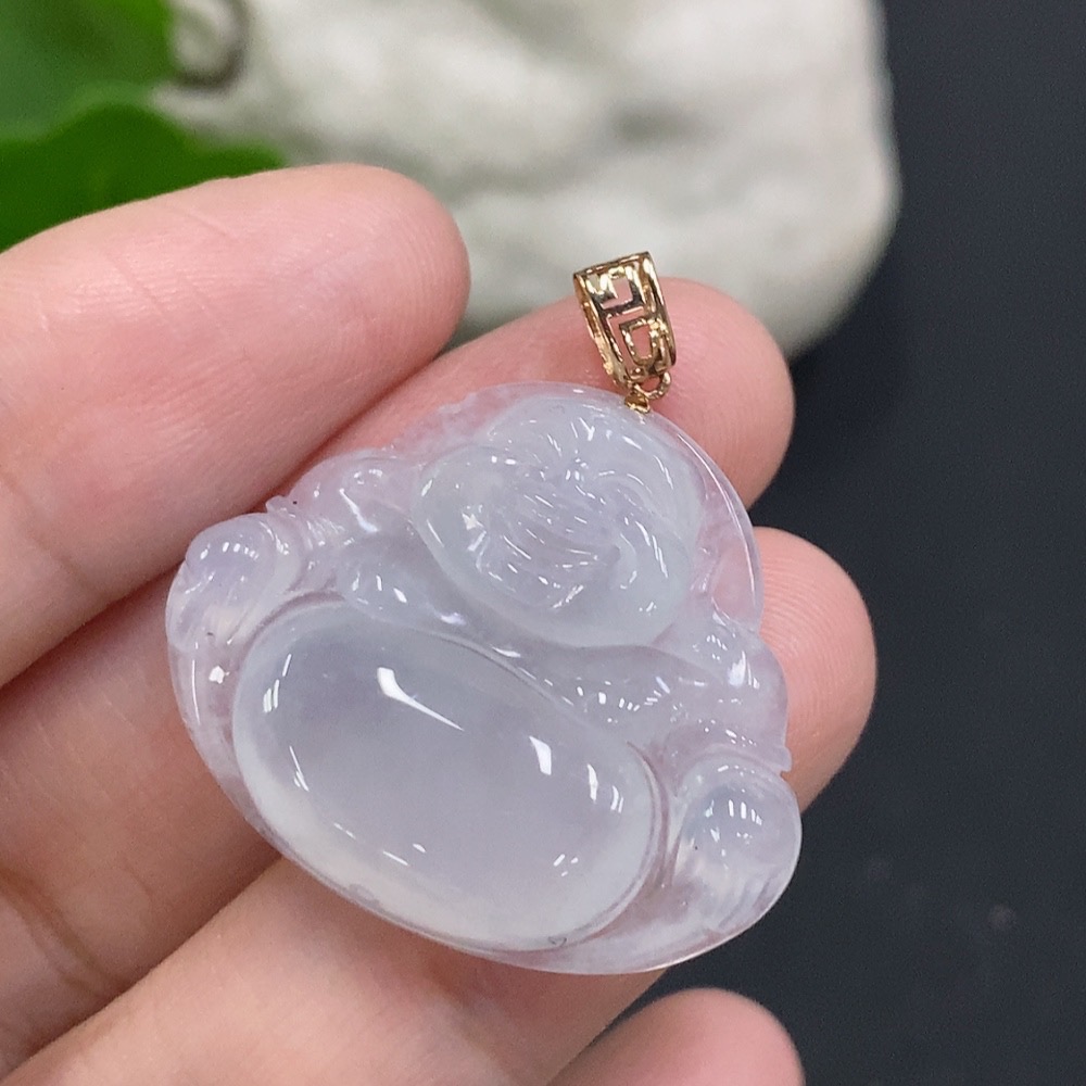 Jadeite Buddha Pendant with 18K Gold Clasp, Total Weight Approximately 5.8g